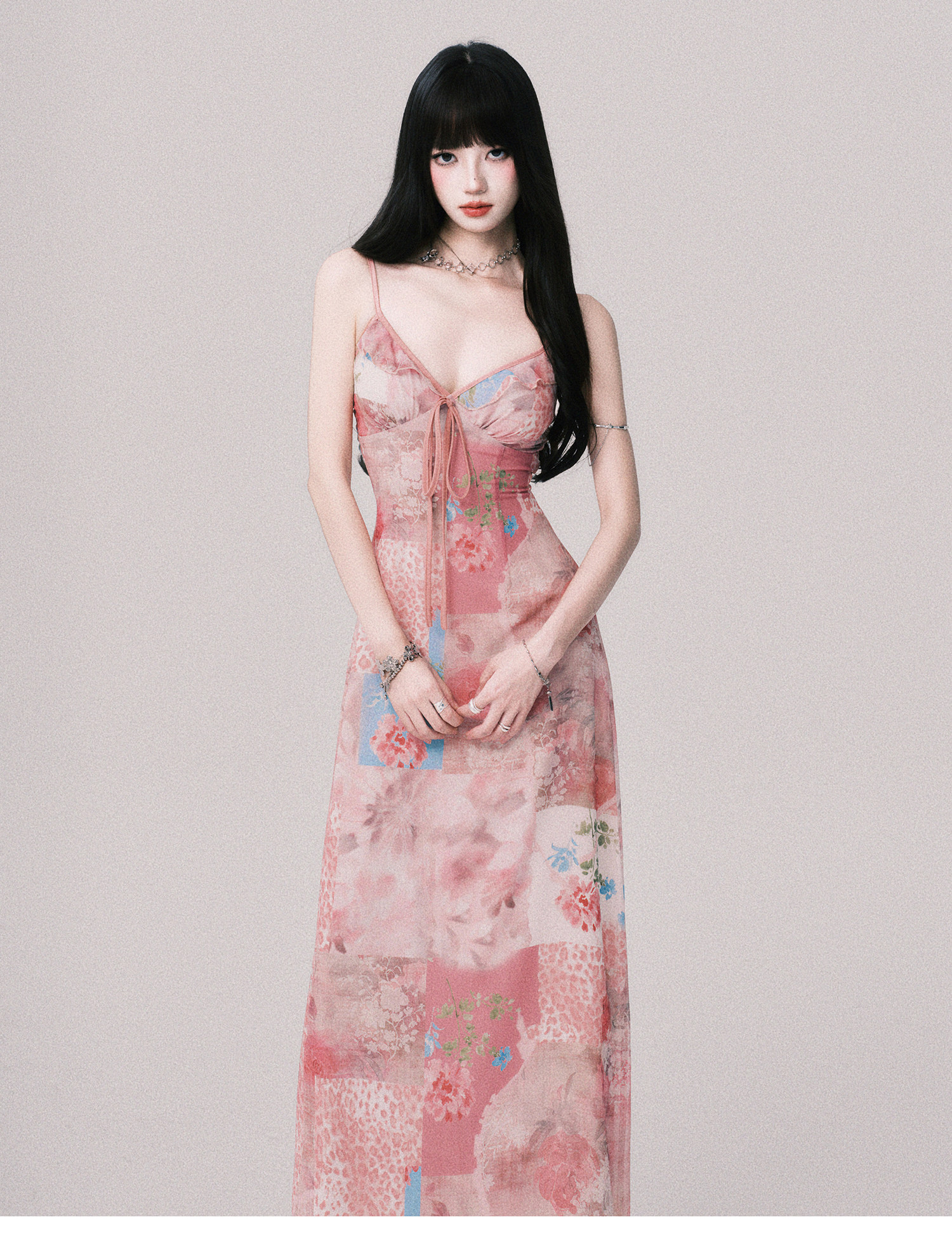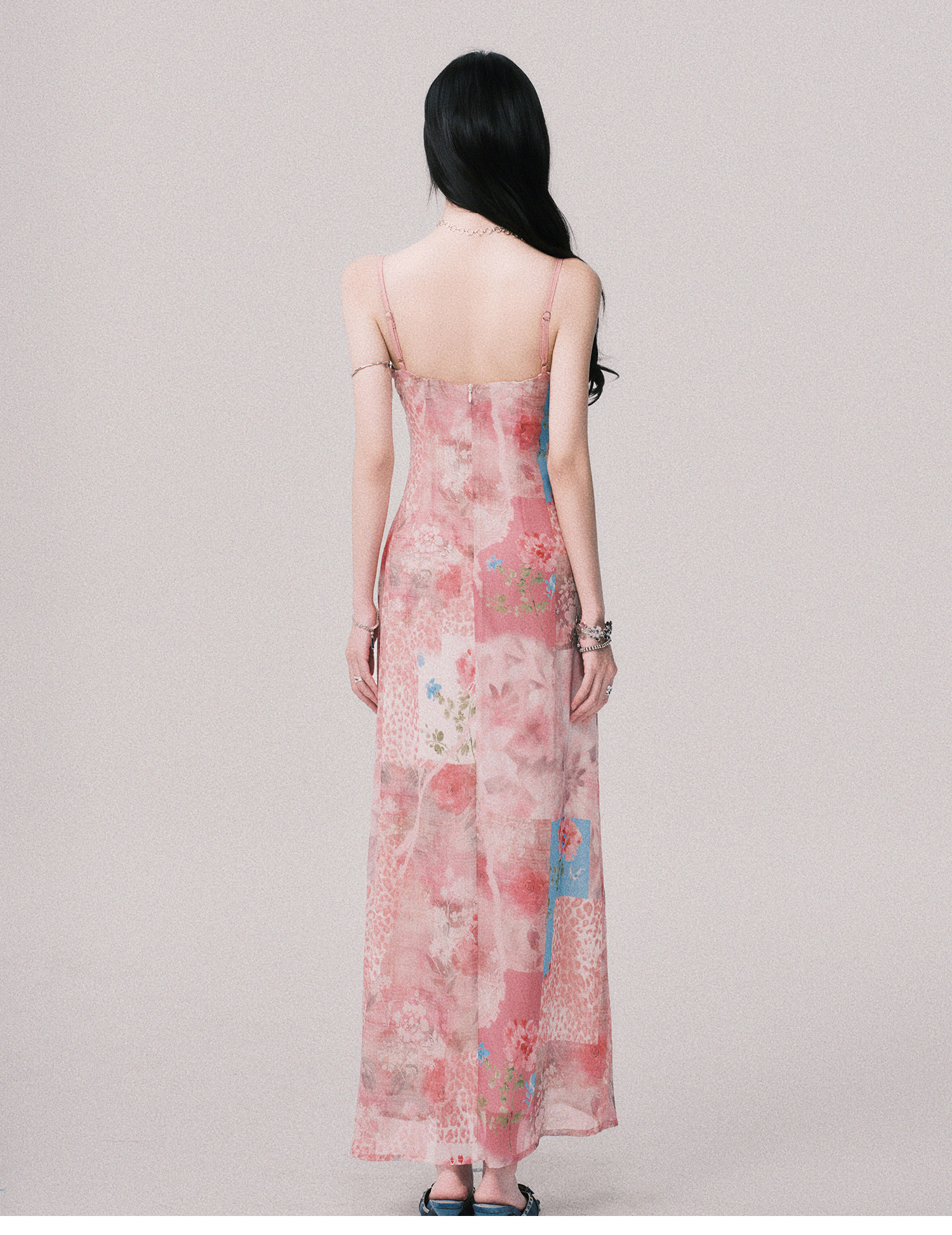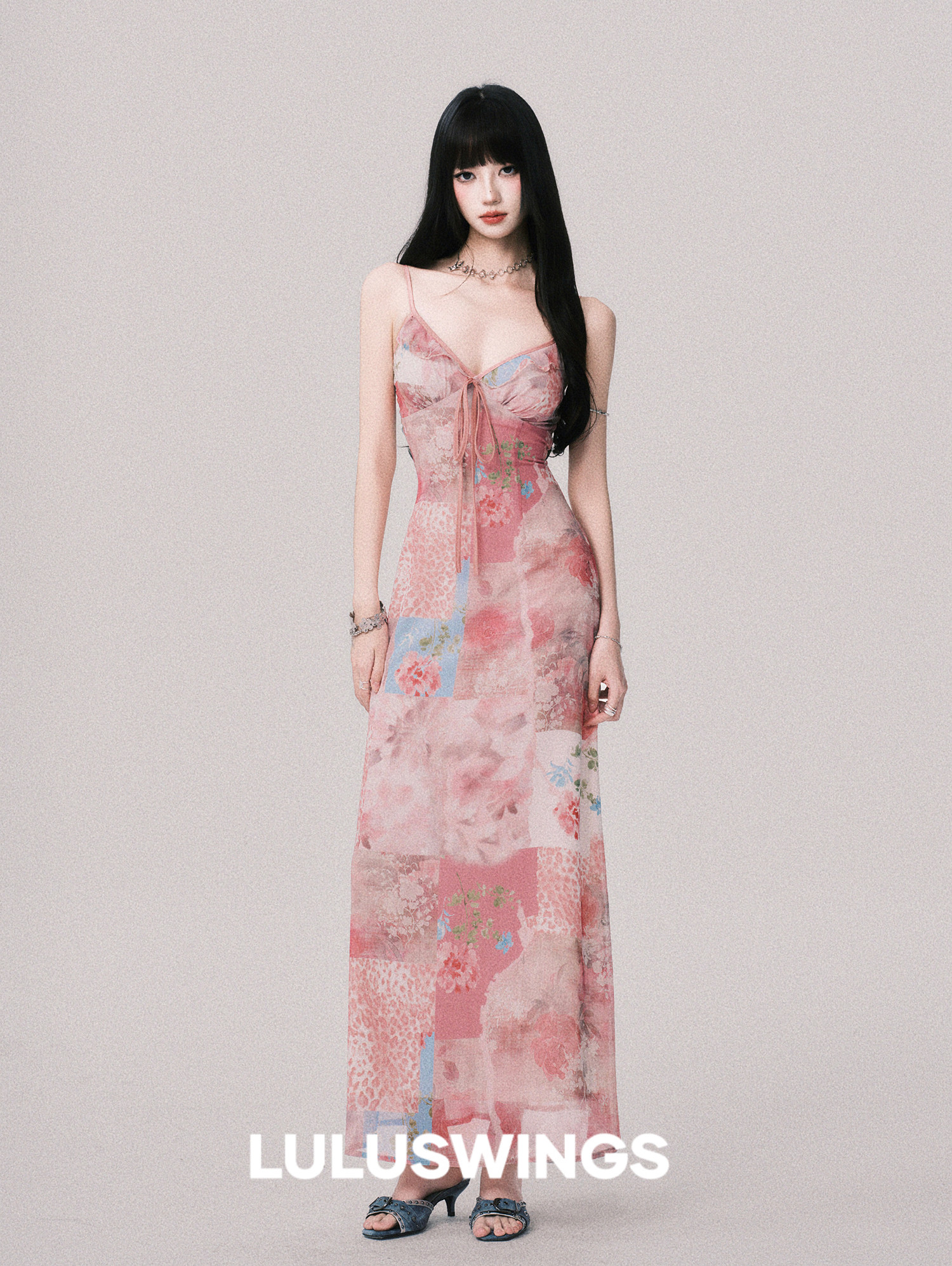 LULUSWINGS Beach Resort V-neck Splicing Print Suspender Skirt