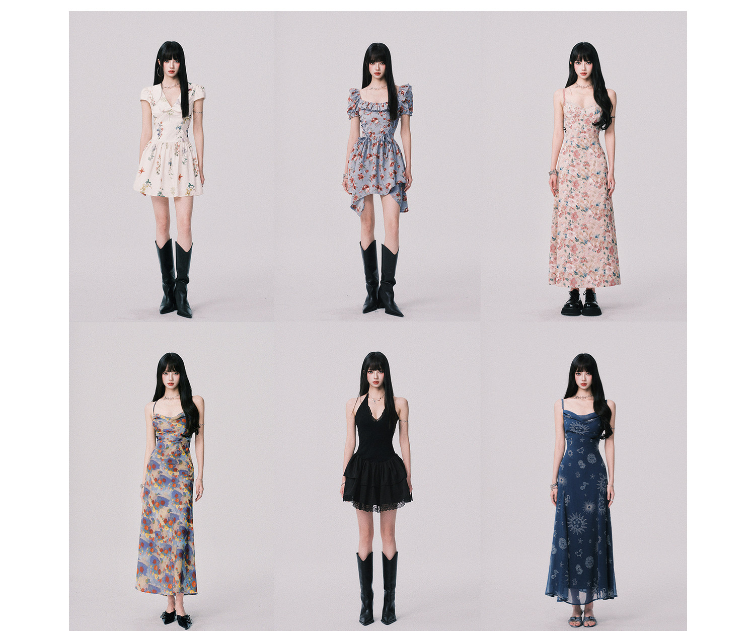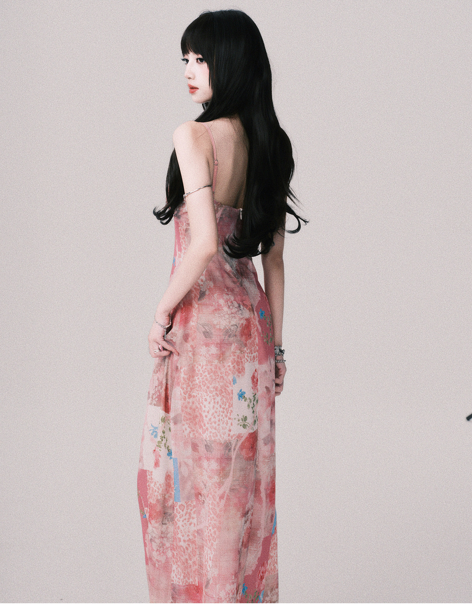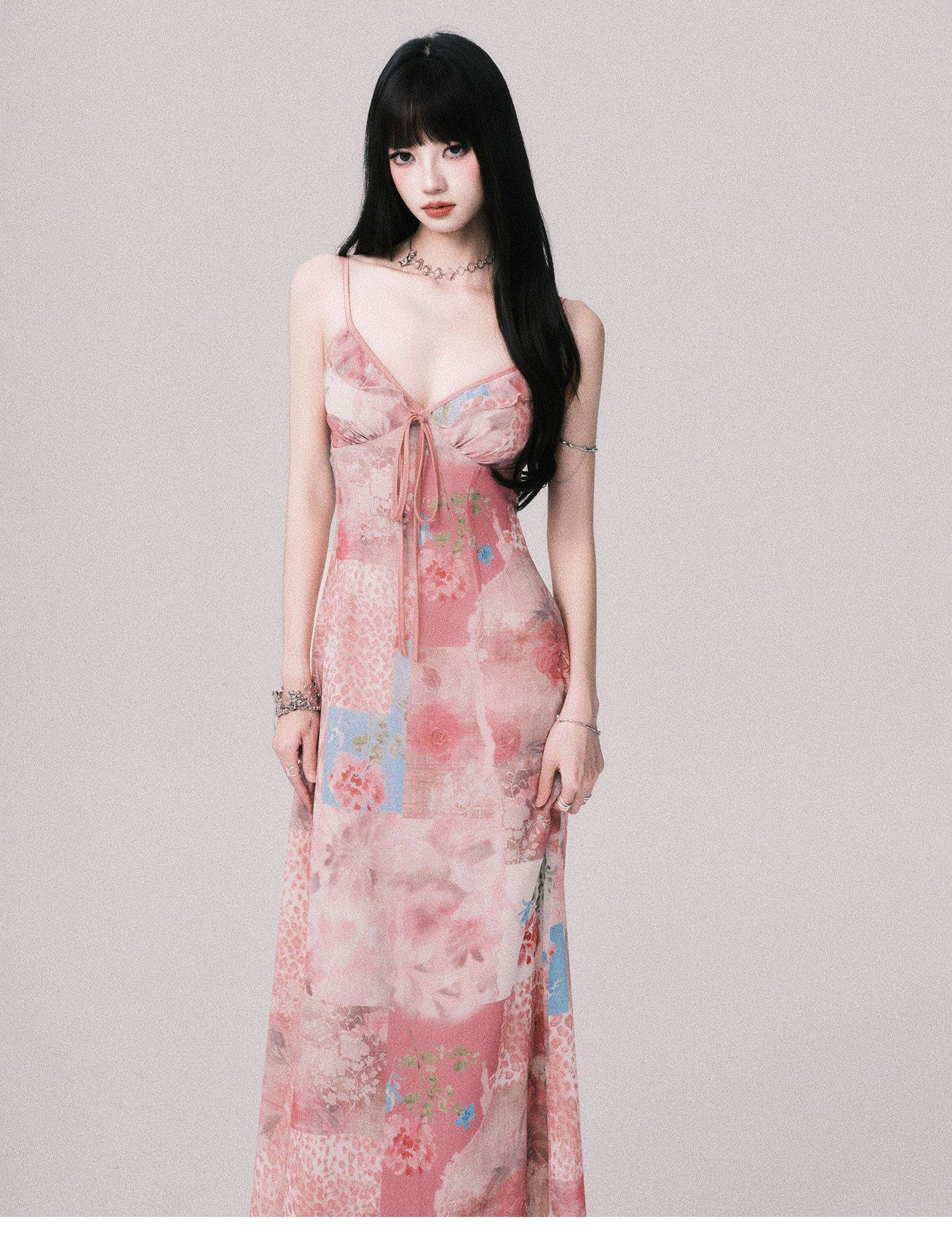 LULUSWINGS Beach Resort V-neck Splicing Print Suspender Skirt