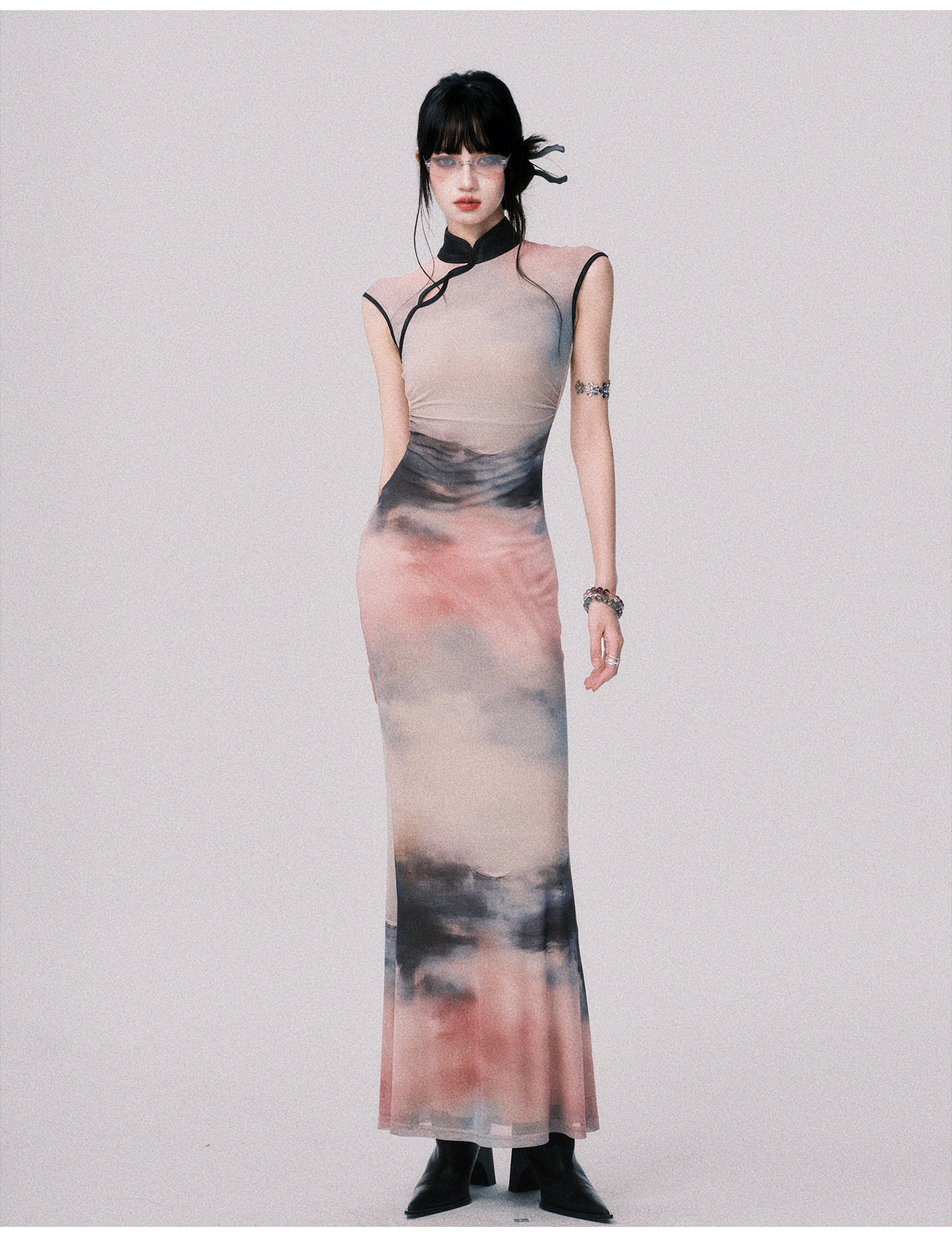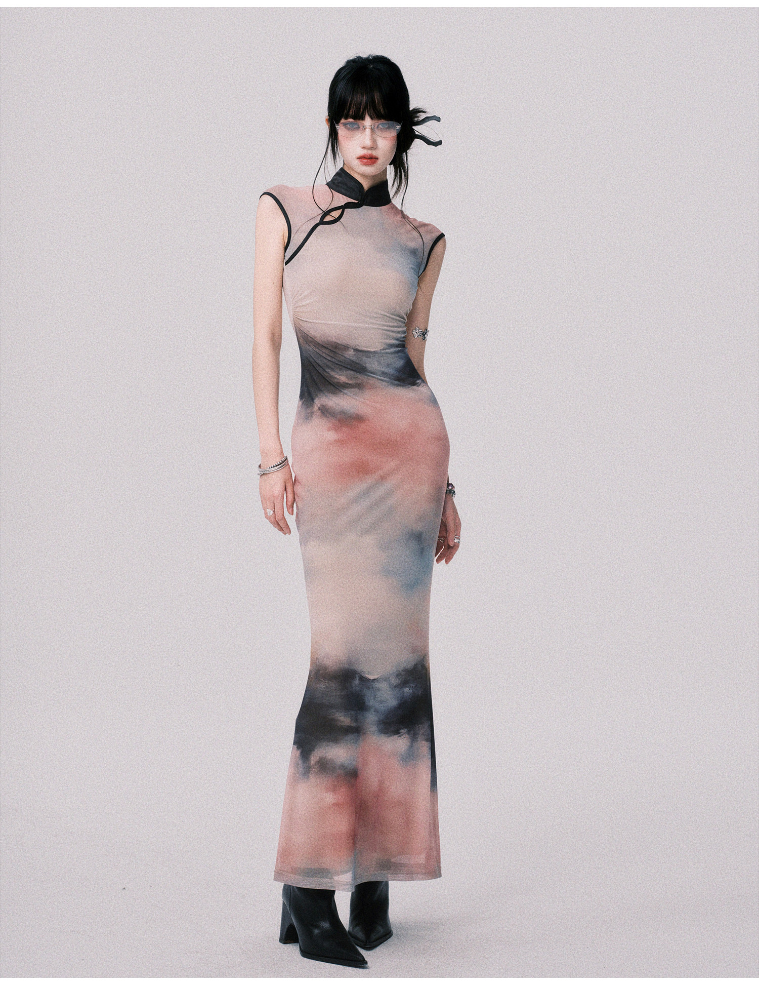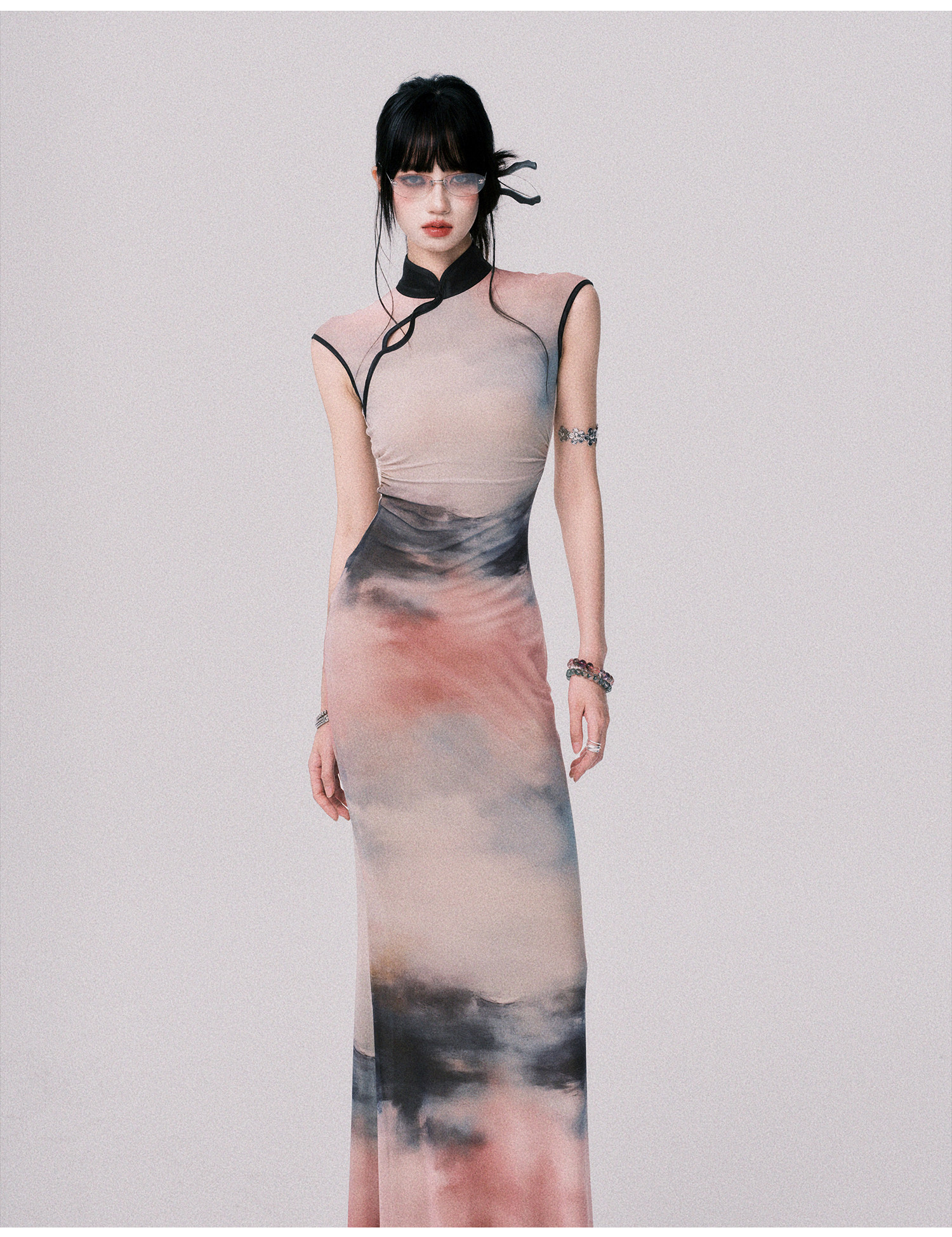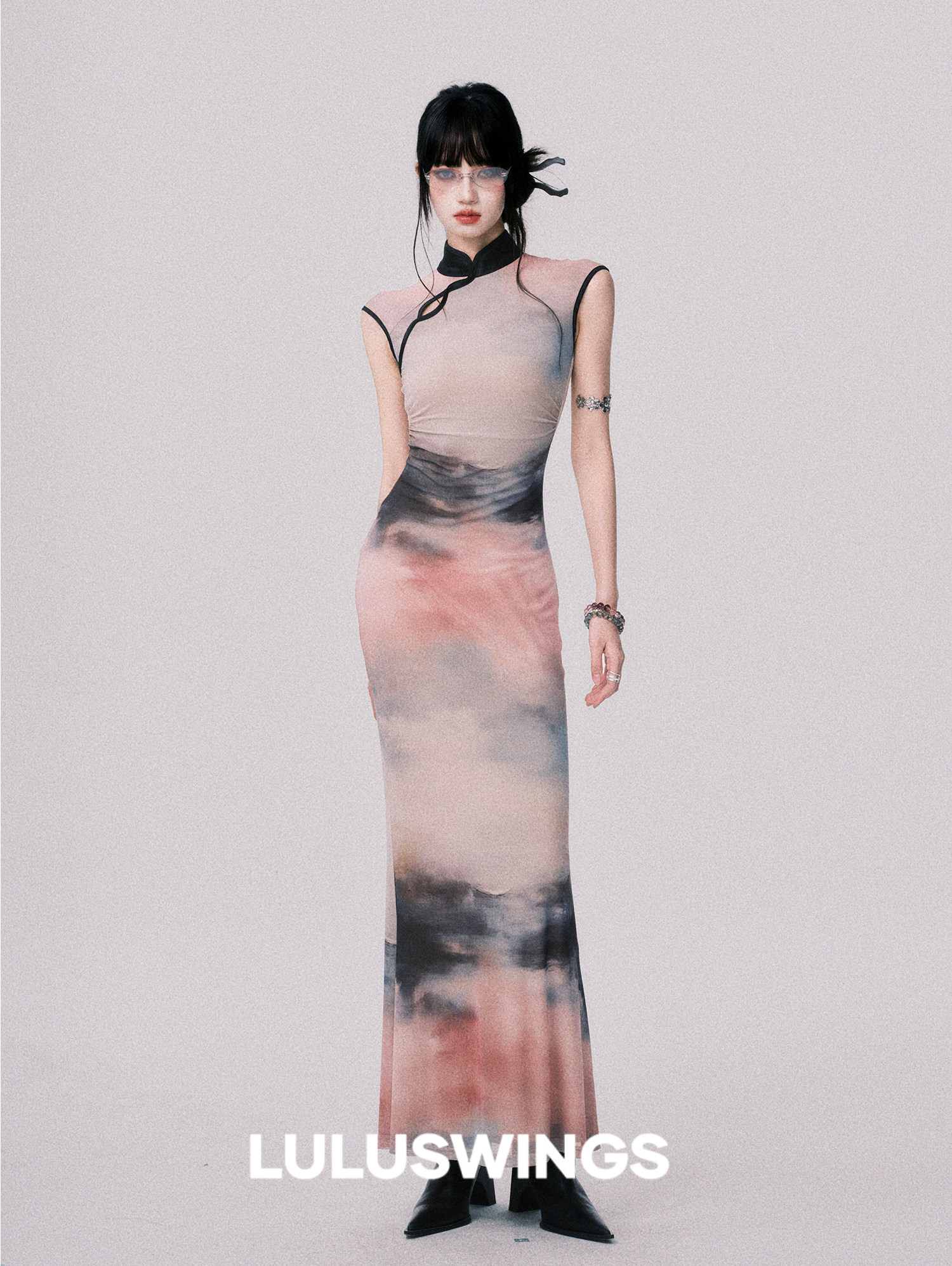 LULUSWINGS Ink Painting Elastic Net New Chinese Cheongsam Dress