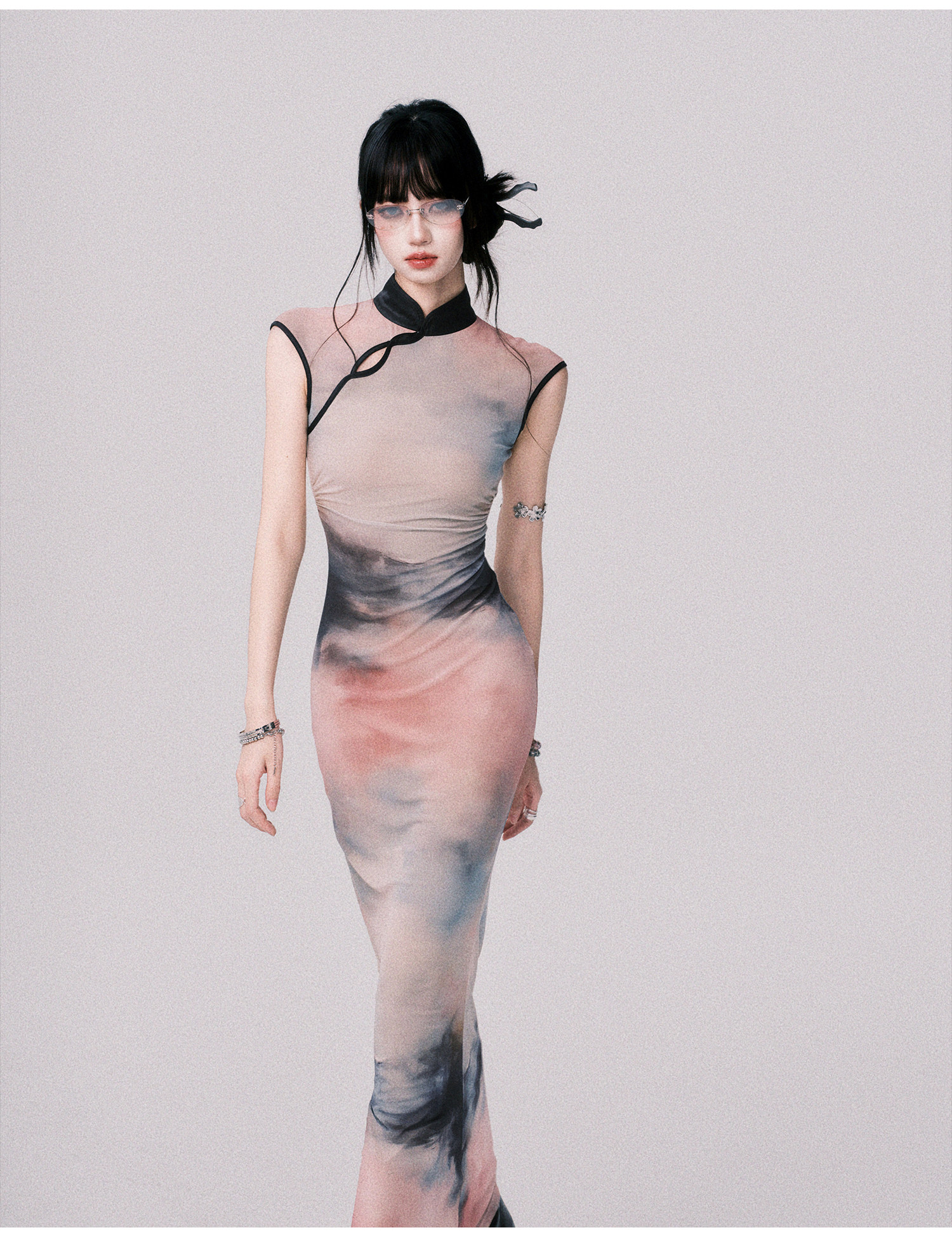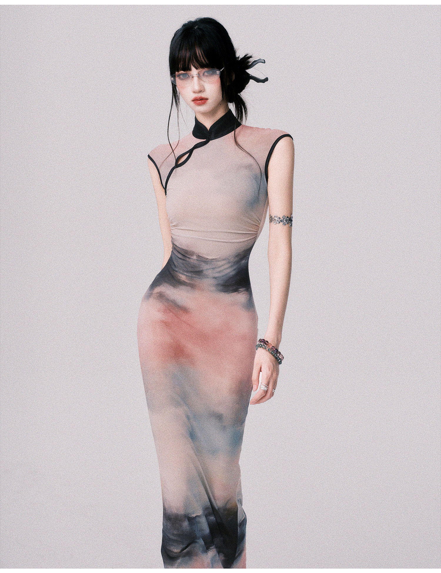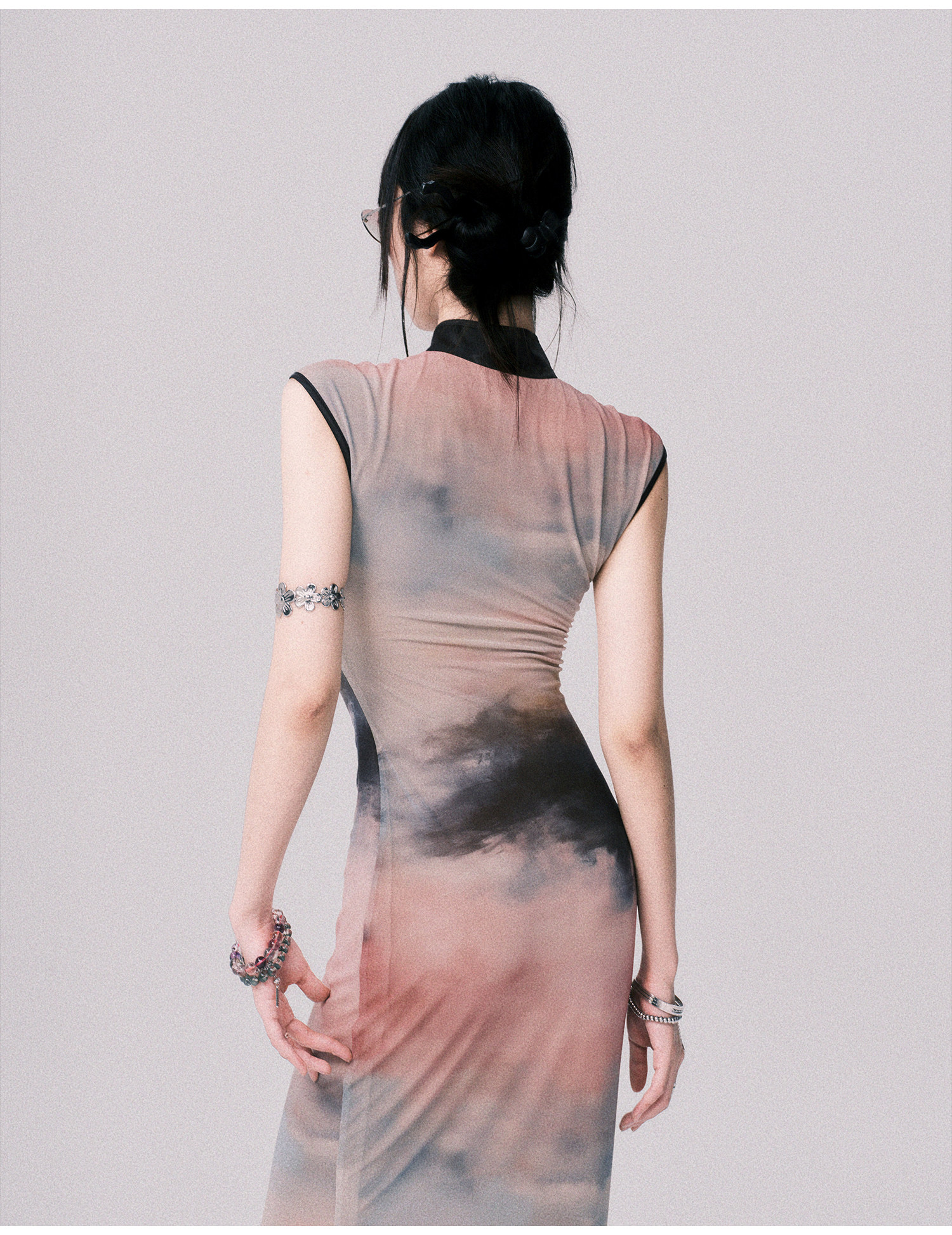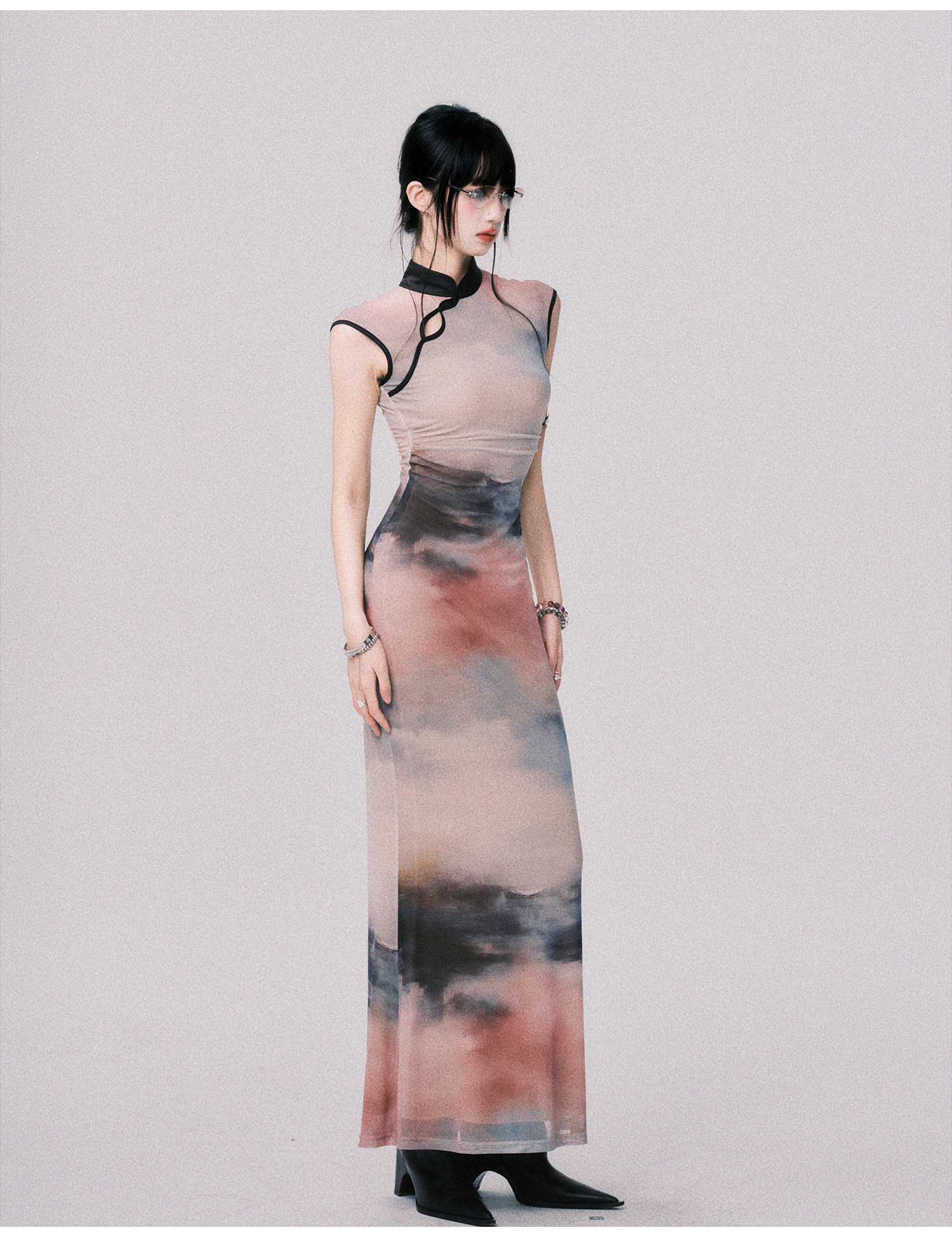 LULUSWINGS Ink Painting Elastic Net New Chinese Cheongsam Dress