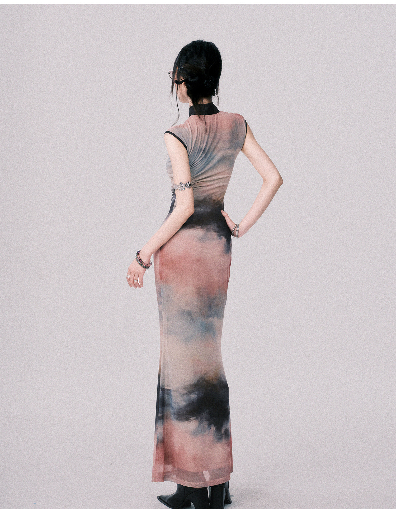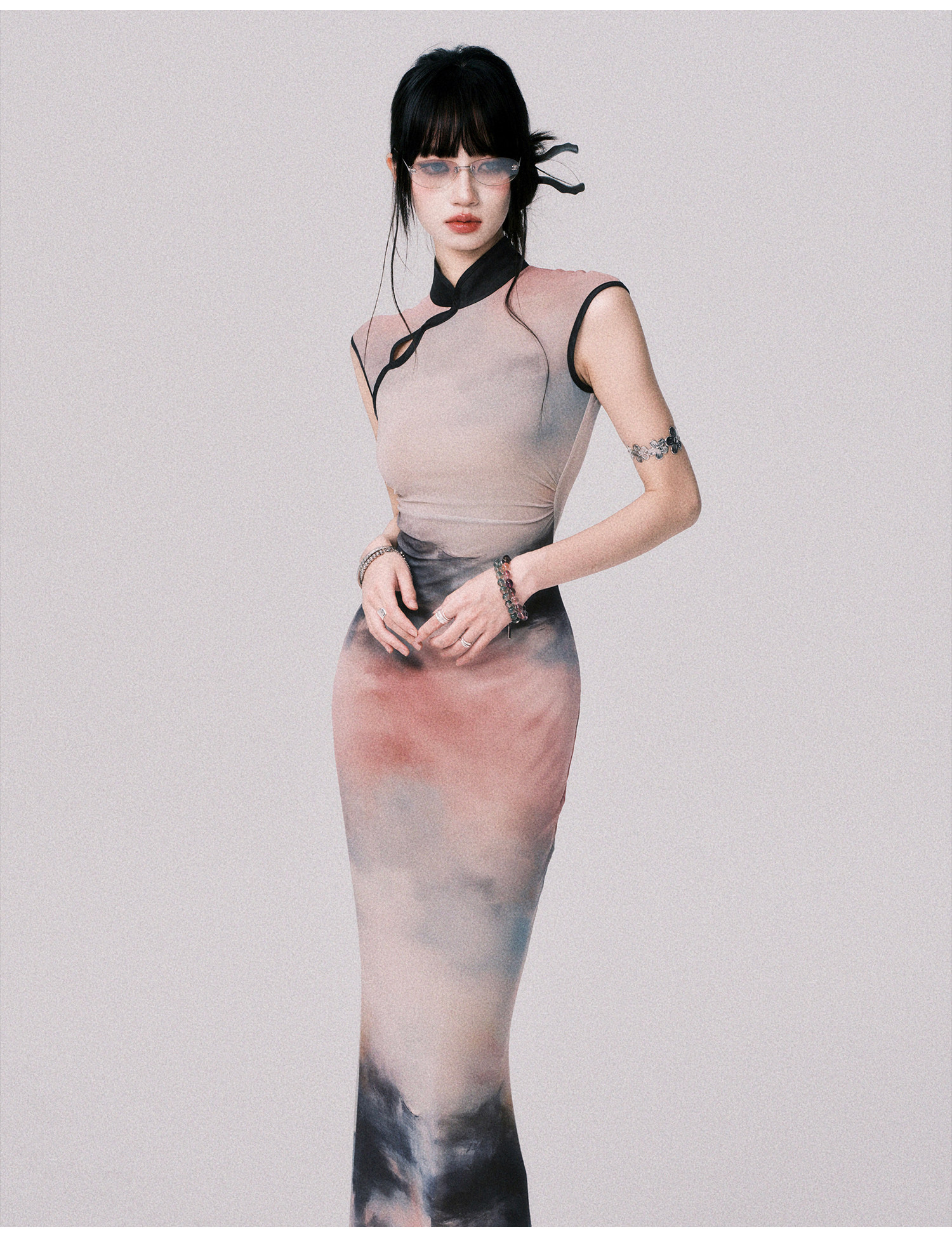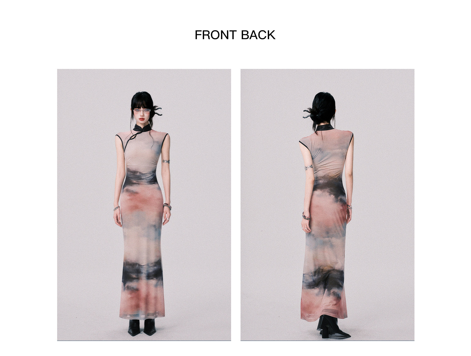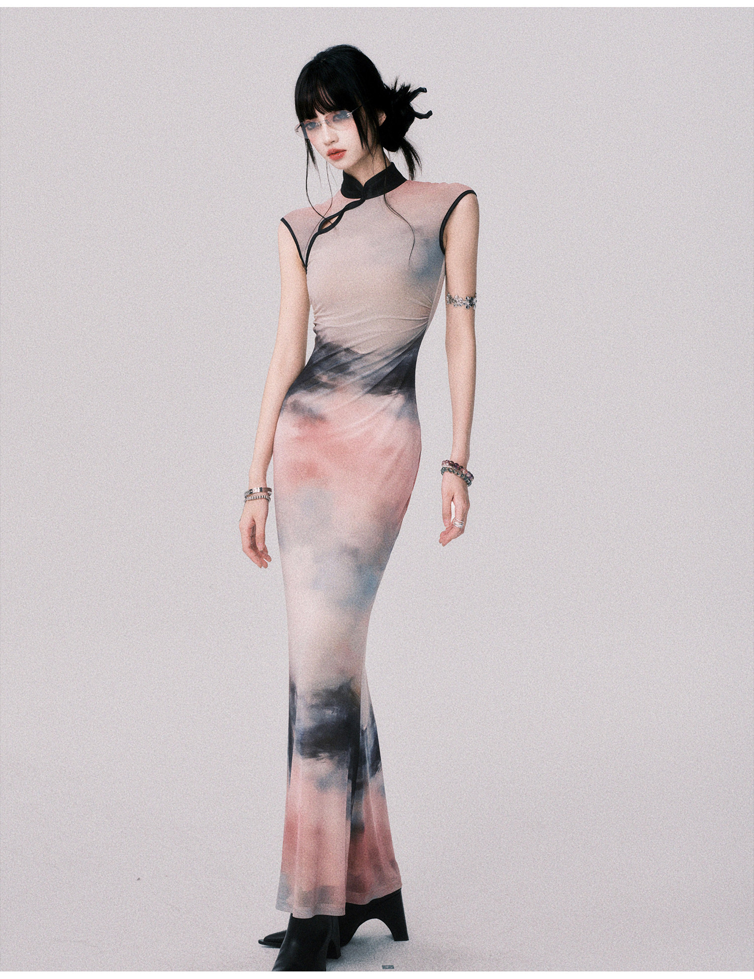 LULUSWINGS Ink Painting Elastic Net New Chinese Cheongsam Dress