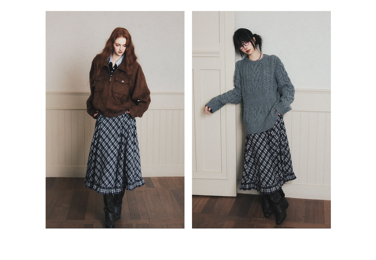 LULUSWINGS Vintage College Plaid A-shaped Skirt