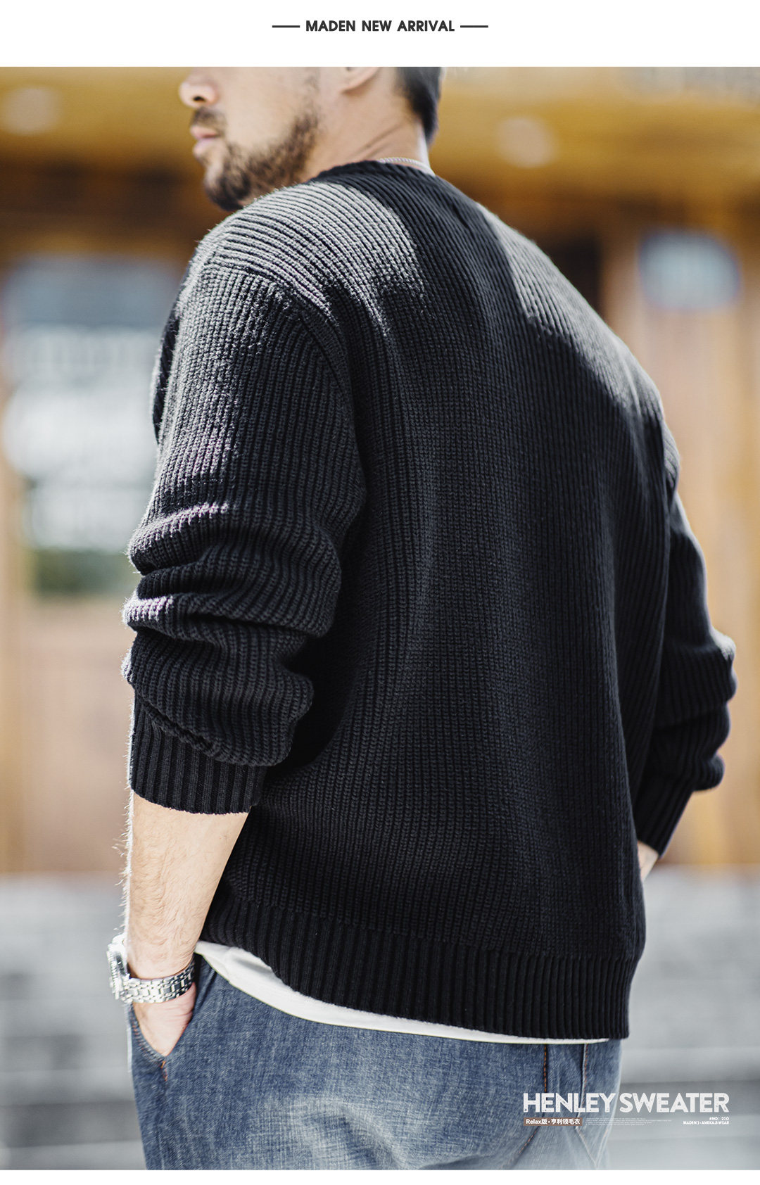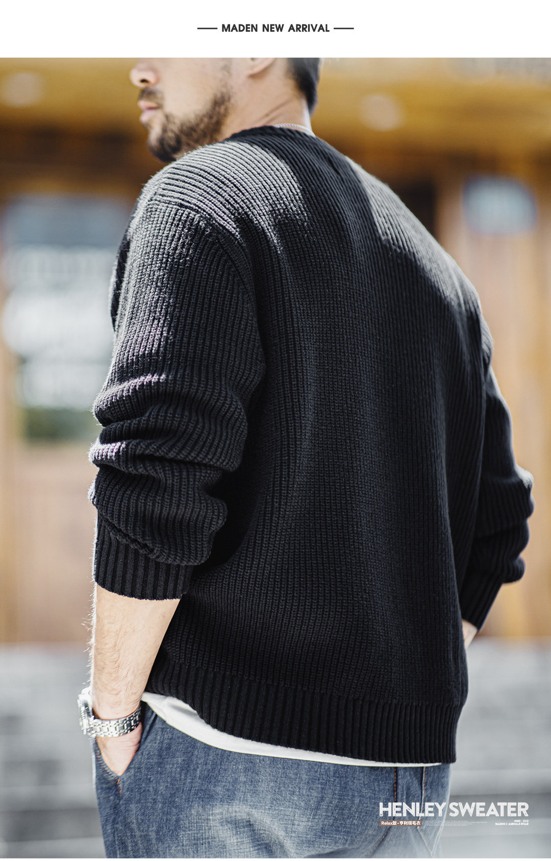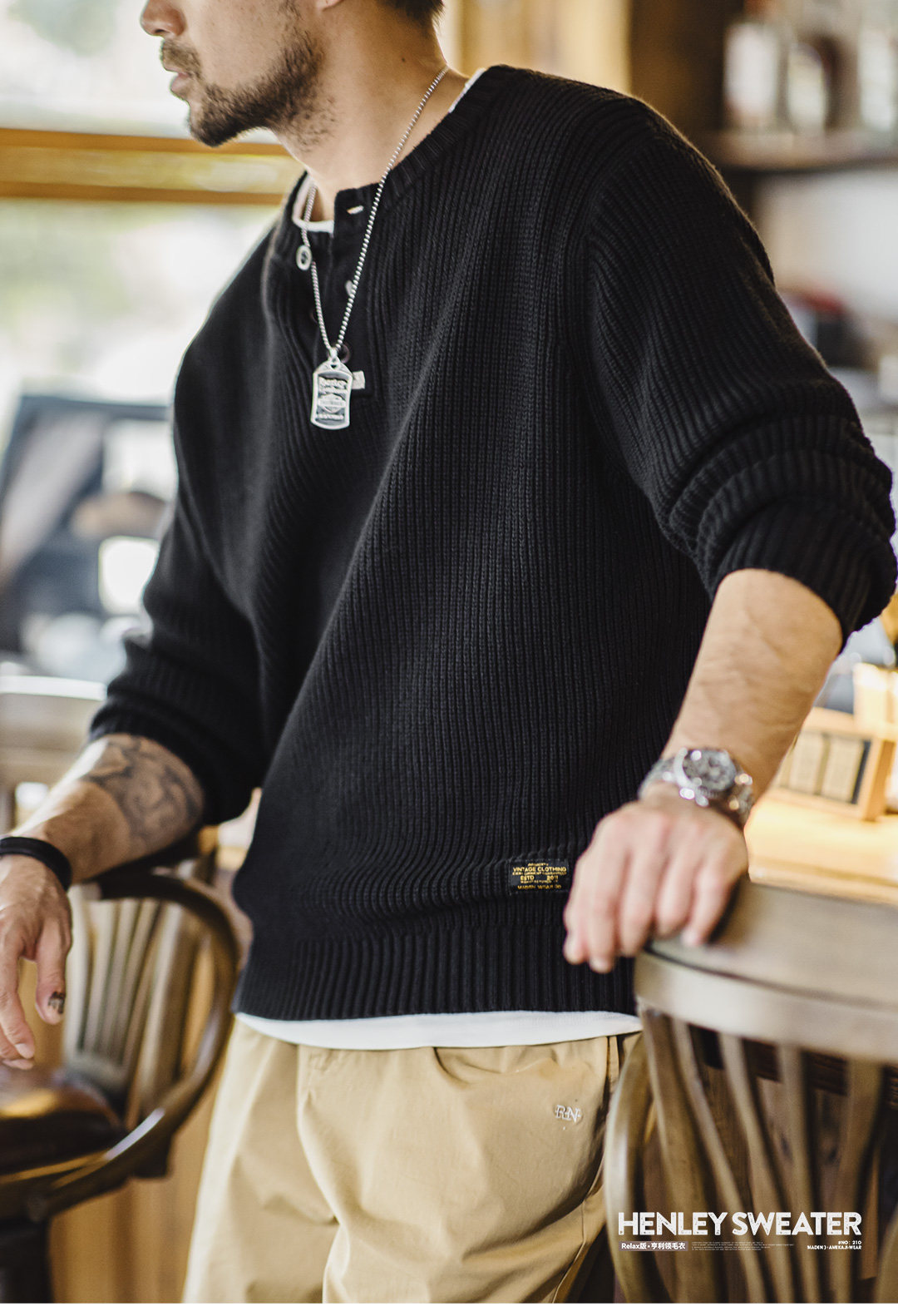 Madden Vintage Vertical Striped Henry Neck Sweater