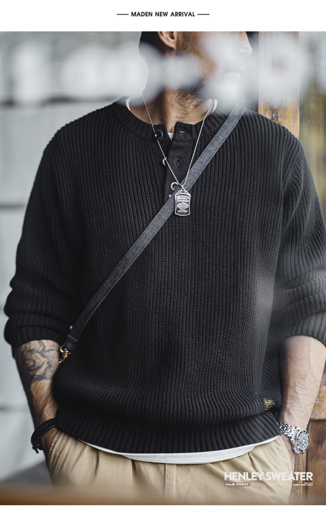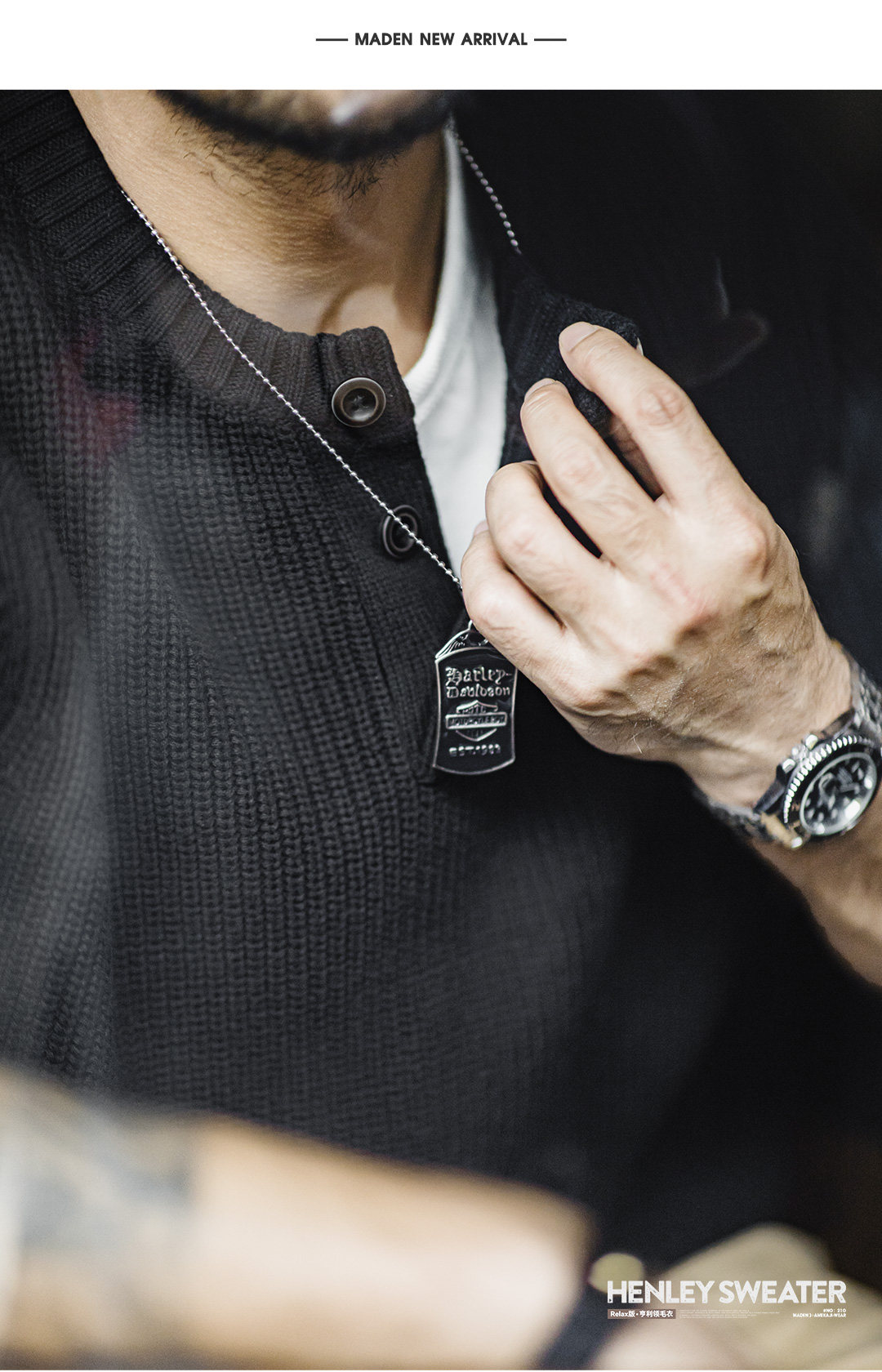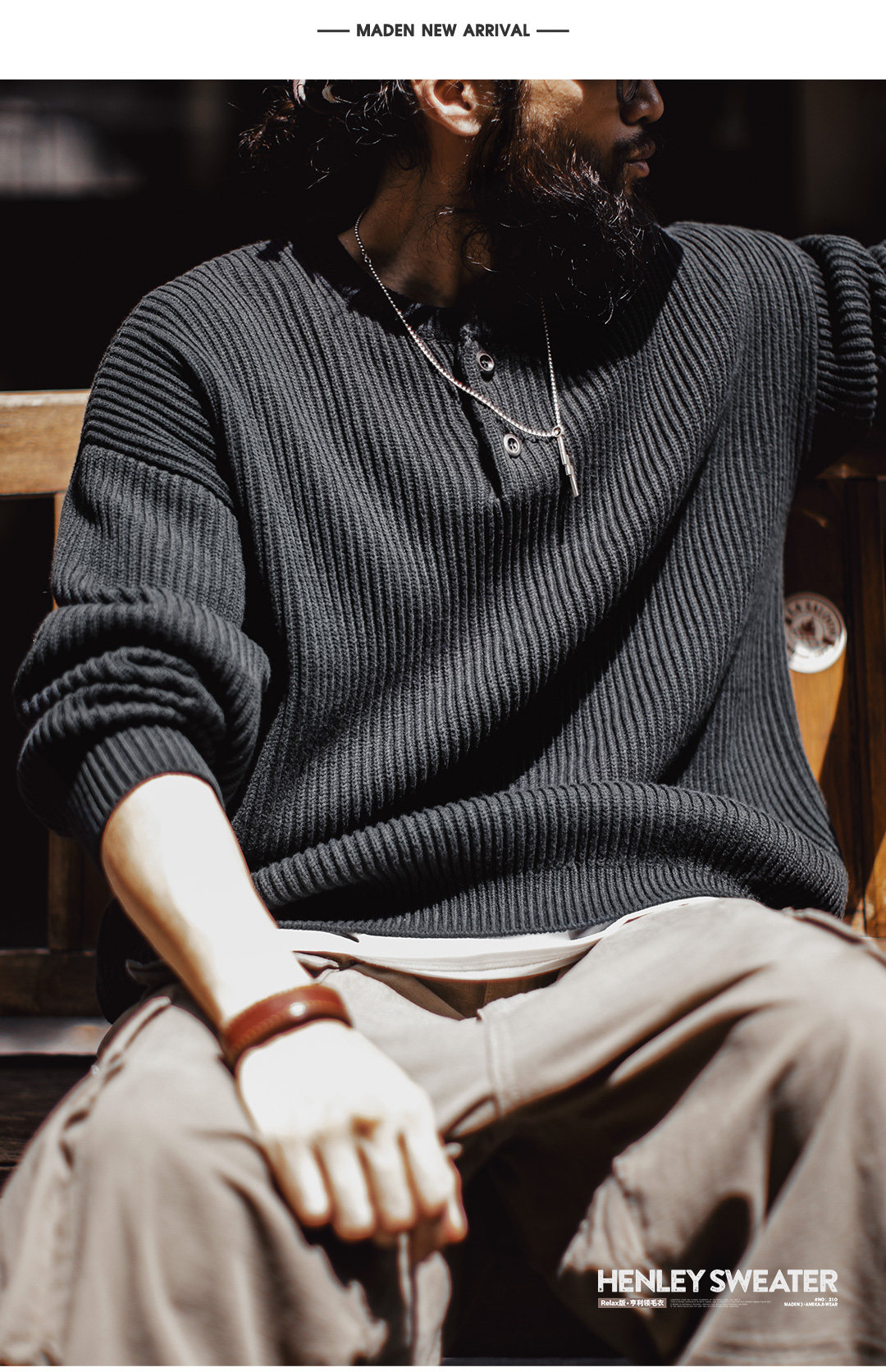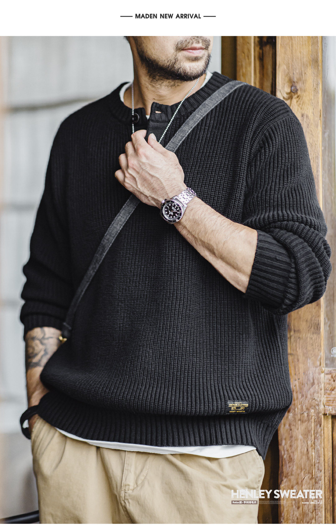 Madden Vintage Vertical Striped Henry Neck Sweater