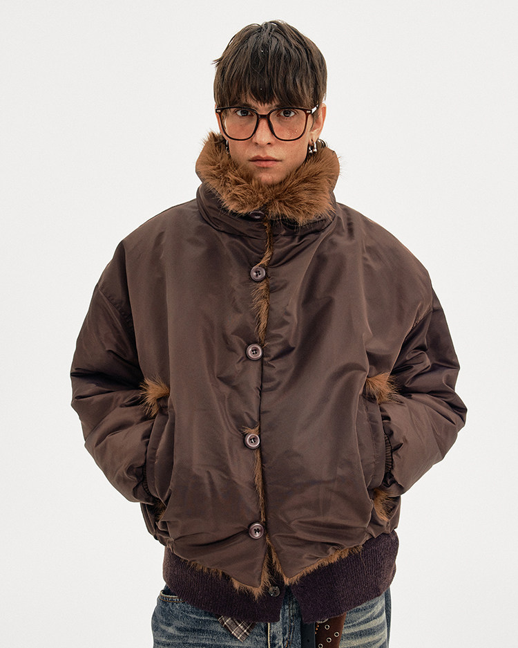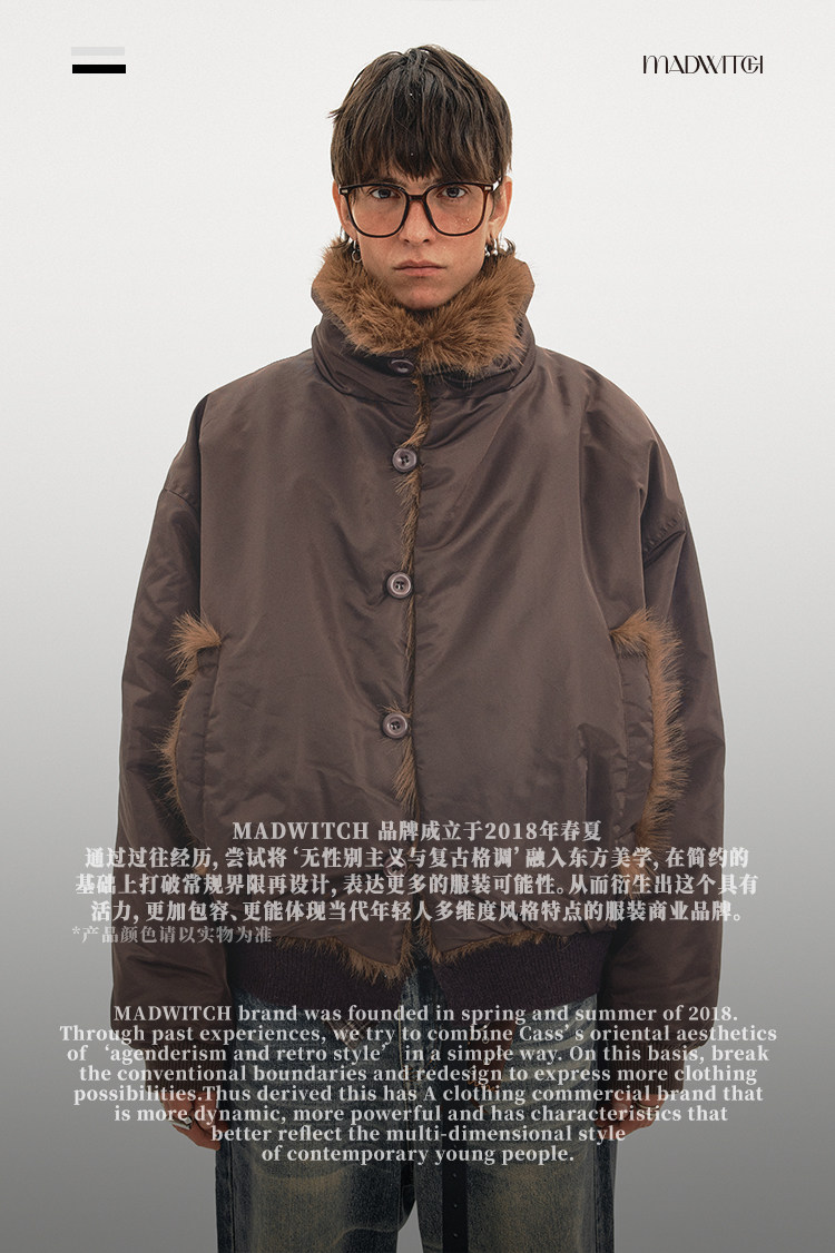 MADWITCH Vintage Premium Splicing Fur Collar Jacket