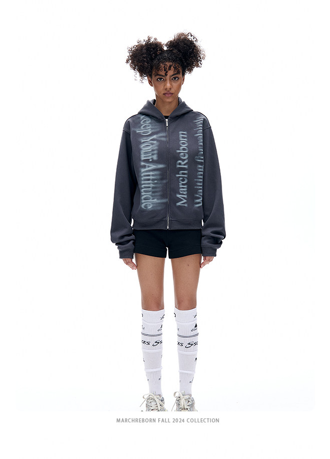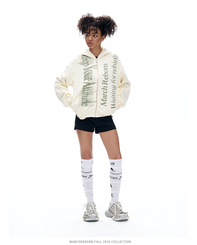 March Letter Print Short Jacket Cardigan