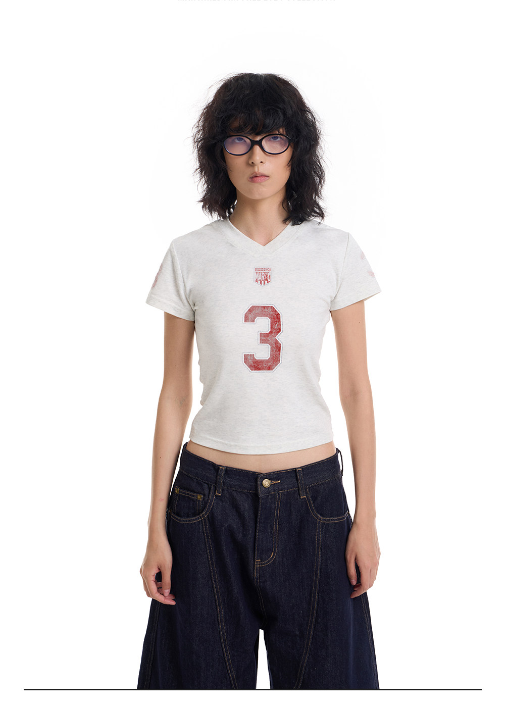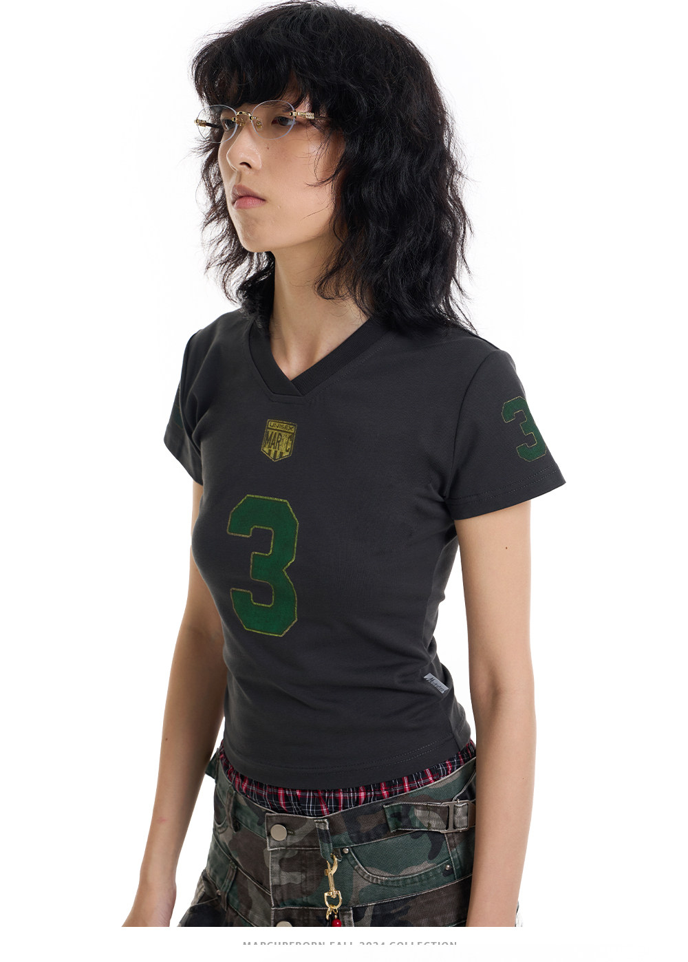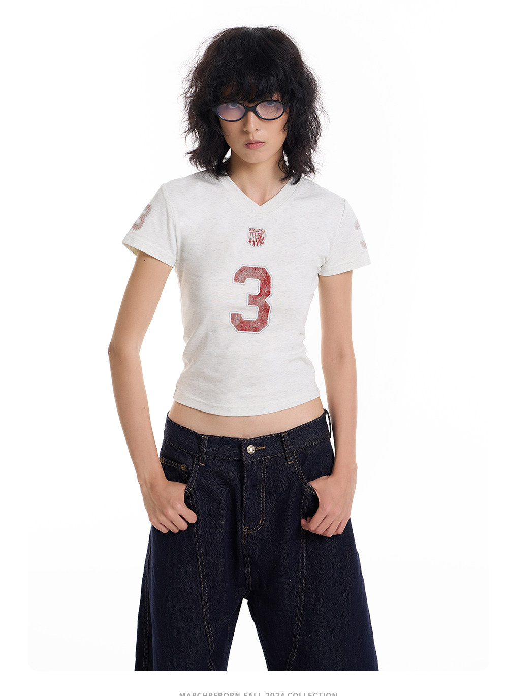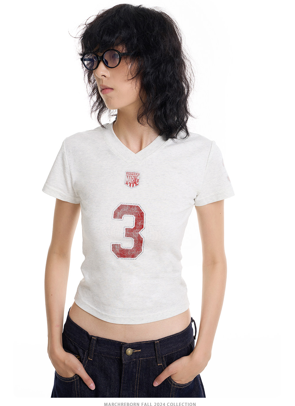 March Vintage Jersey Summer V-neck Digital Print Tee