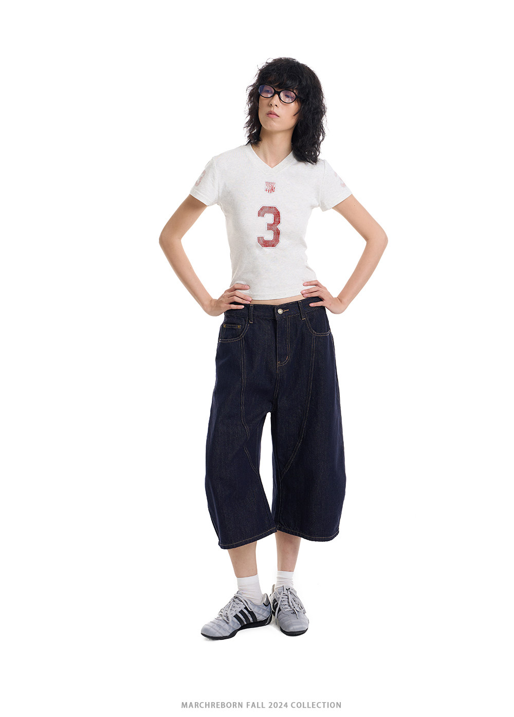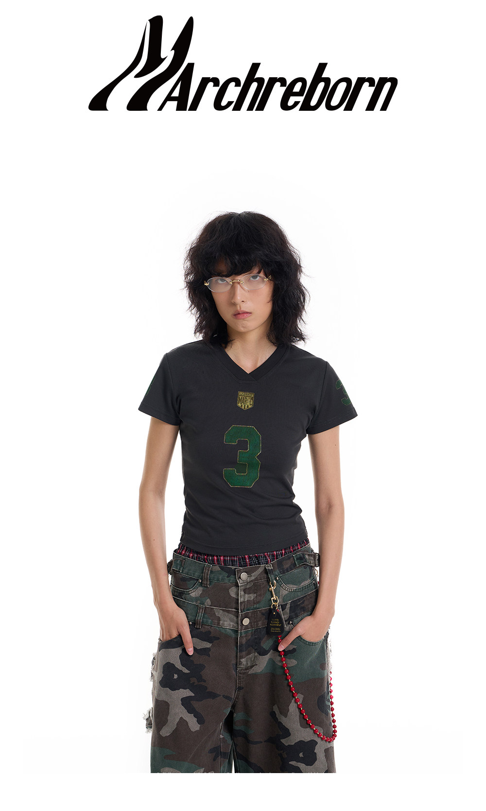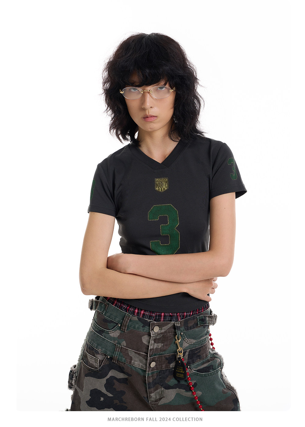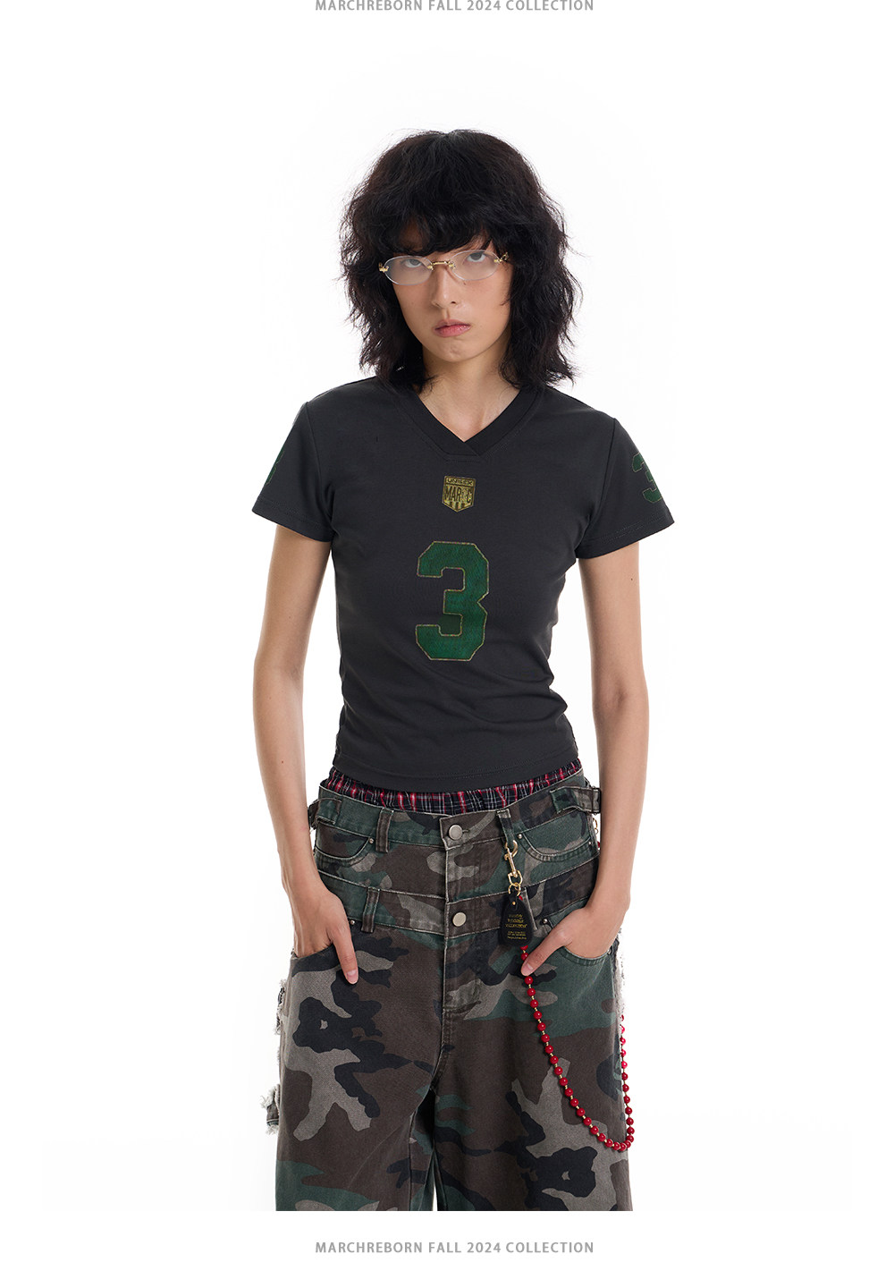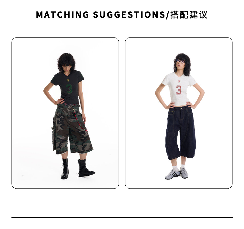 March Vintage Jersey Summer V-neck Digital Print Tee