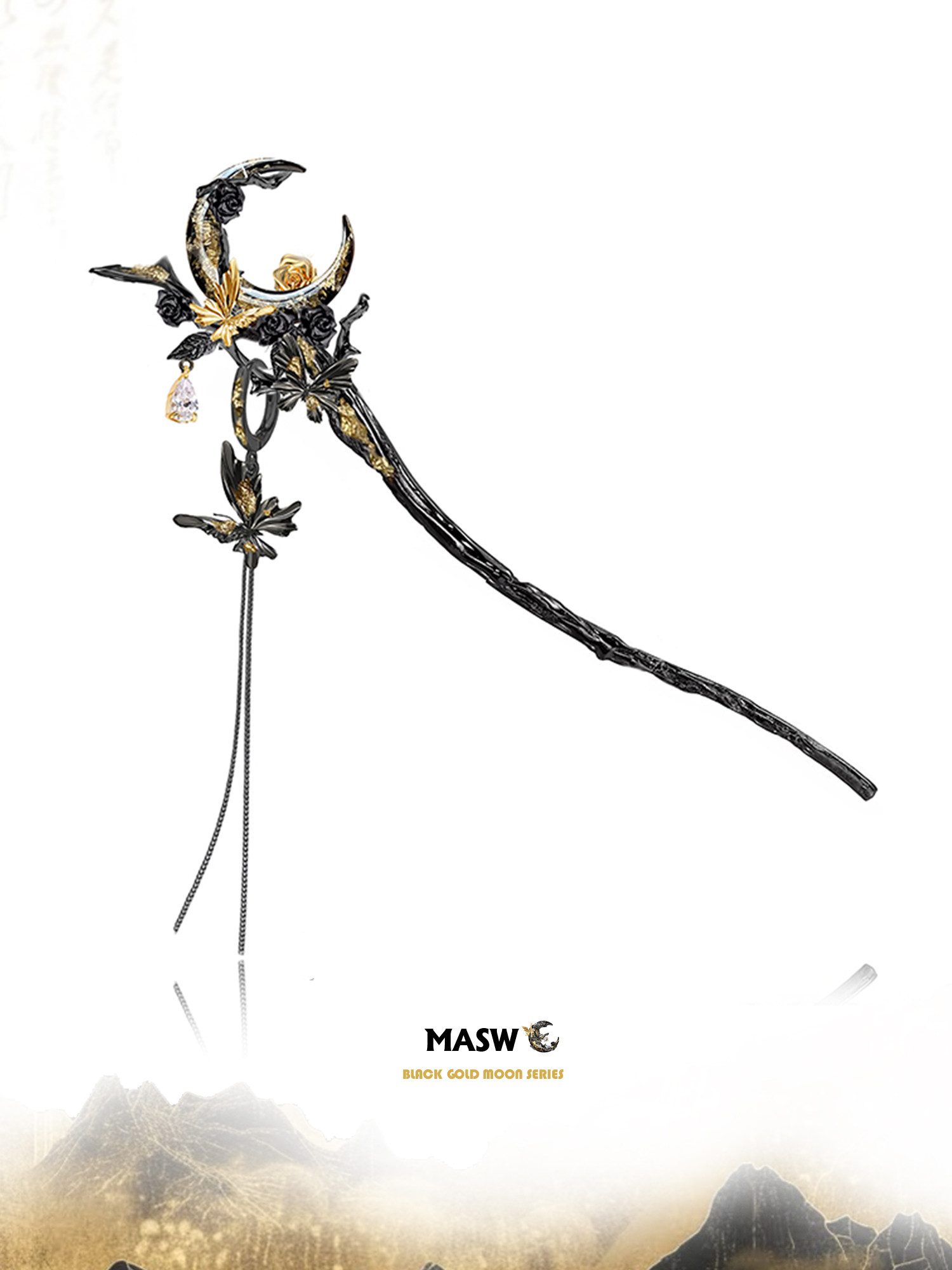 MASW Moon Butterfly Dance Retro New Chinese Tassel Hairpin
