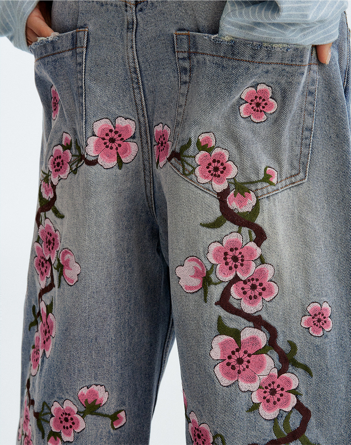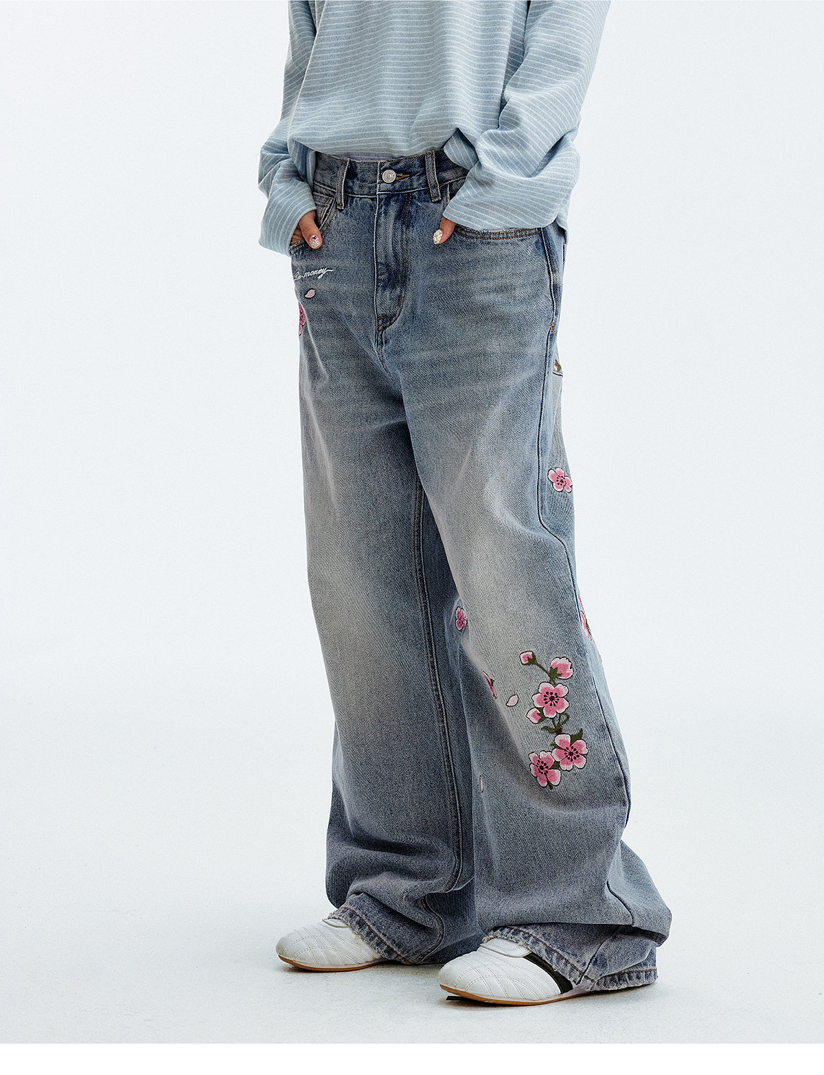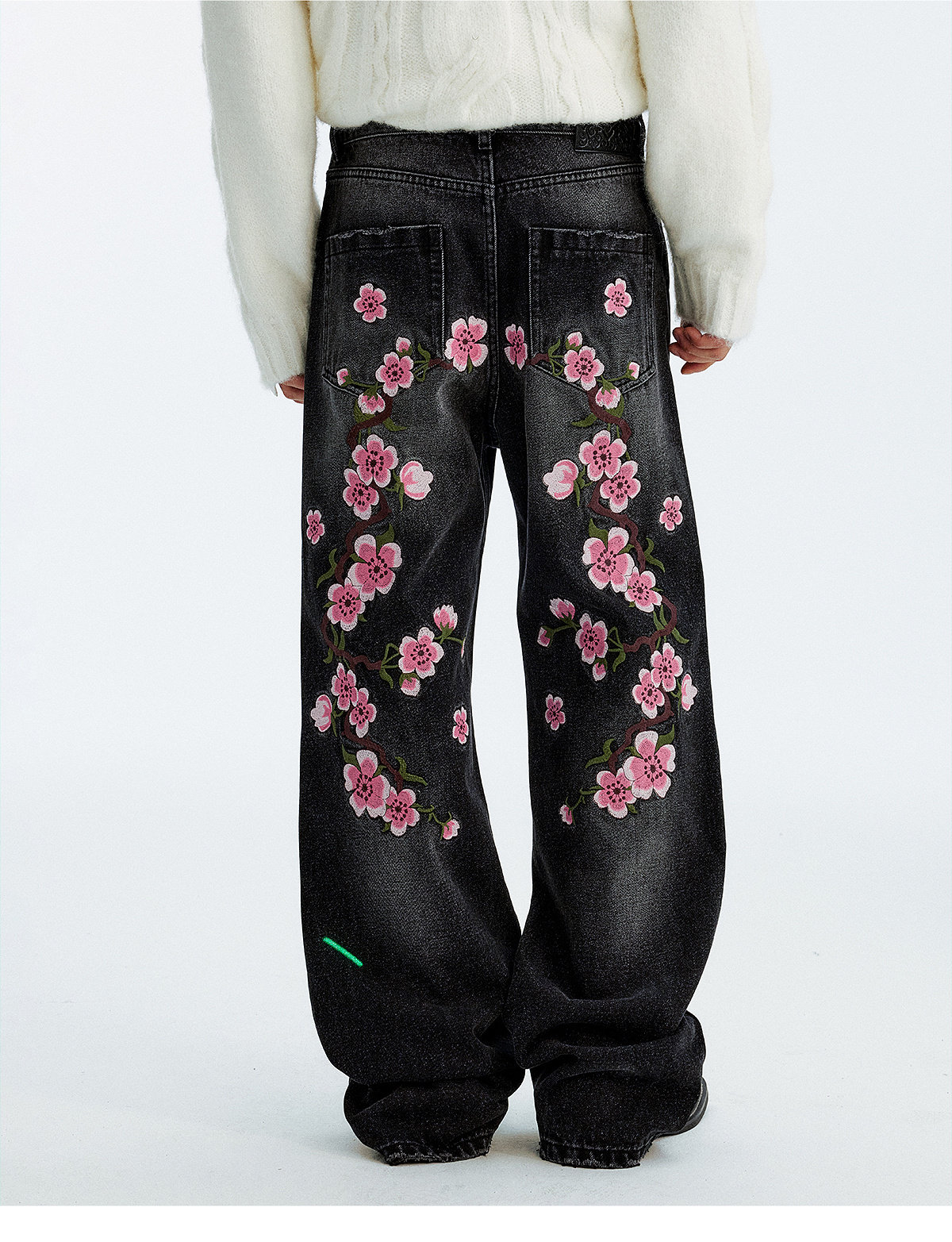 MEDM Sakura Pattern Embroidered Micro-elastic Casual Jeans