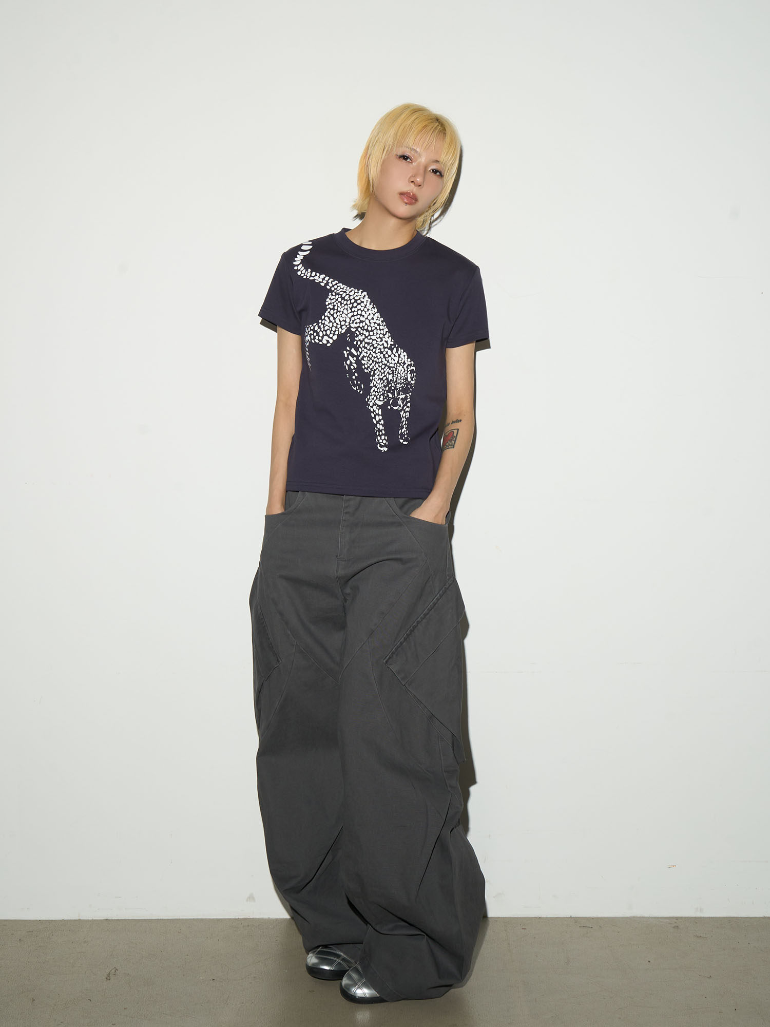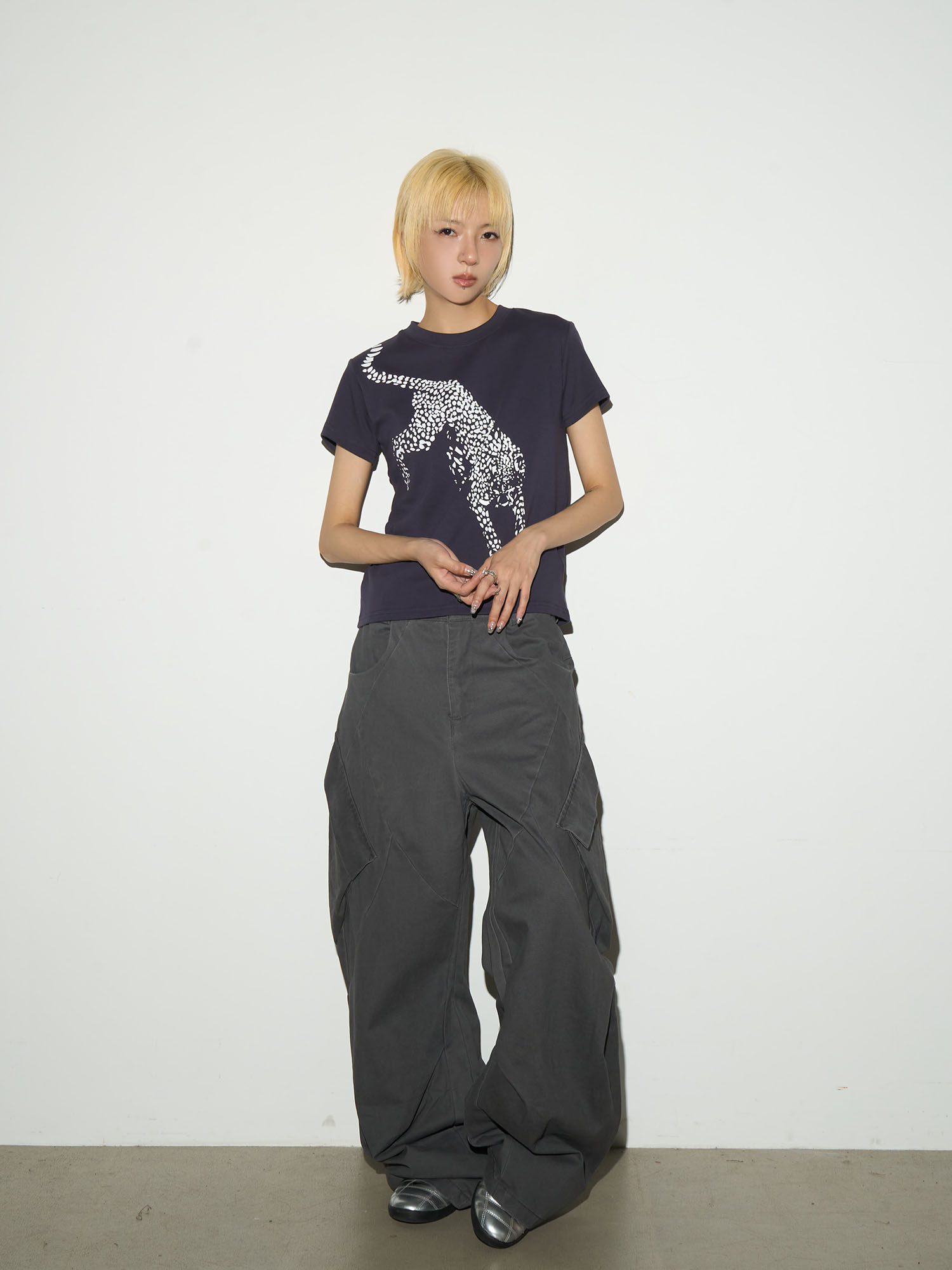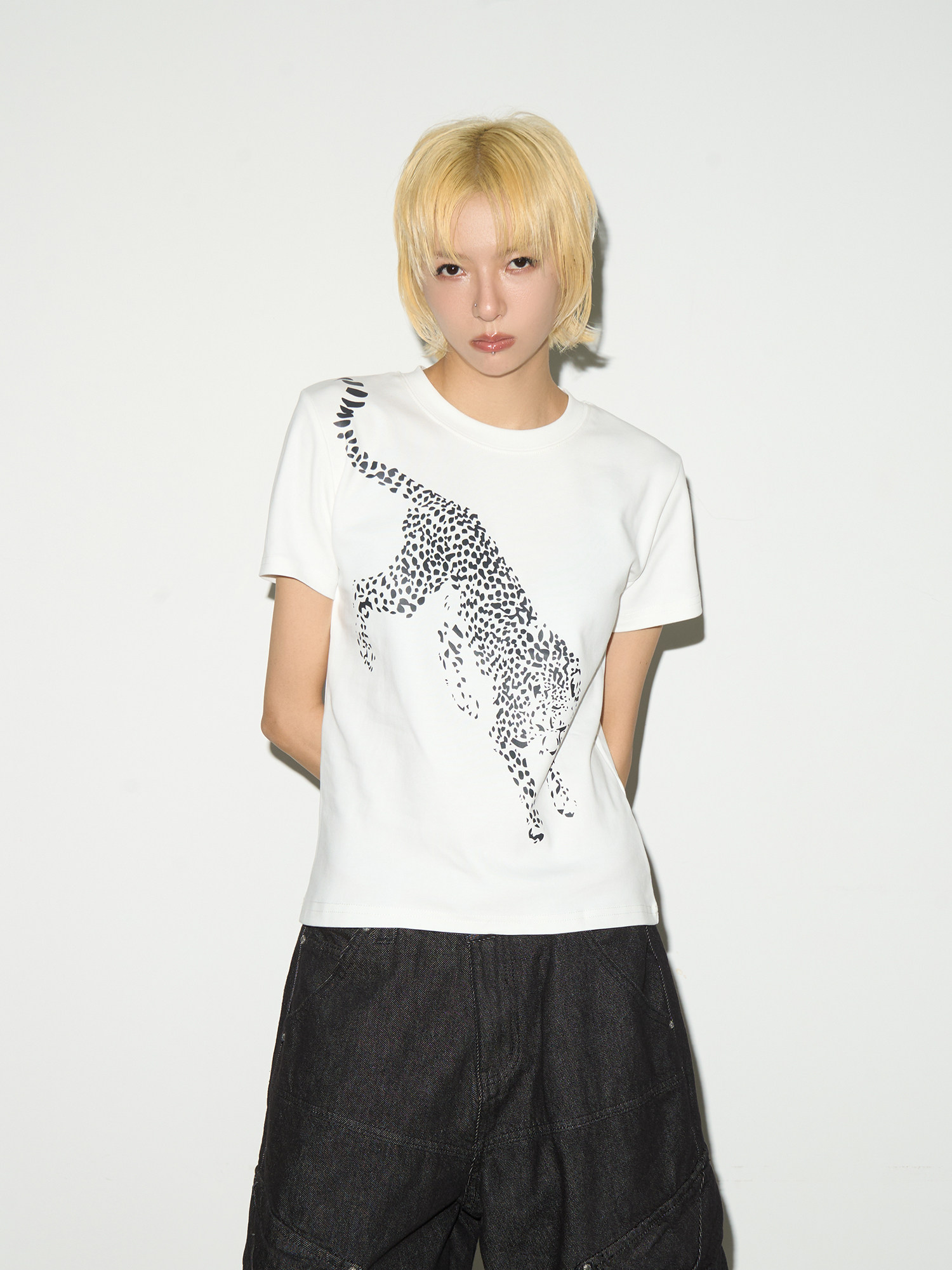 MICHINNYON Leopard Print Front Shoulder Casual Tee