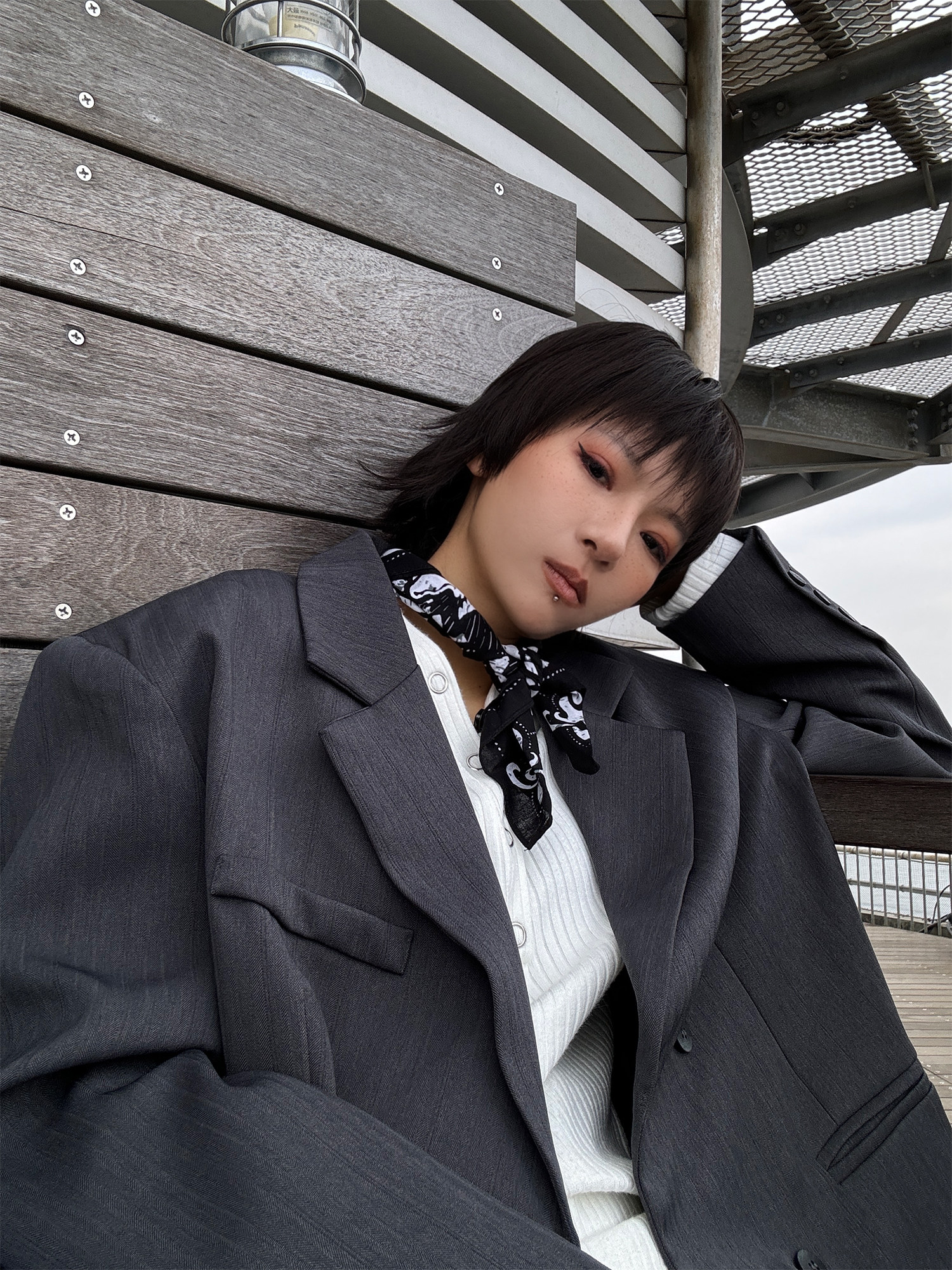 Grey suit, silhouette / M suit model size