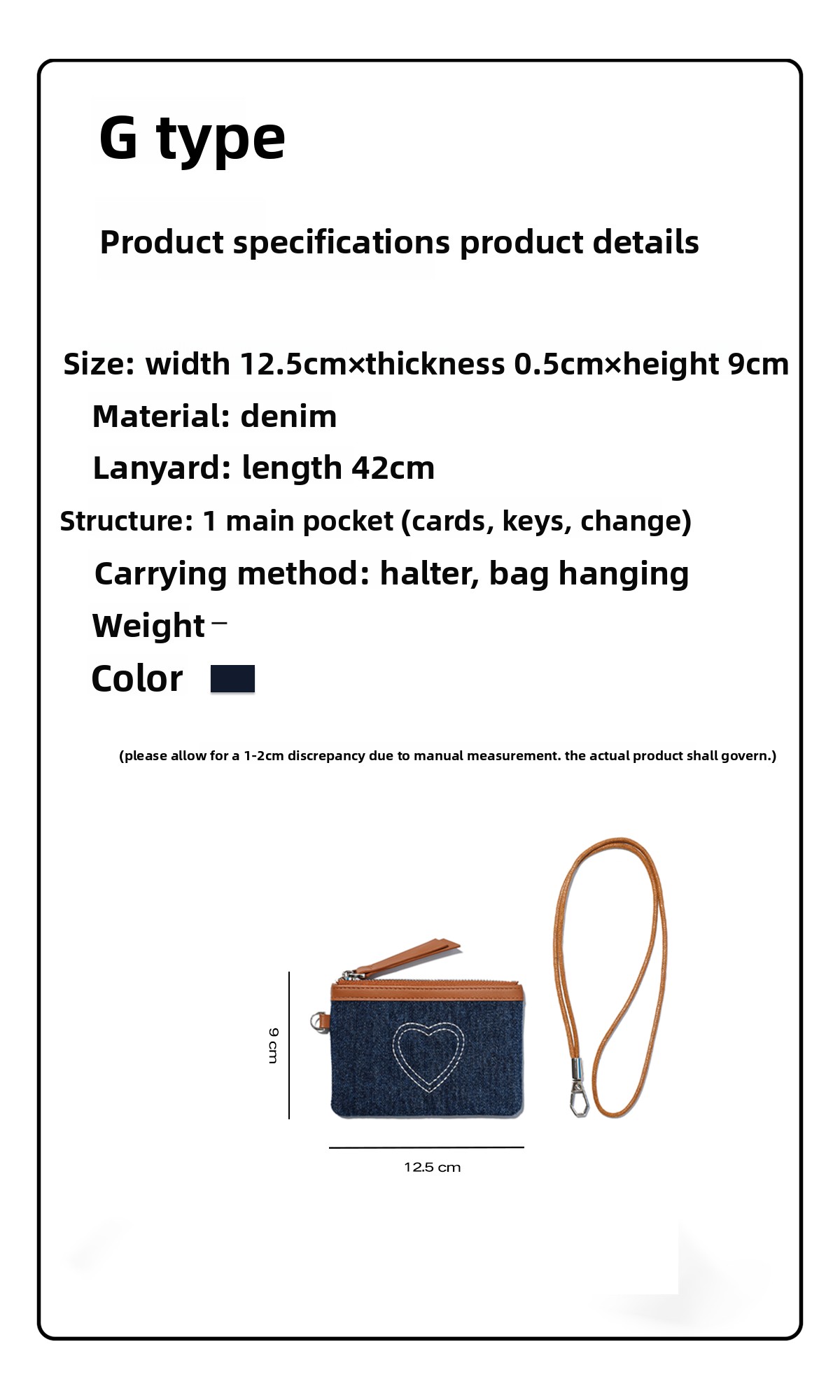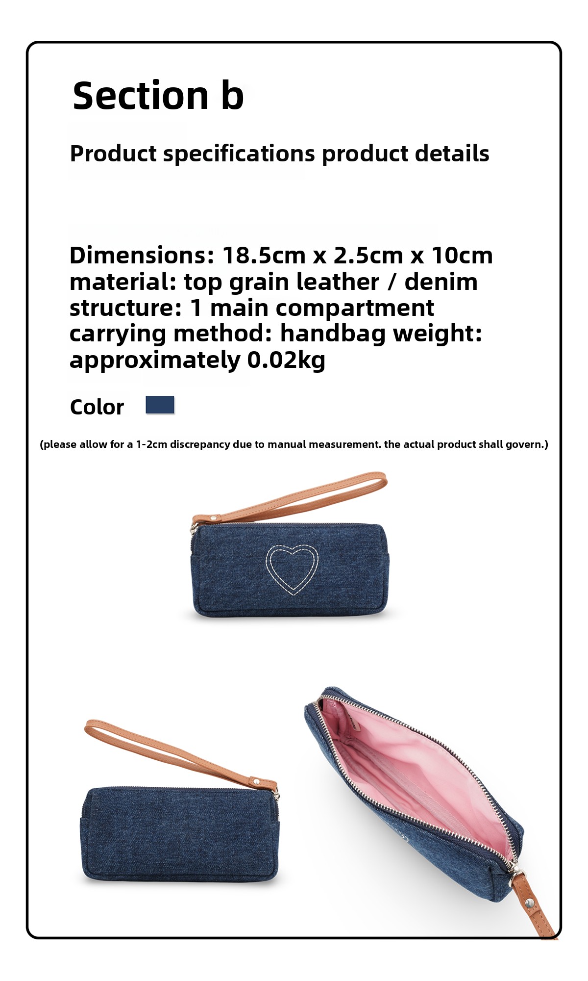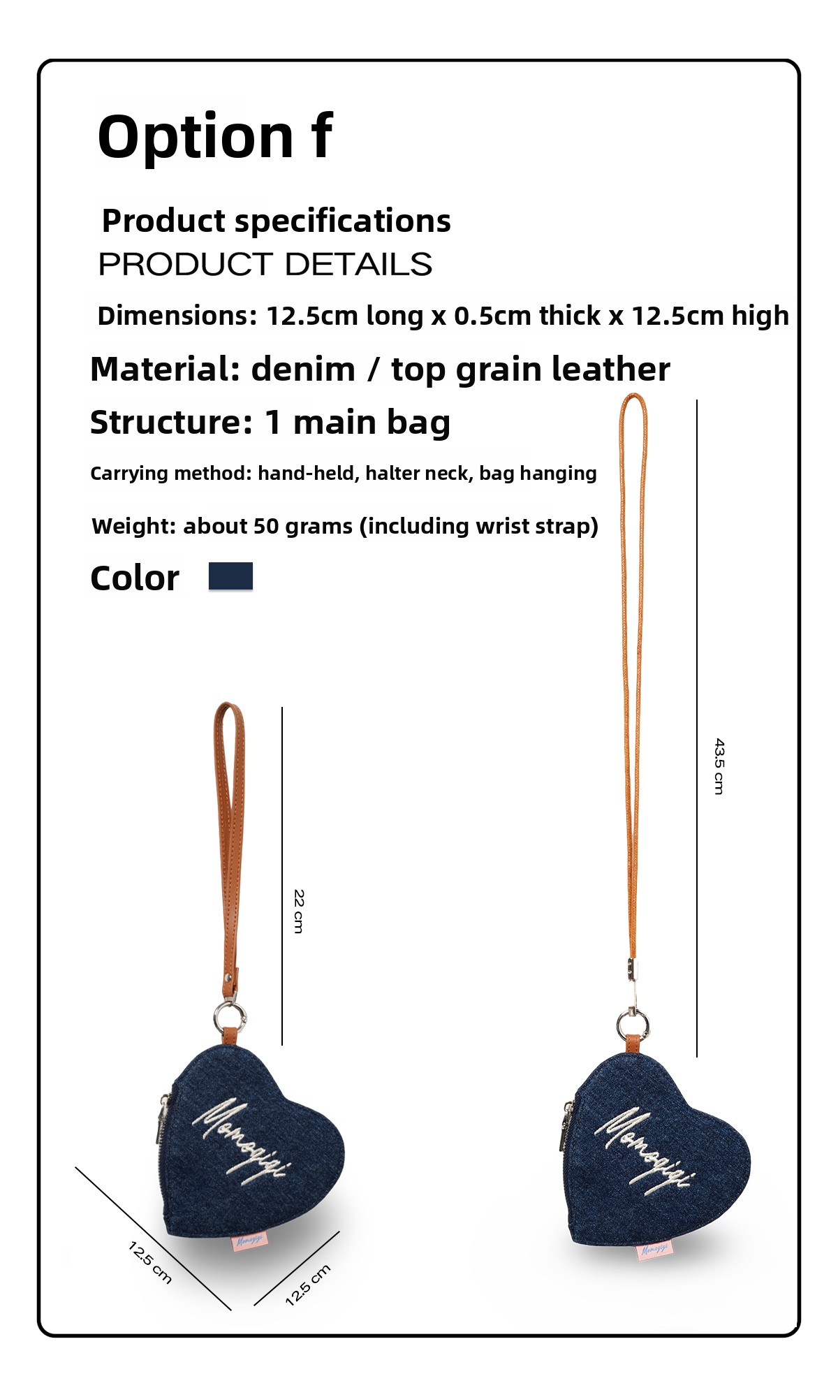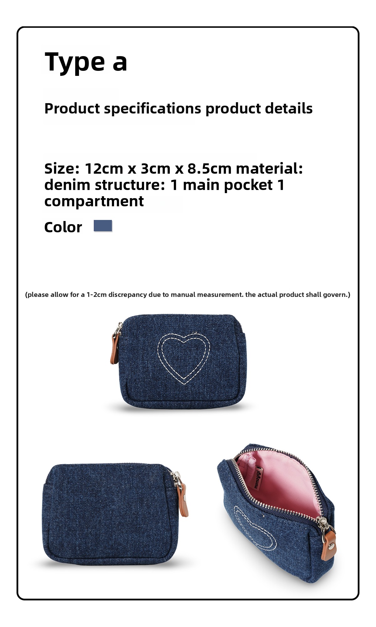 Momogigi Vintage Denim Love Embroidered Coin Bag