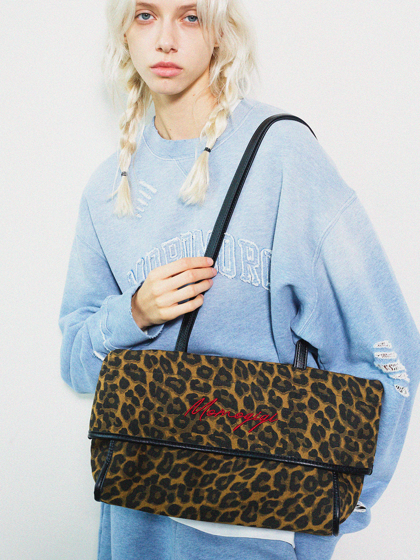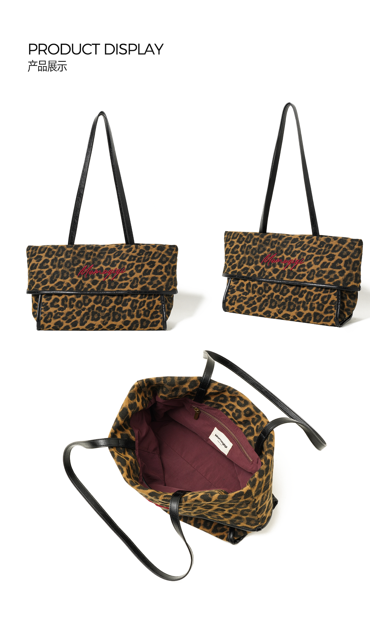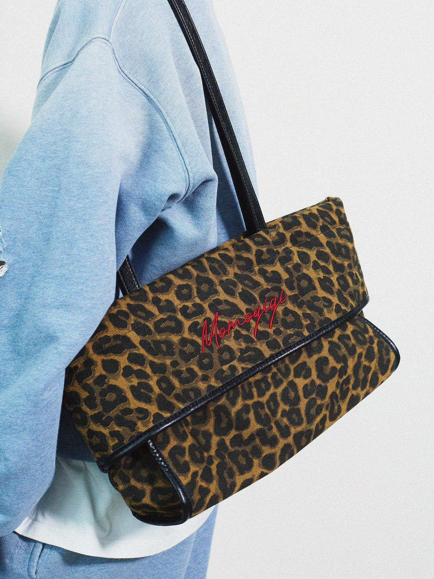 Momogigi Vintage Leopard Print Canvas Casual Underarm Bag