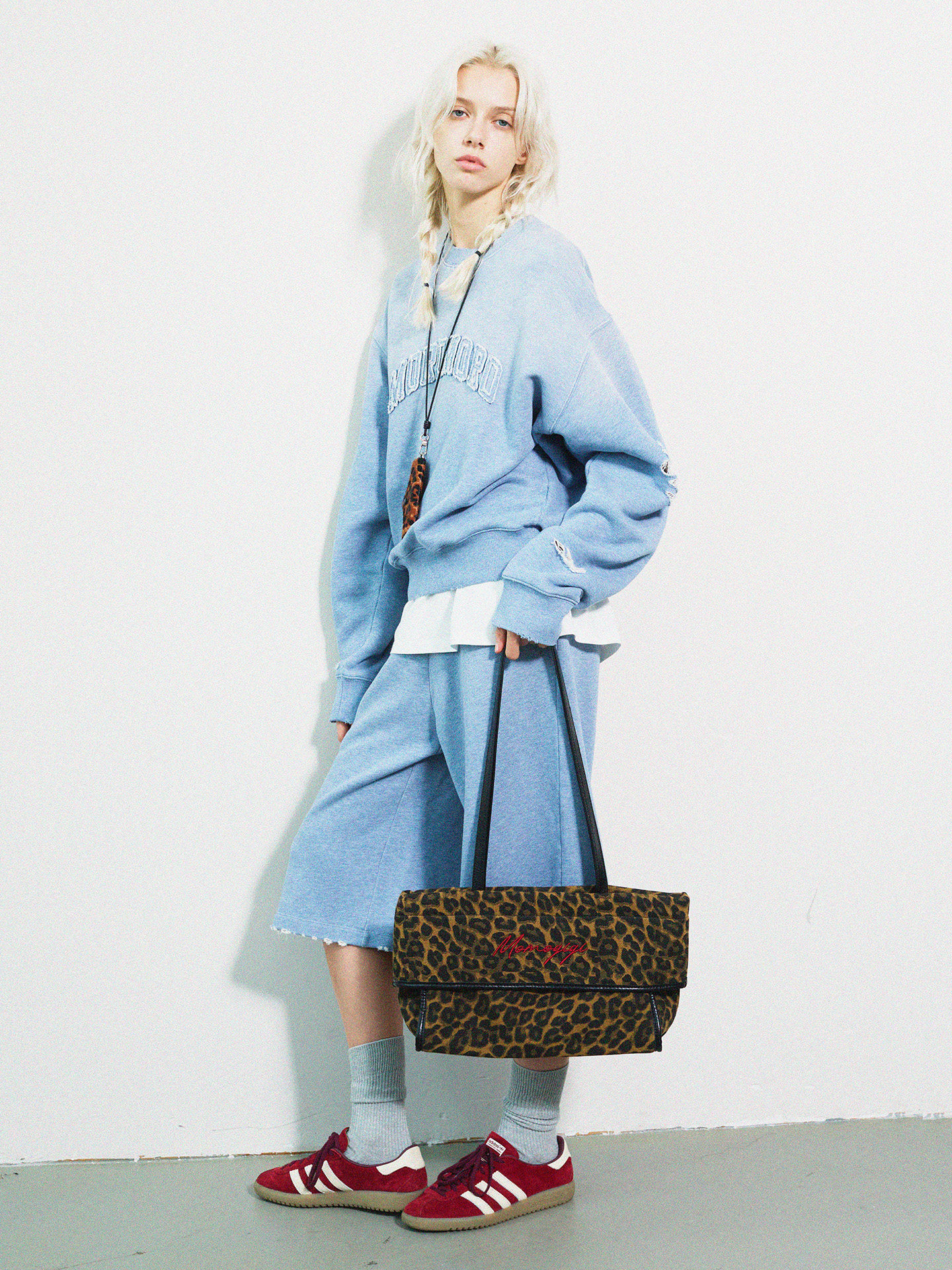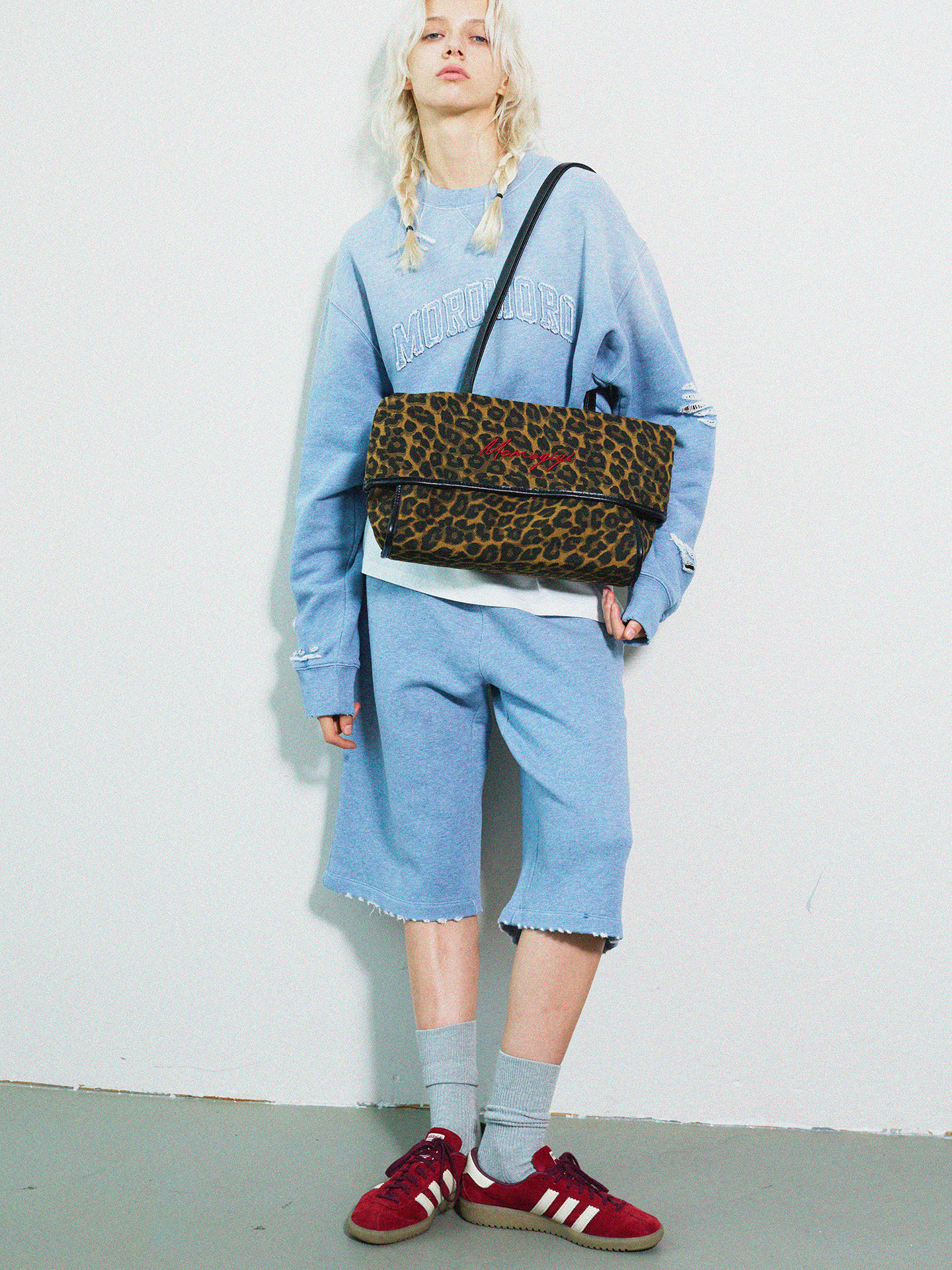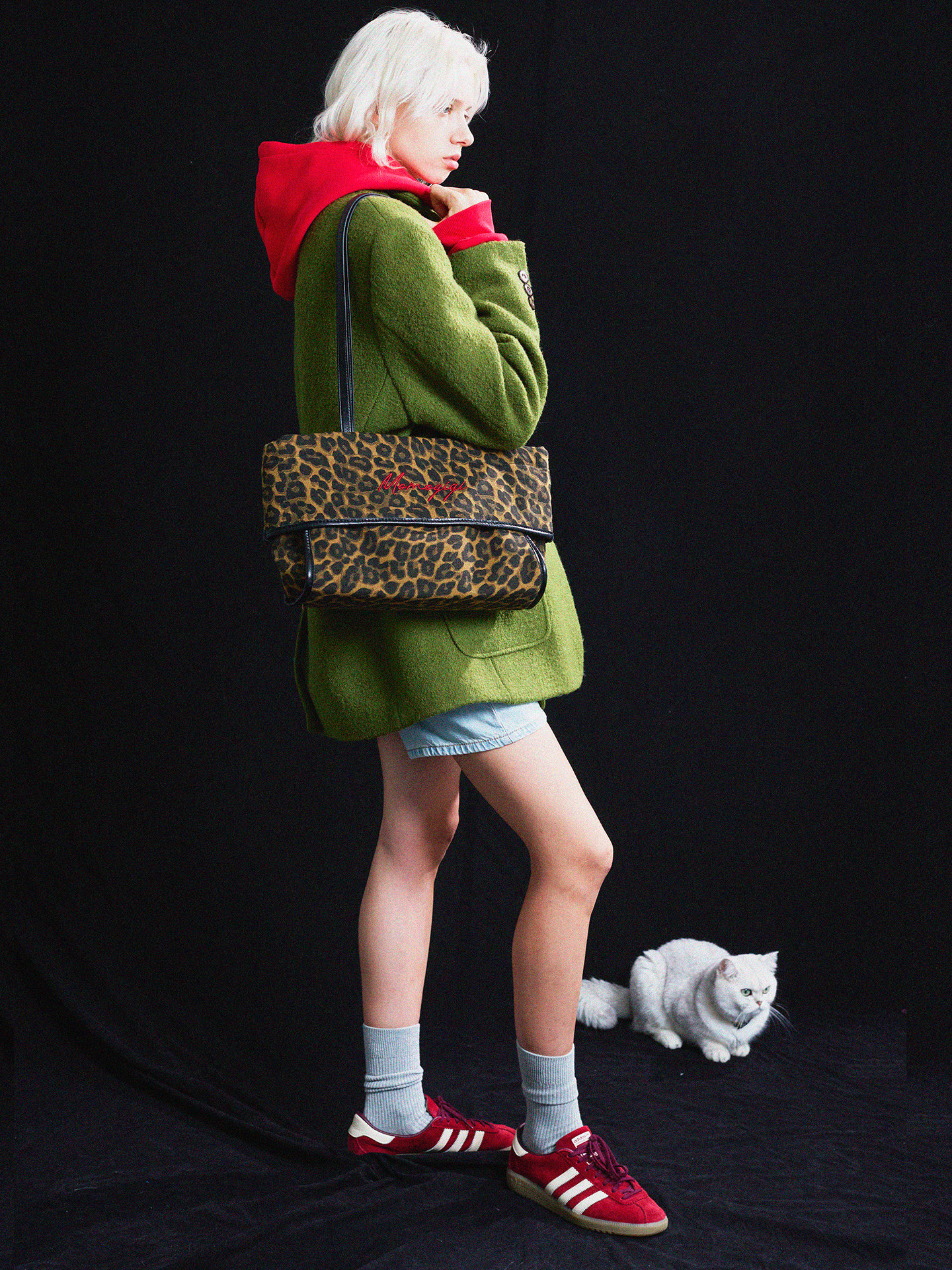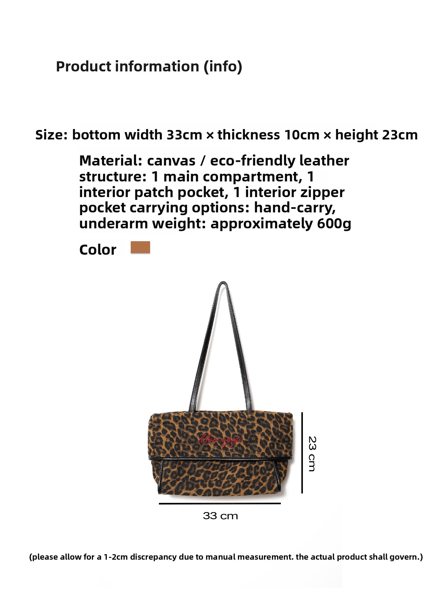 Momogigi Vintage Leopard Print Canvas Casual Underarm Bag