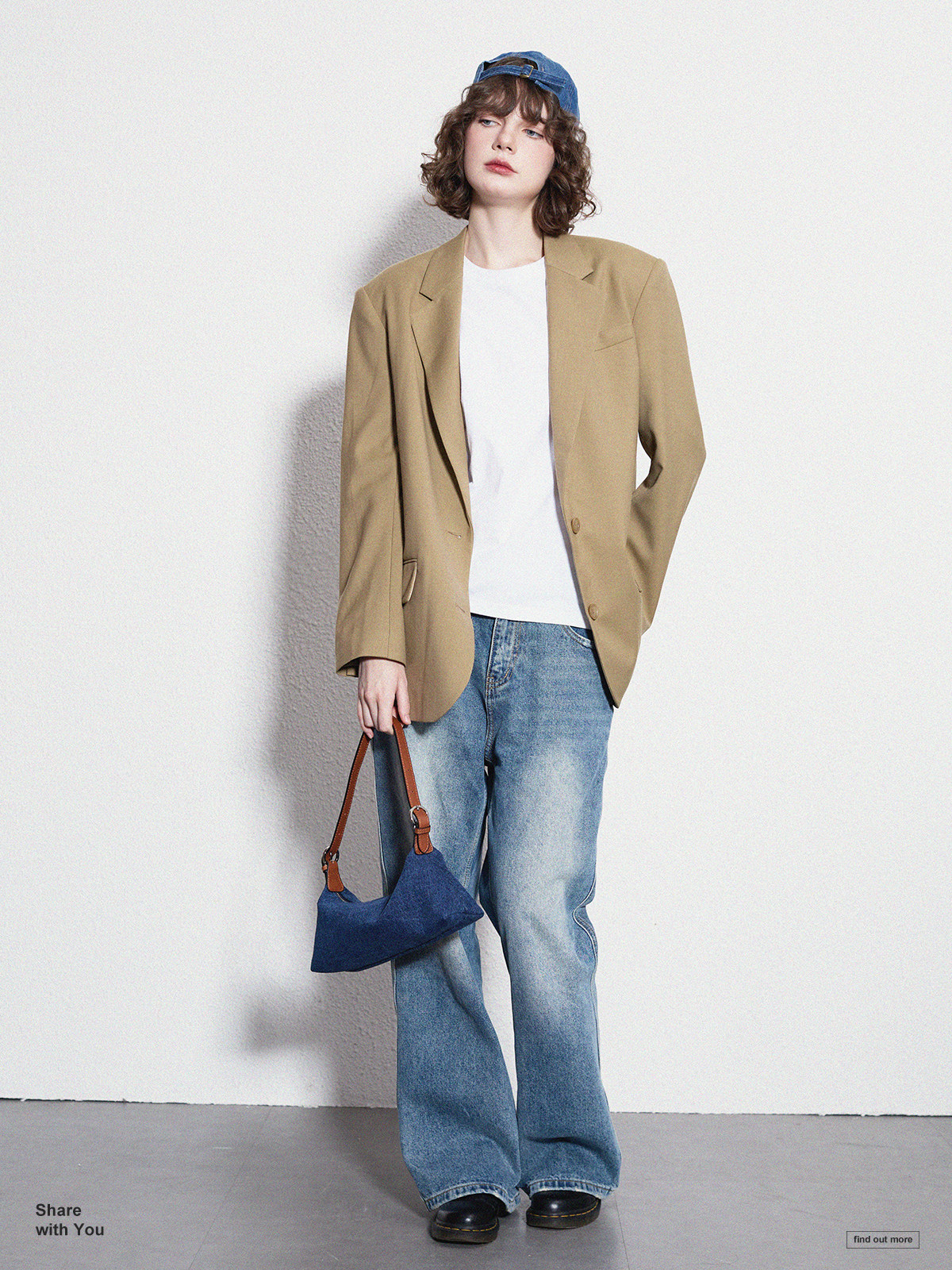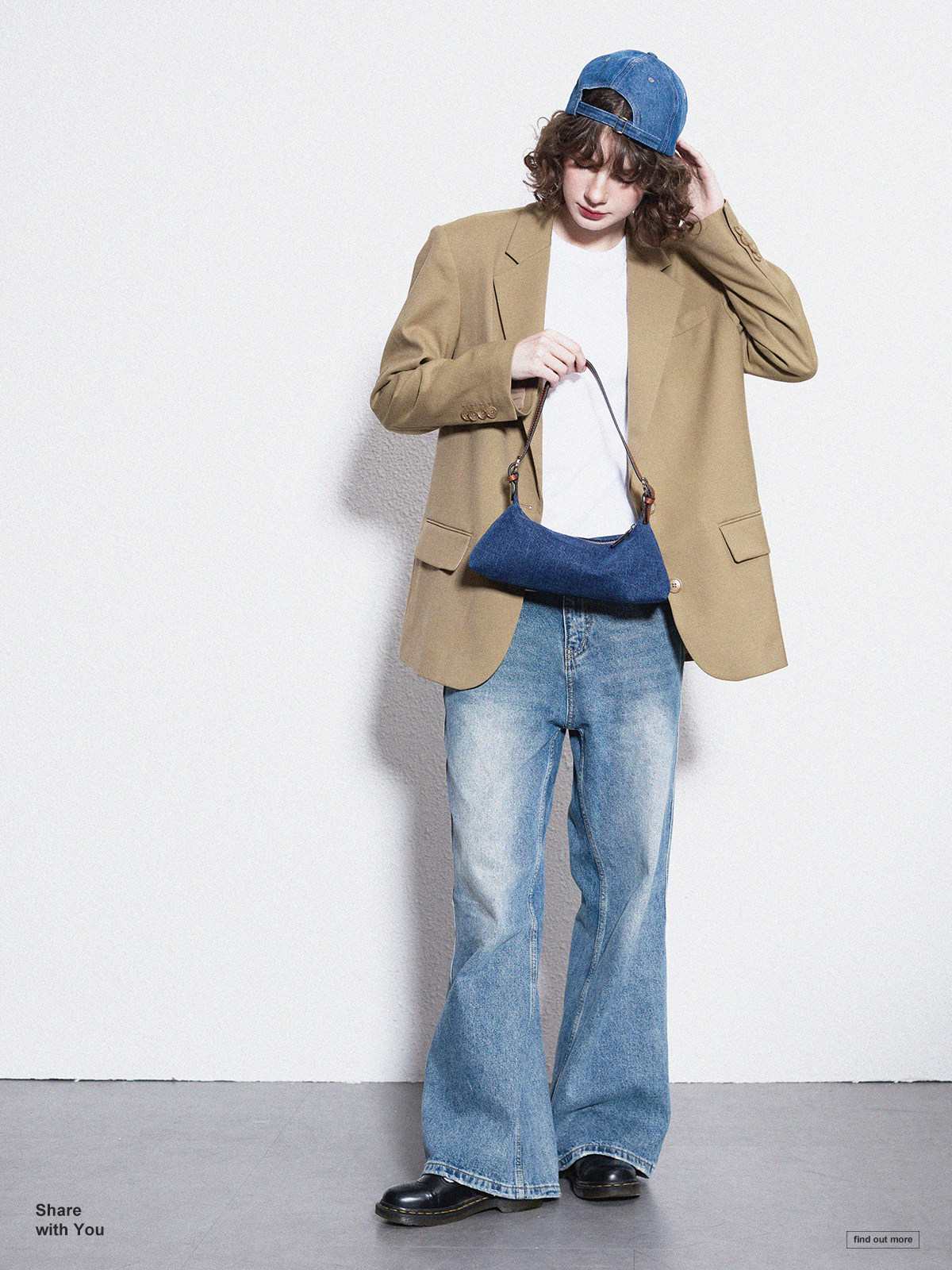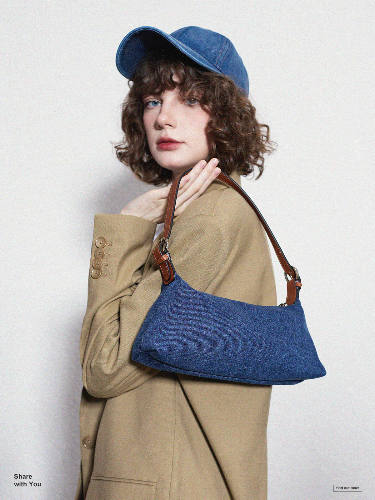 Momogigi Vintage Niche Leather Splicing Handheld Underarm Bag