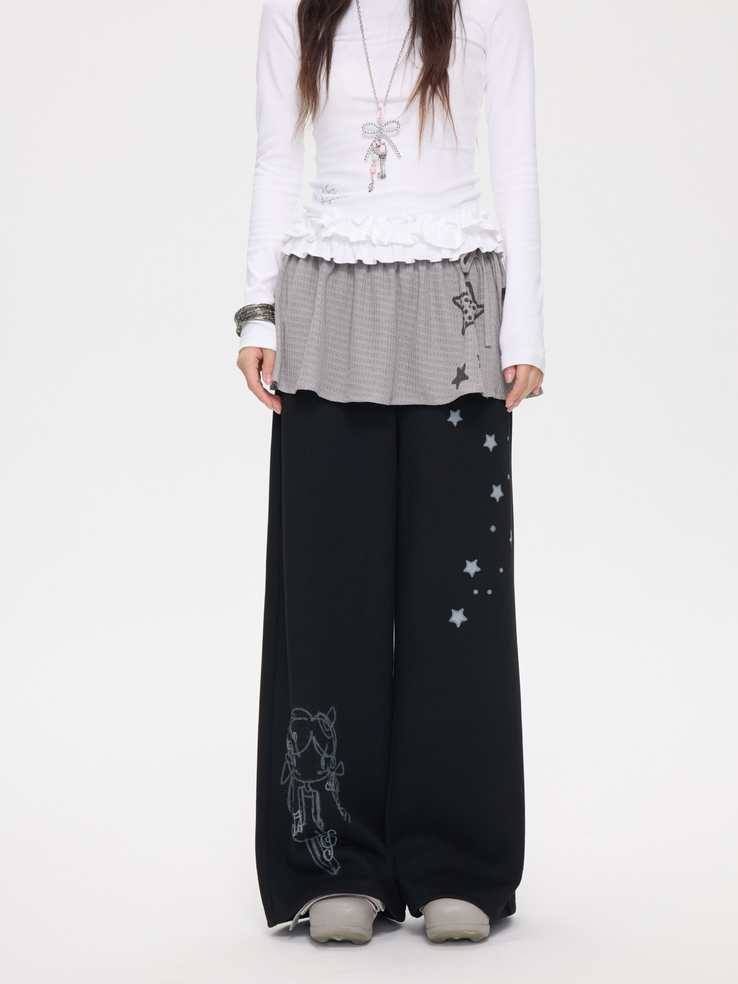 MOMSAYCAN Fart Curtain Two-piece Printed Versatile Knitted Sweatpants