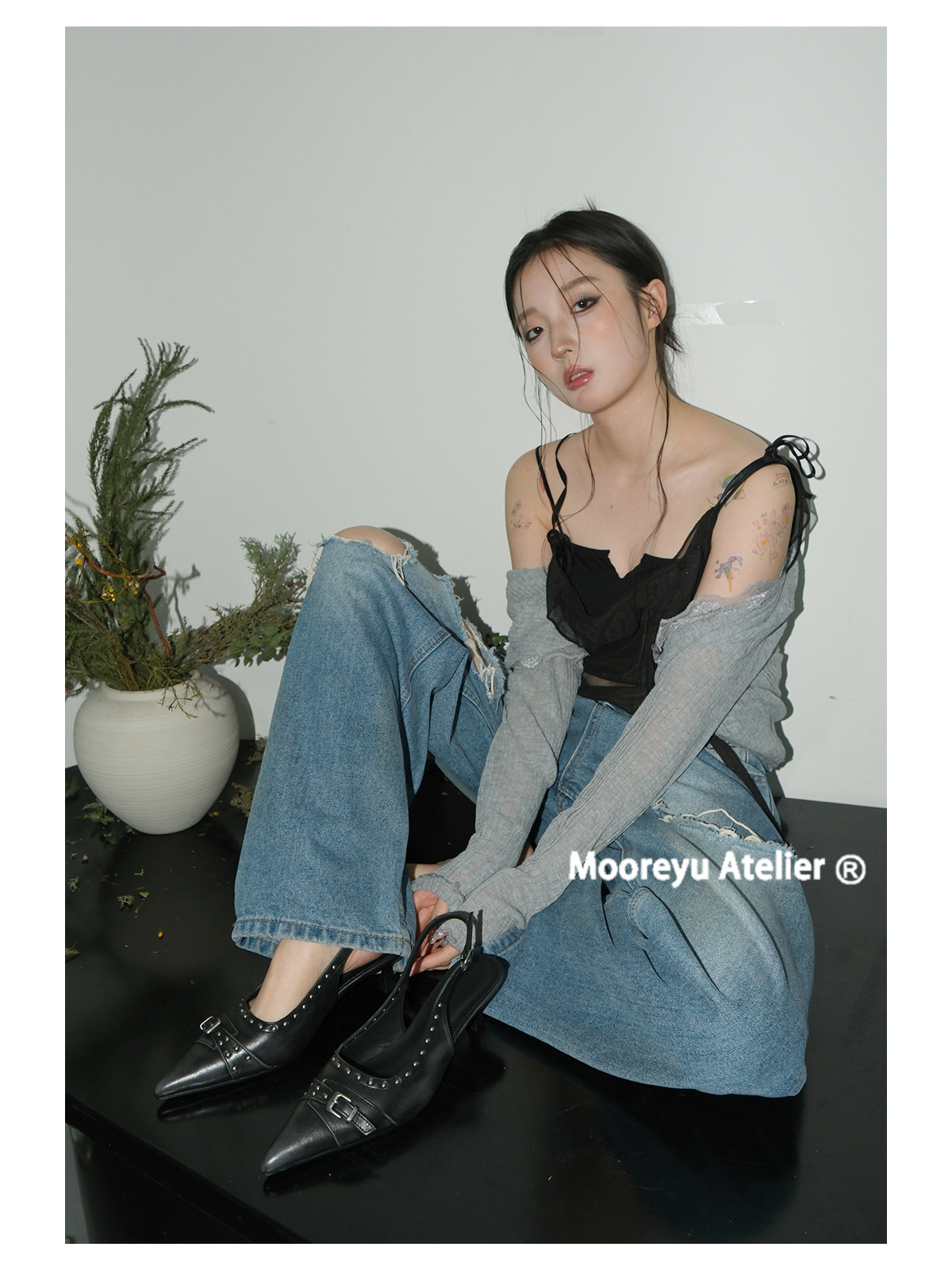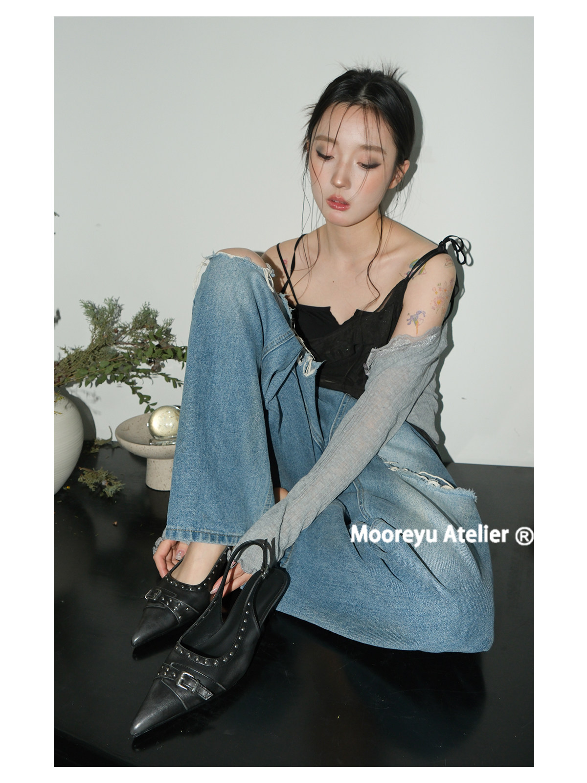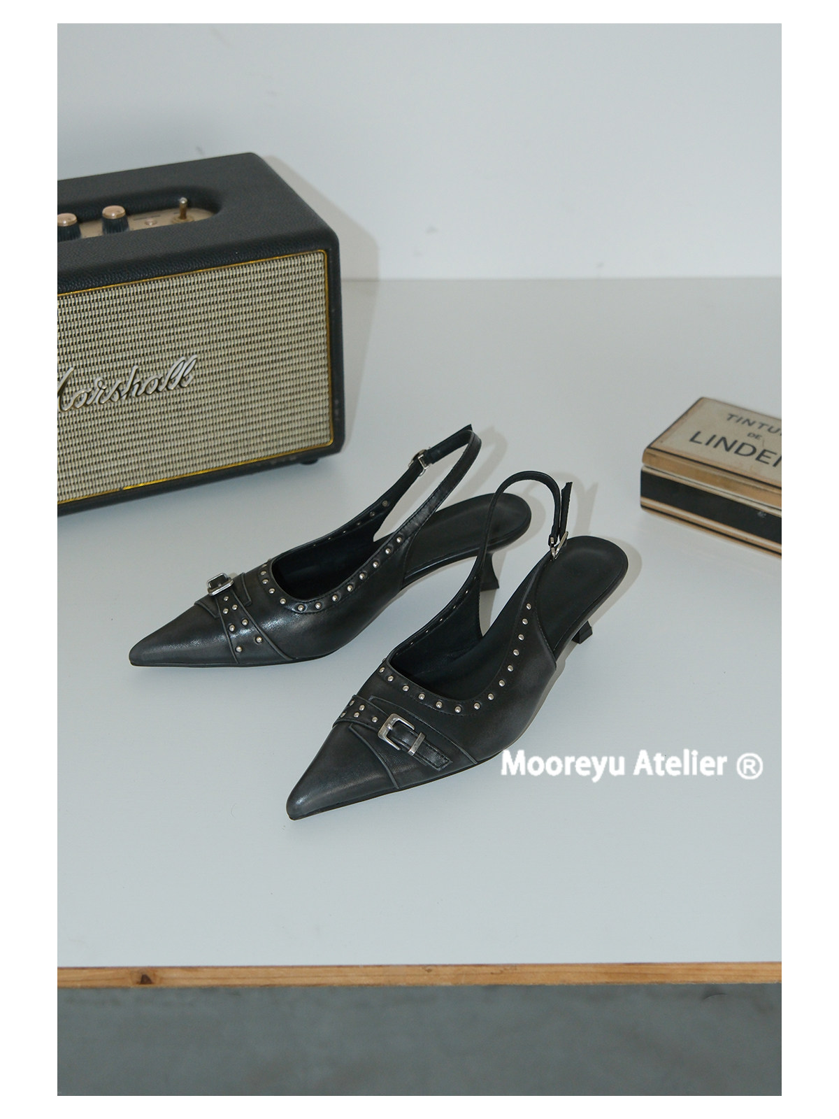 Mooreyu Belt Buckle Bag Head Cool Slippers High Heel