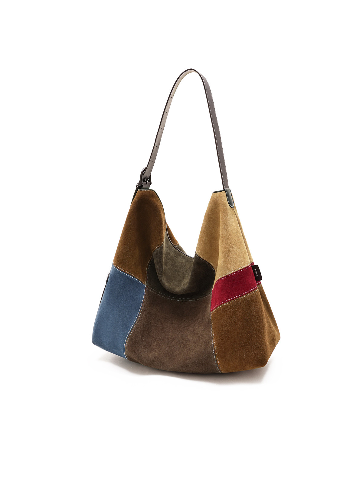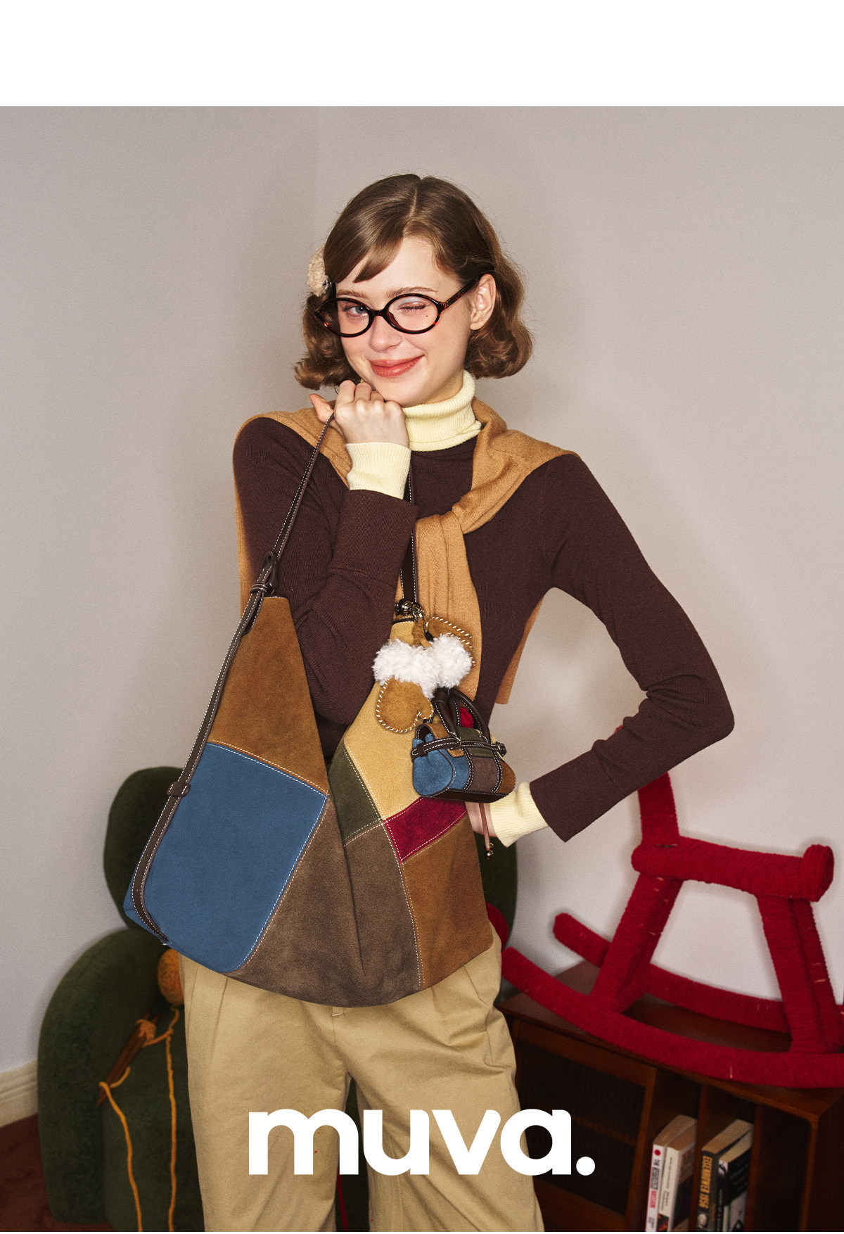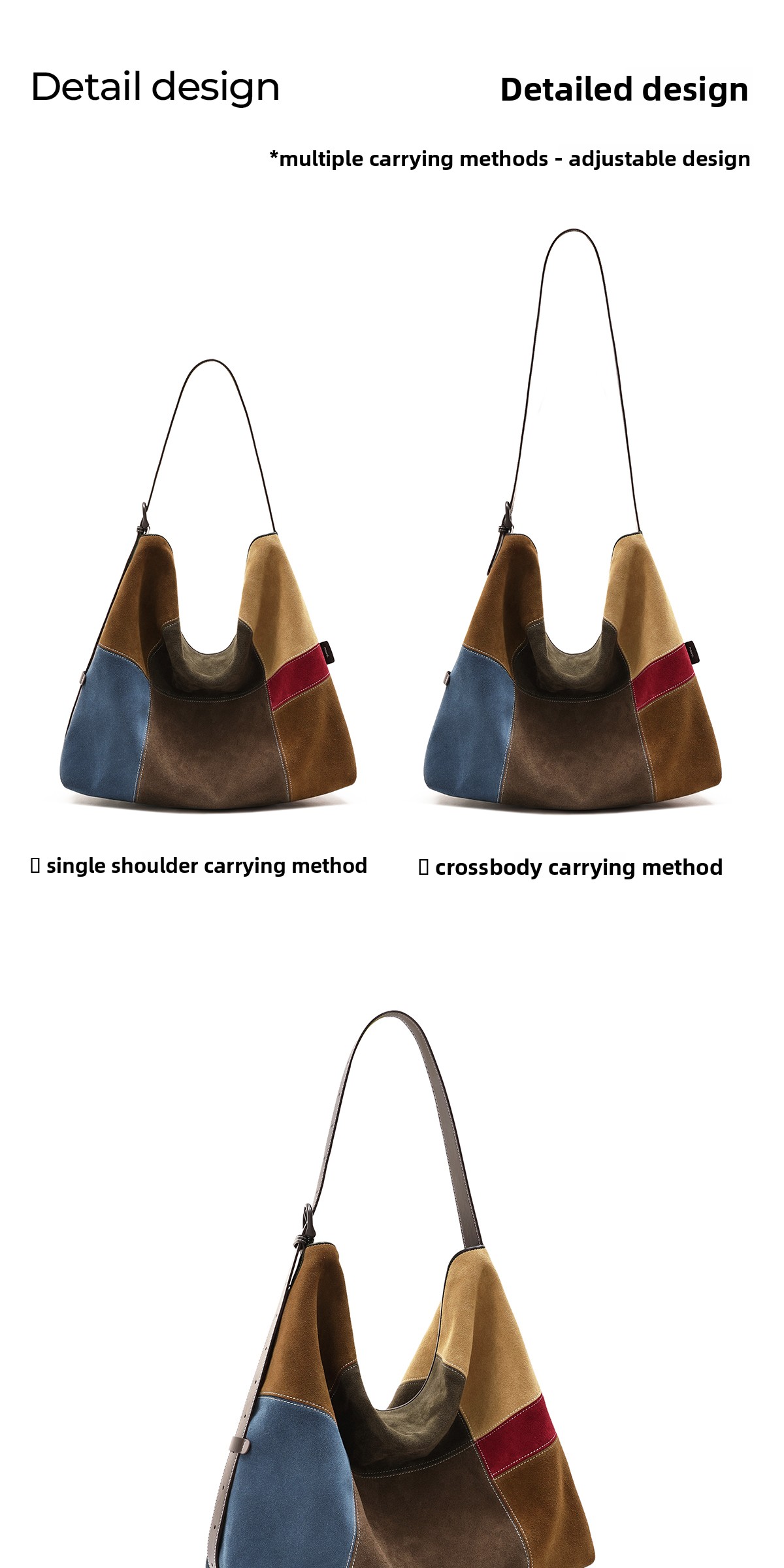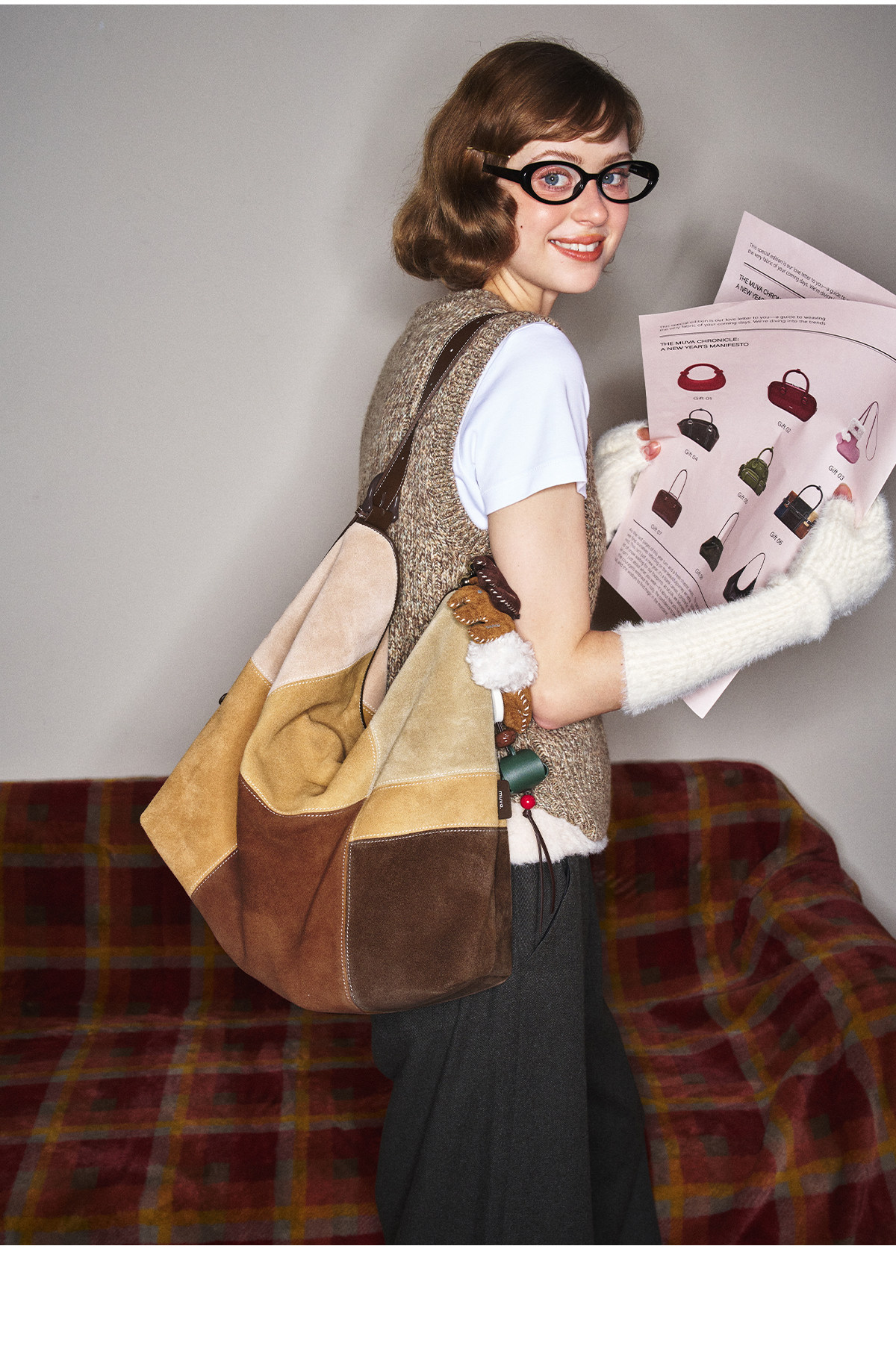 MUVA Cowhide Velvet Color Matching Stray Bag Large Capacity Shoulder Messenger Bag