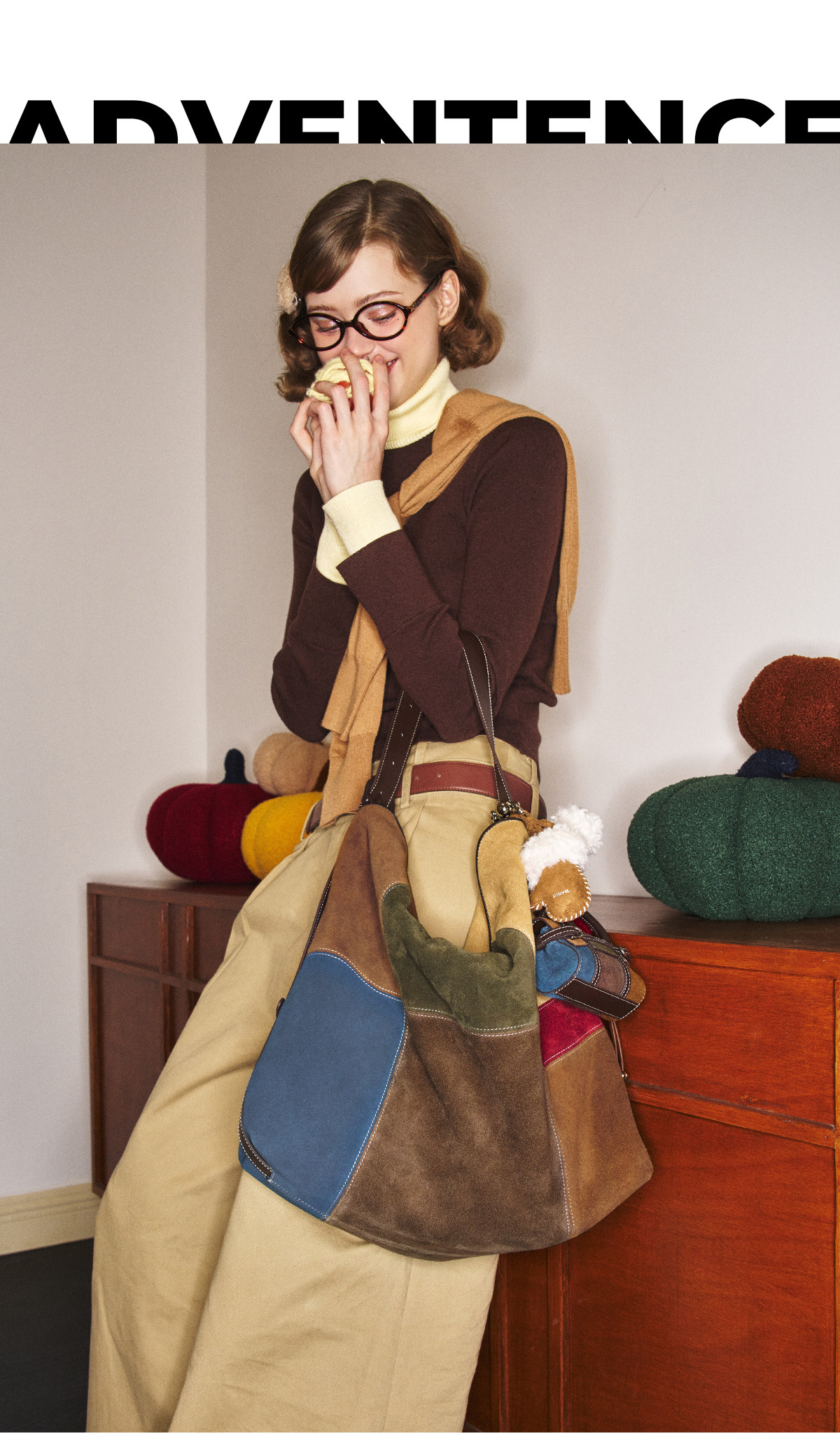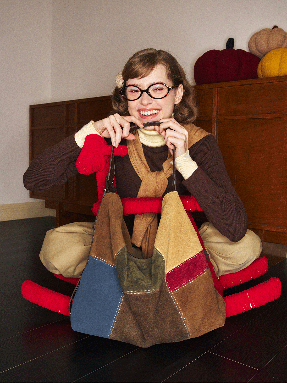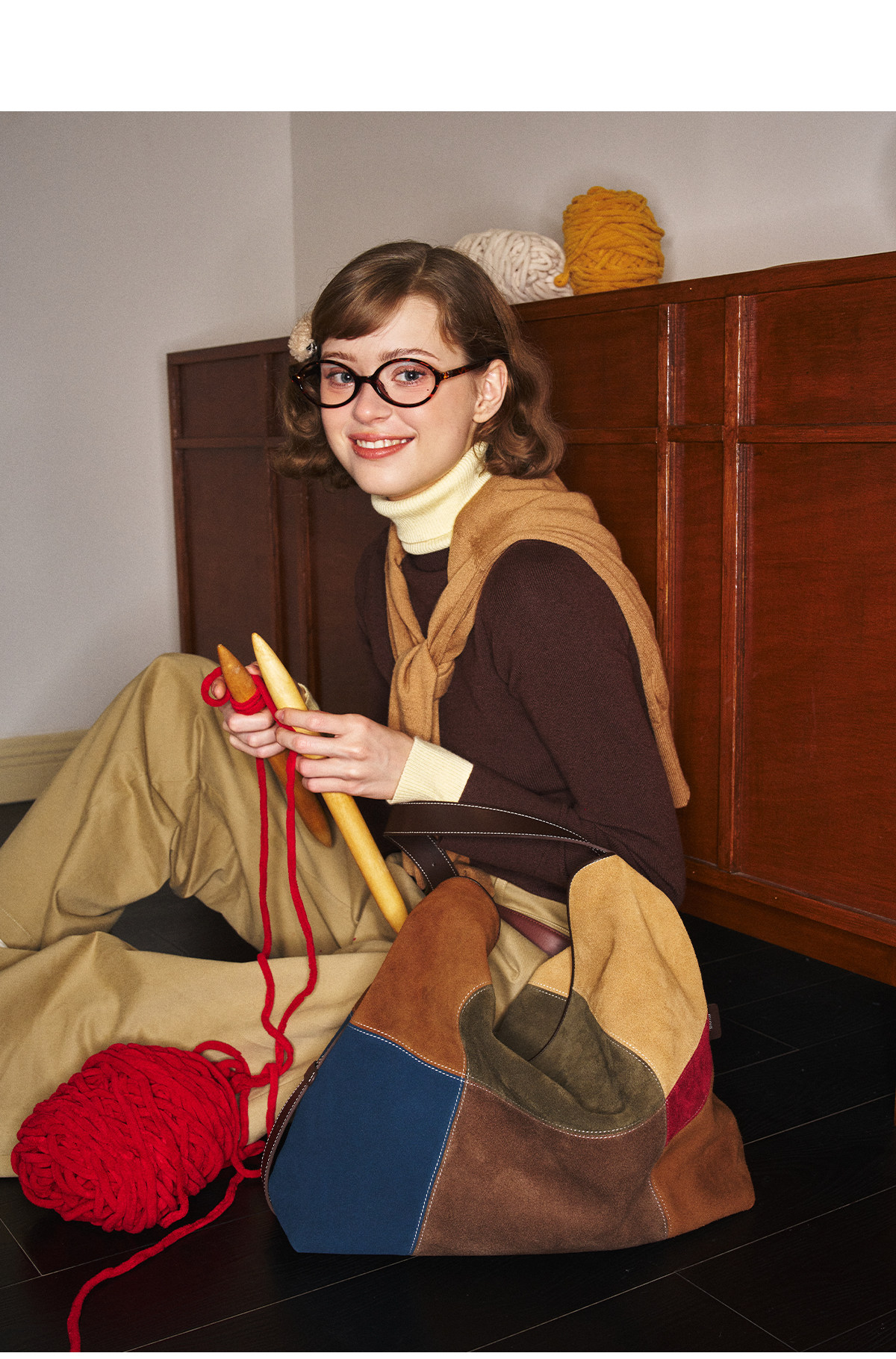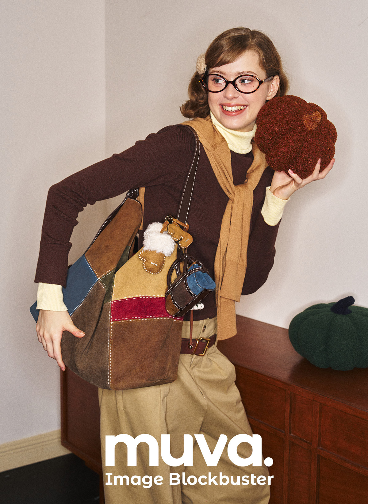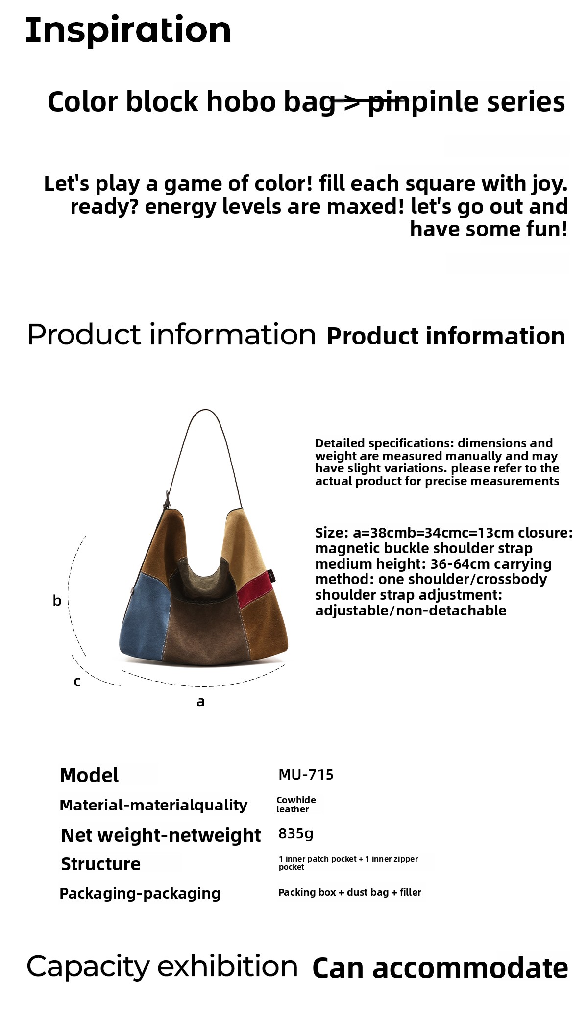 MUVA Cowhide Velvet Color Matching Stray Bag Large Capacity Shoulder Messenger Bag