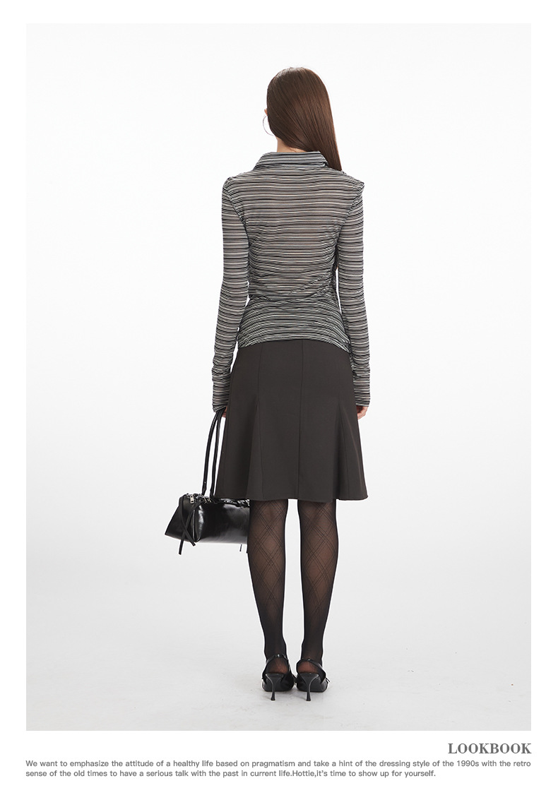 Nariele Irregular Striped Shoulder Long Sleeves