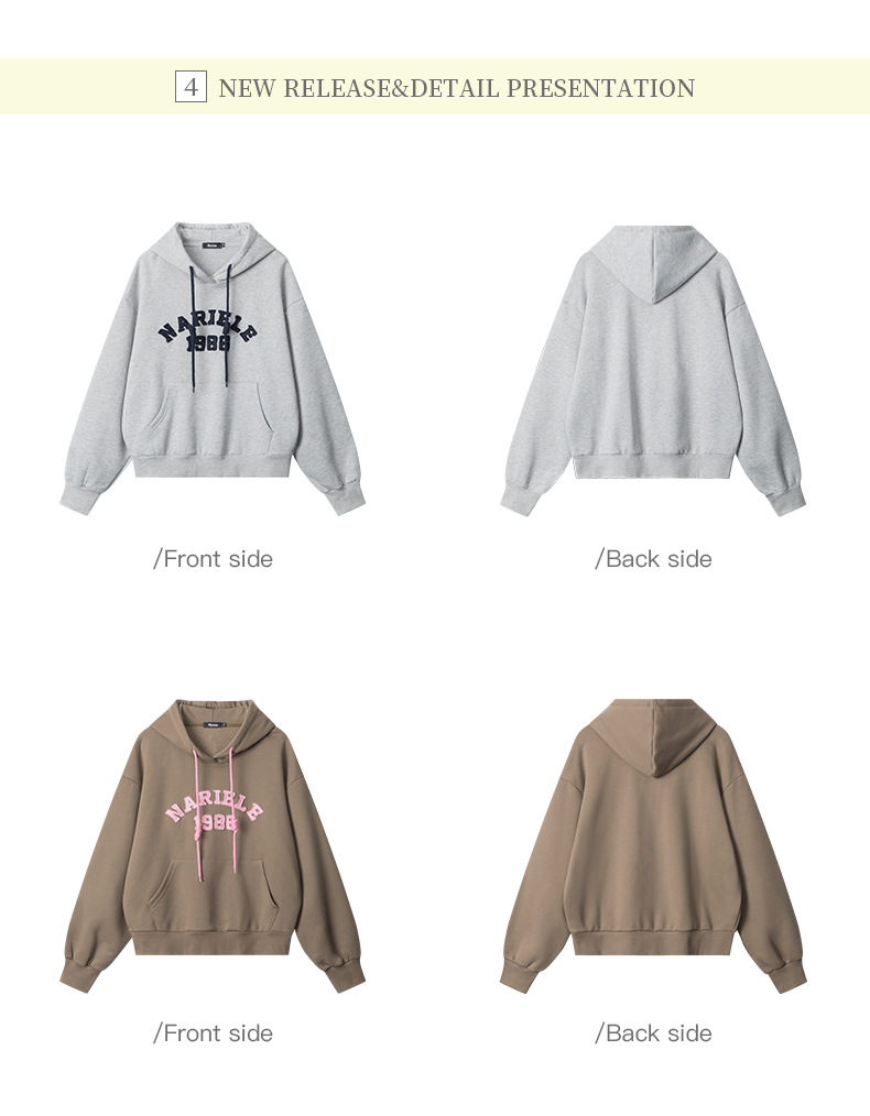Nariele Retro Style Lettered Embroidered Hoodie Sweatshirt Loose New Casual Top