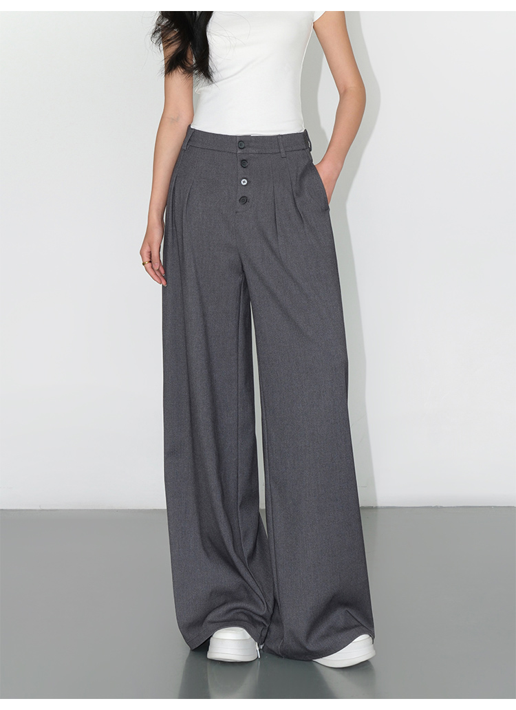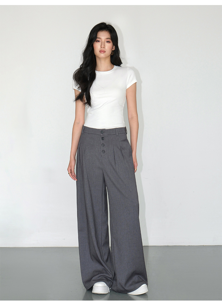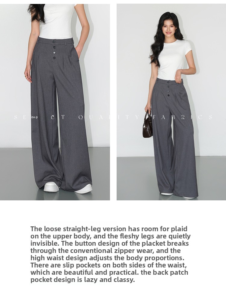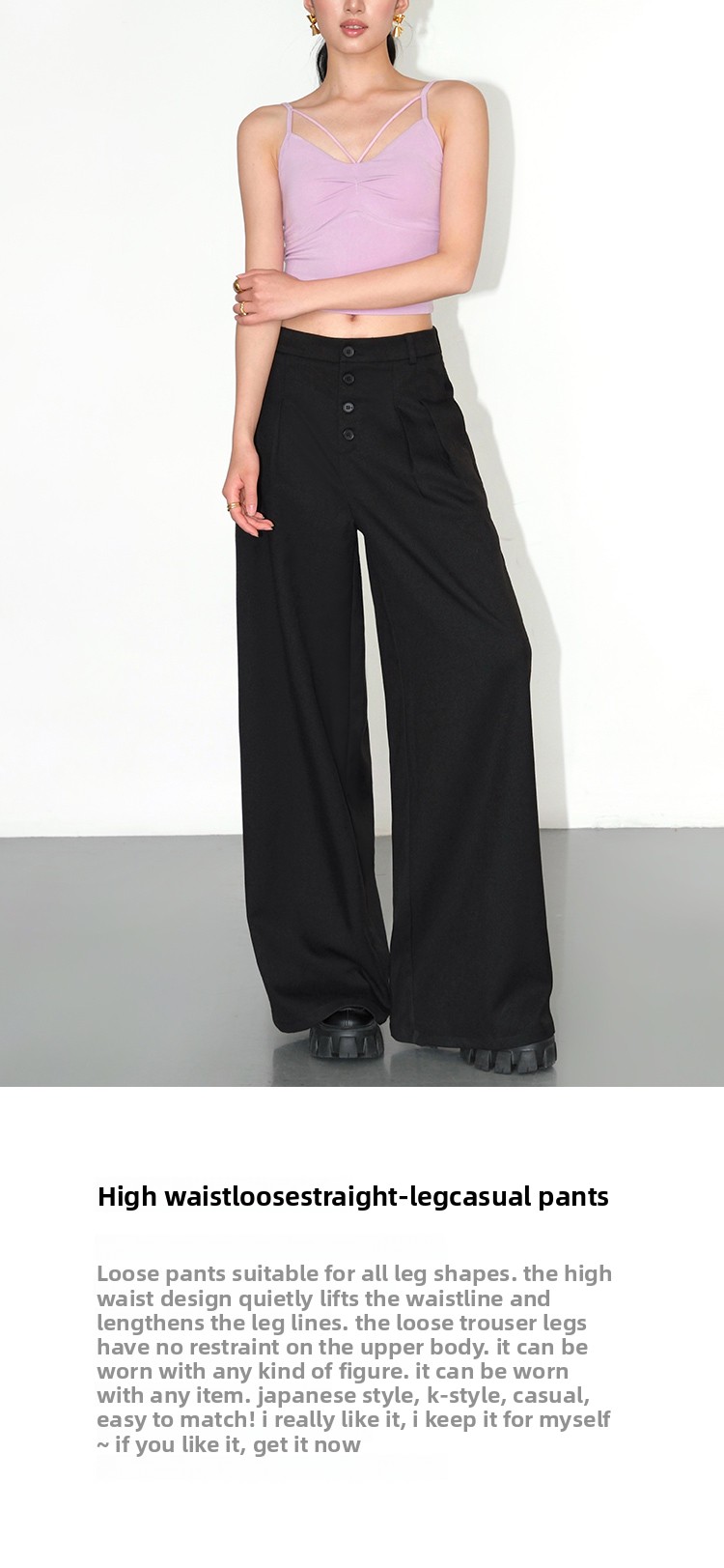 NEVA HU Casual High-waisted Drape Loose Straight Floor Pants