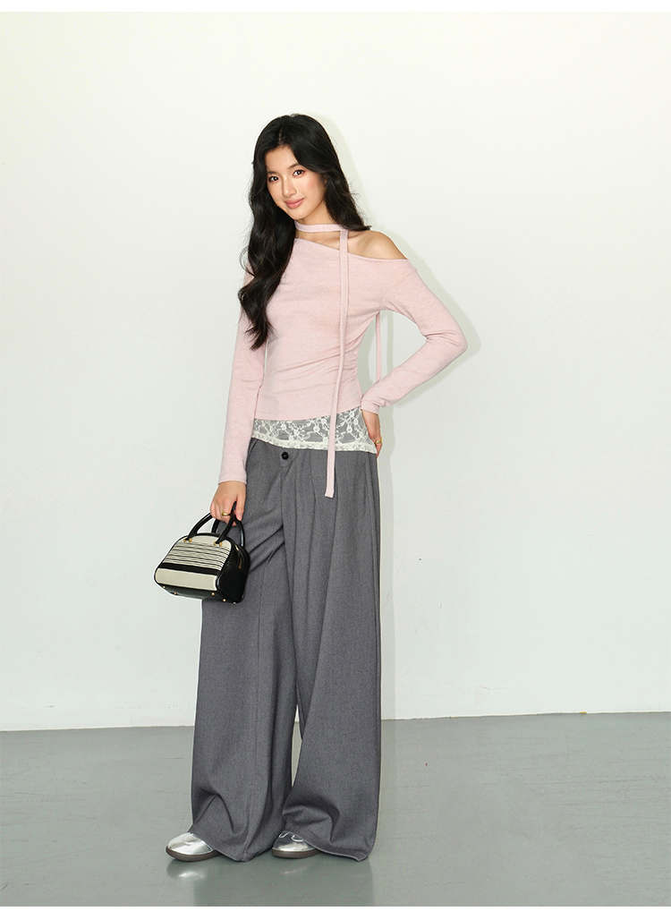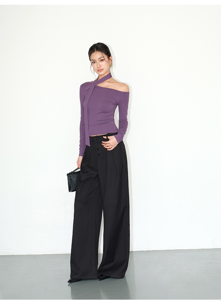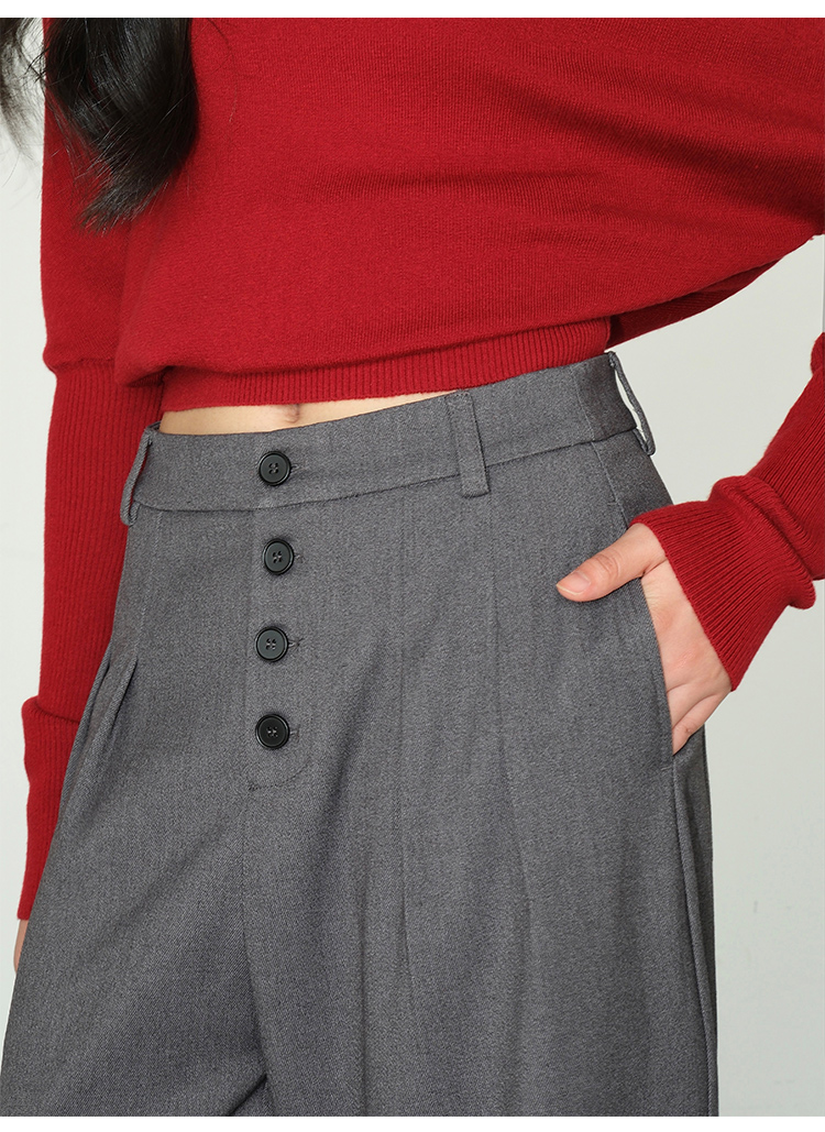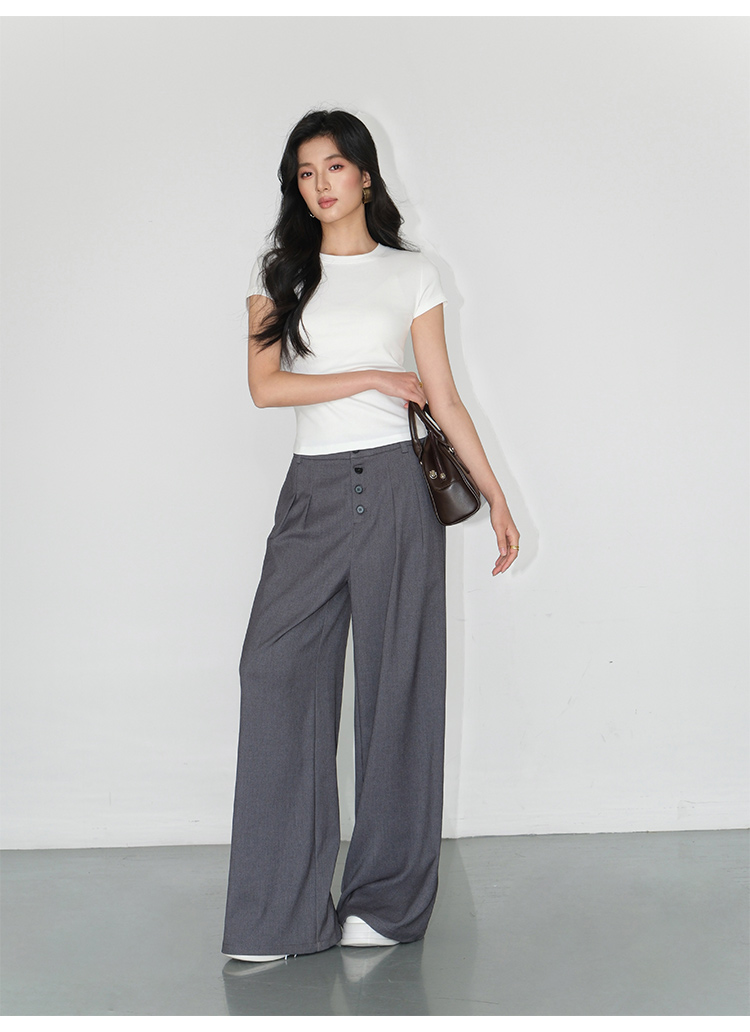 NEVA HU Casual High-waisted Drape Loose Straight Floor Pants