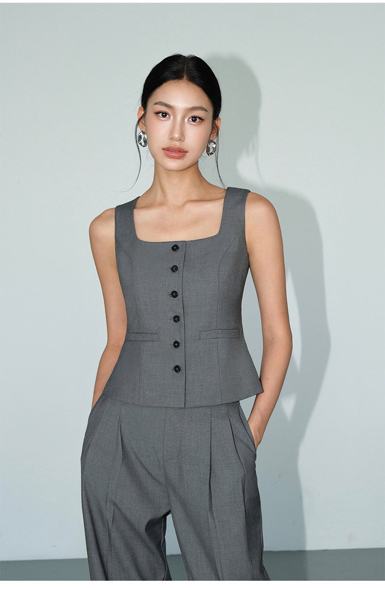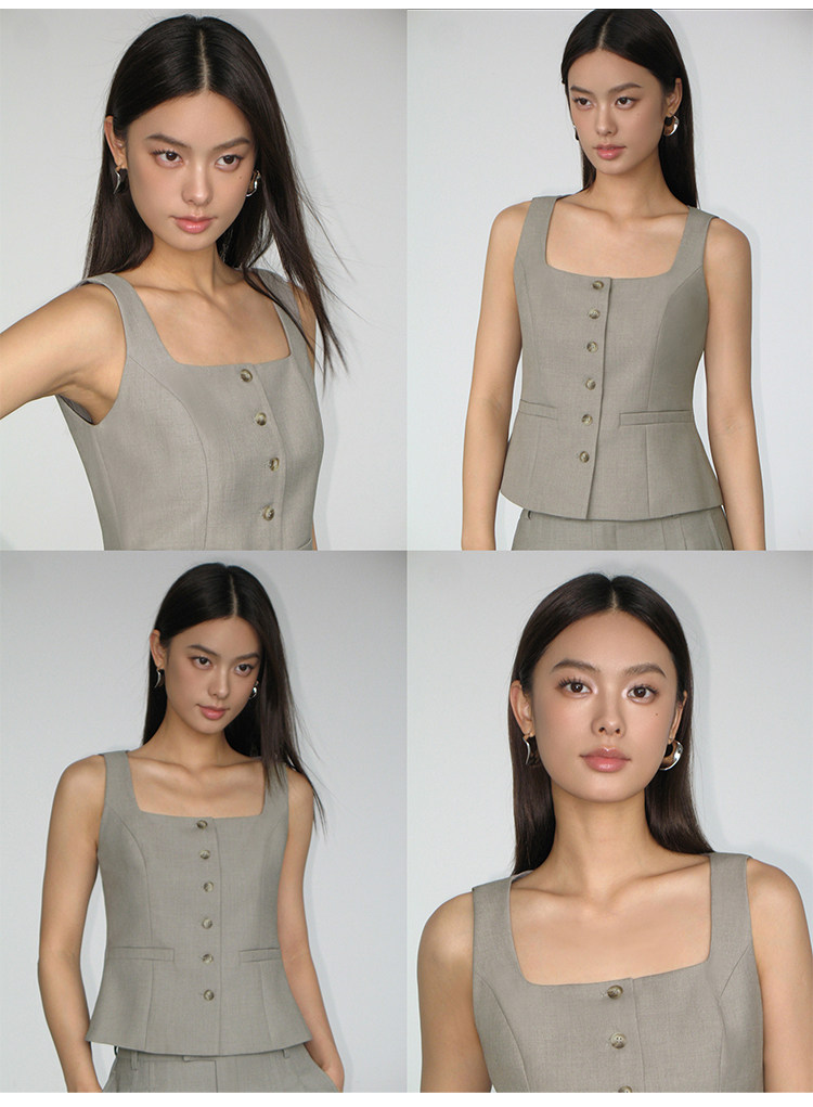 NEVA HU Square Collar Suit Vest