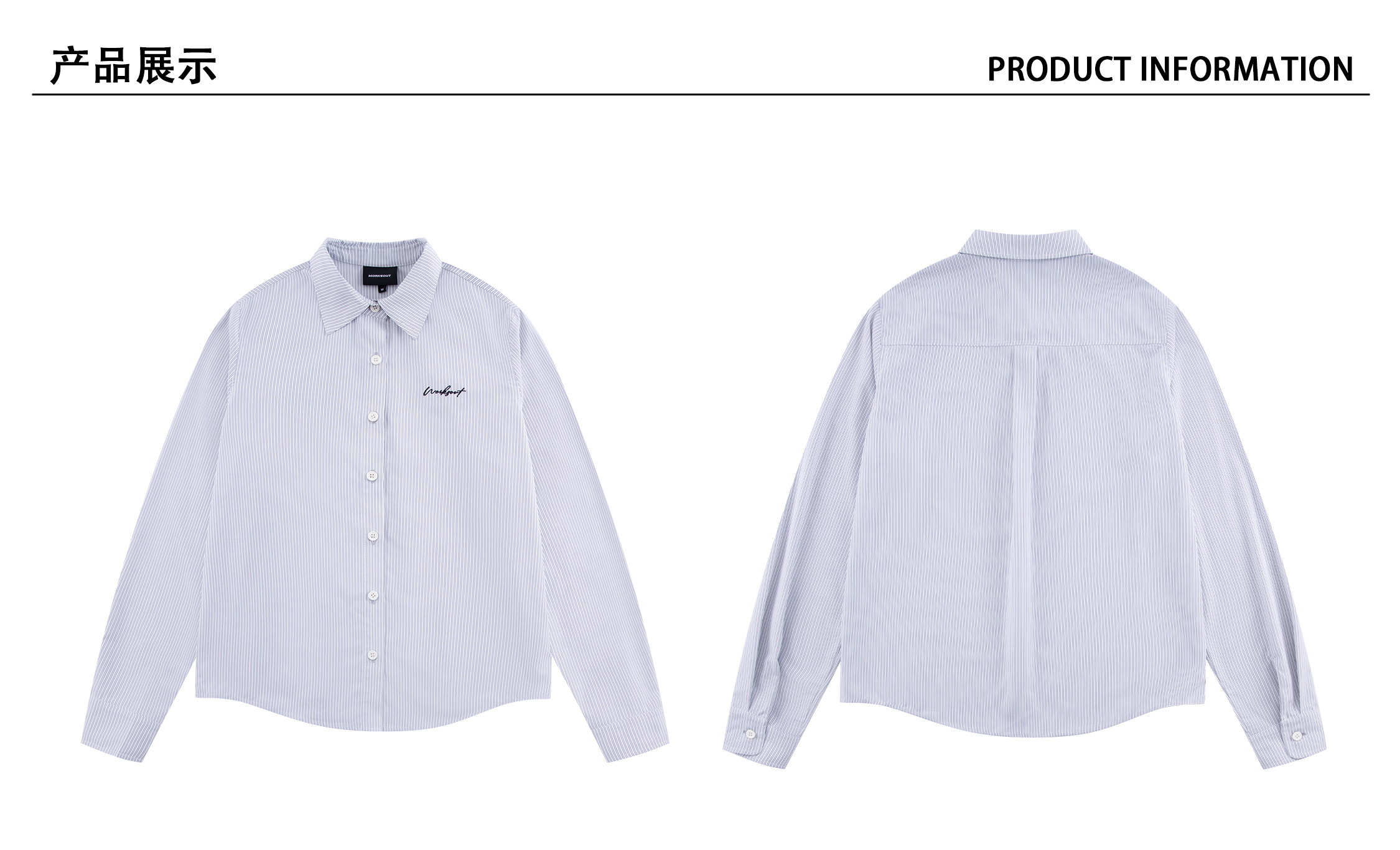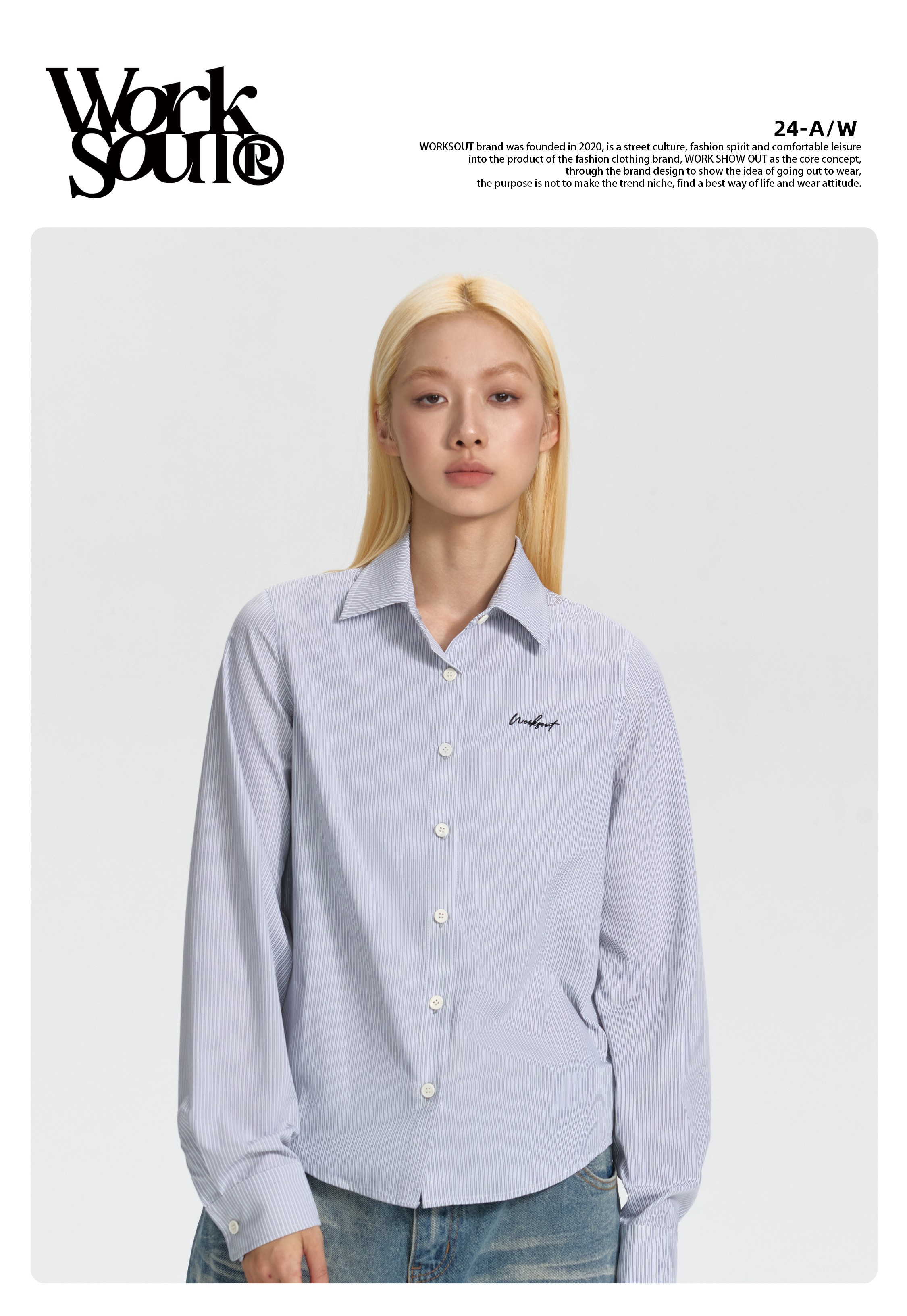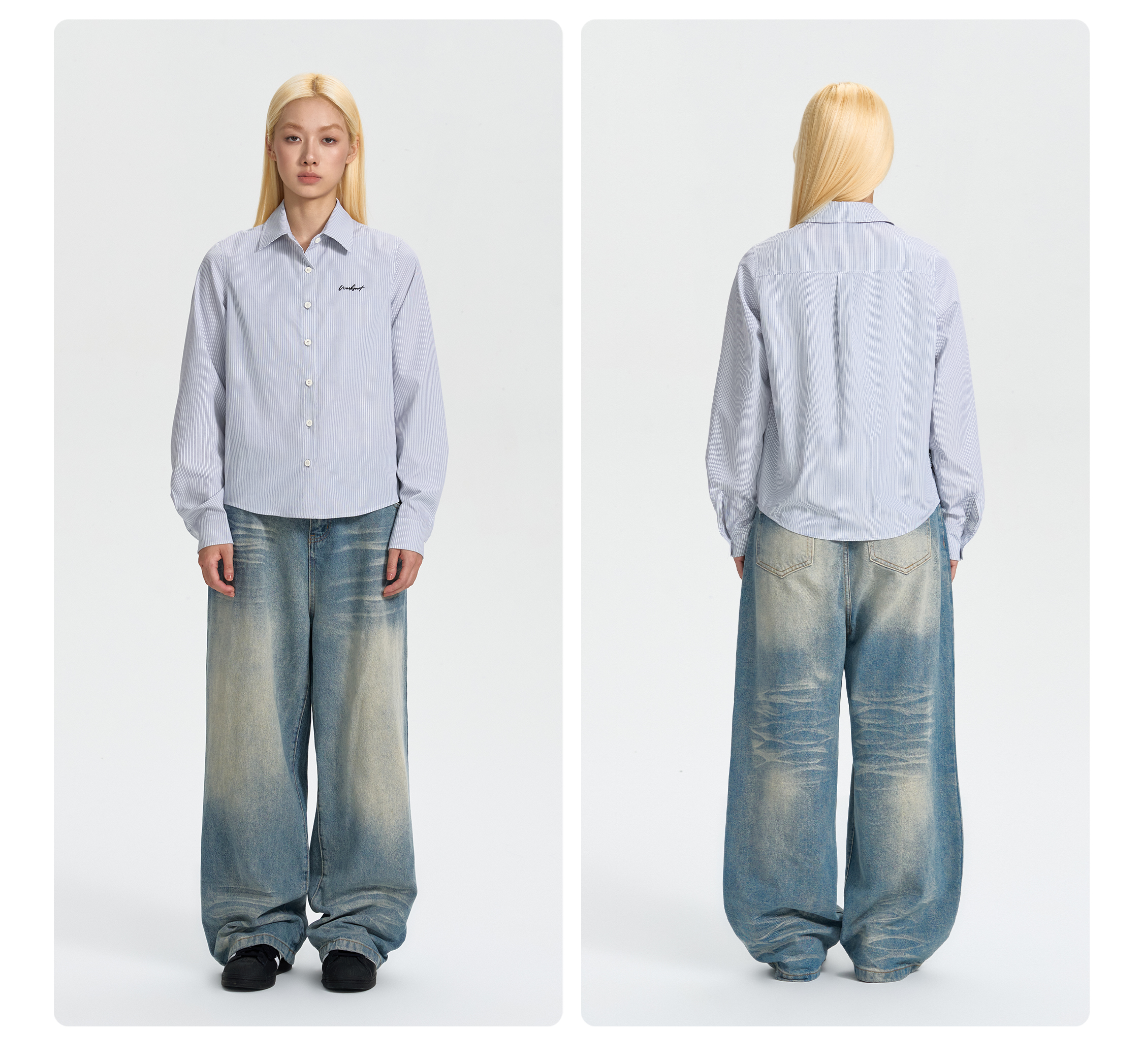 NICEBAD Striped-embroidered Slim-fit Short Shirt