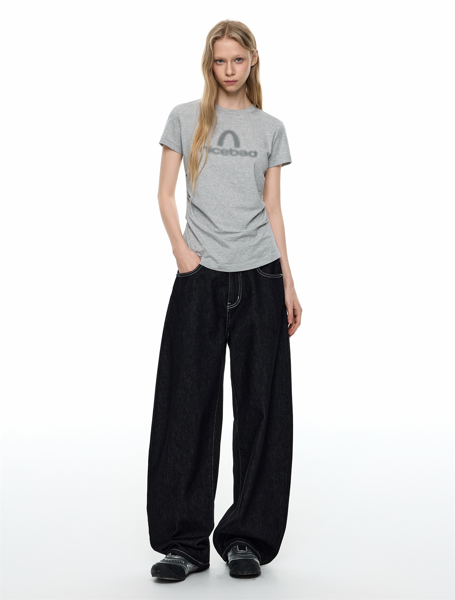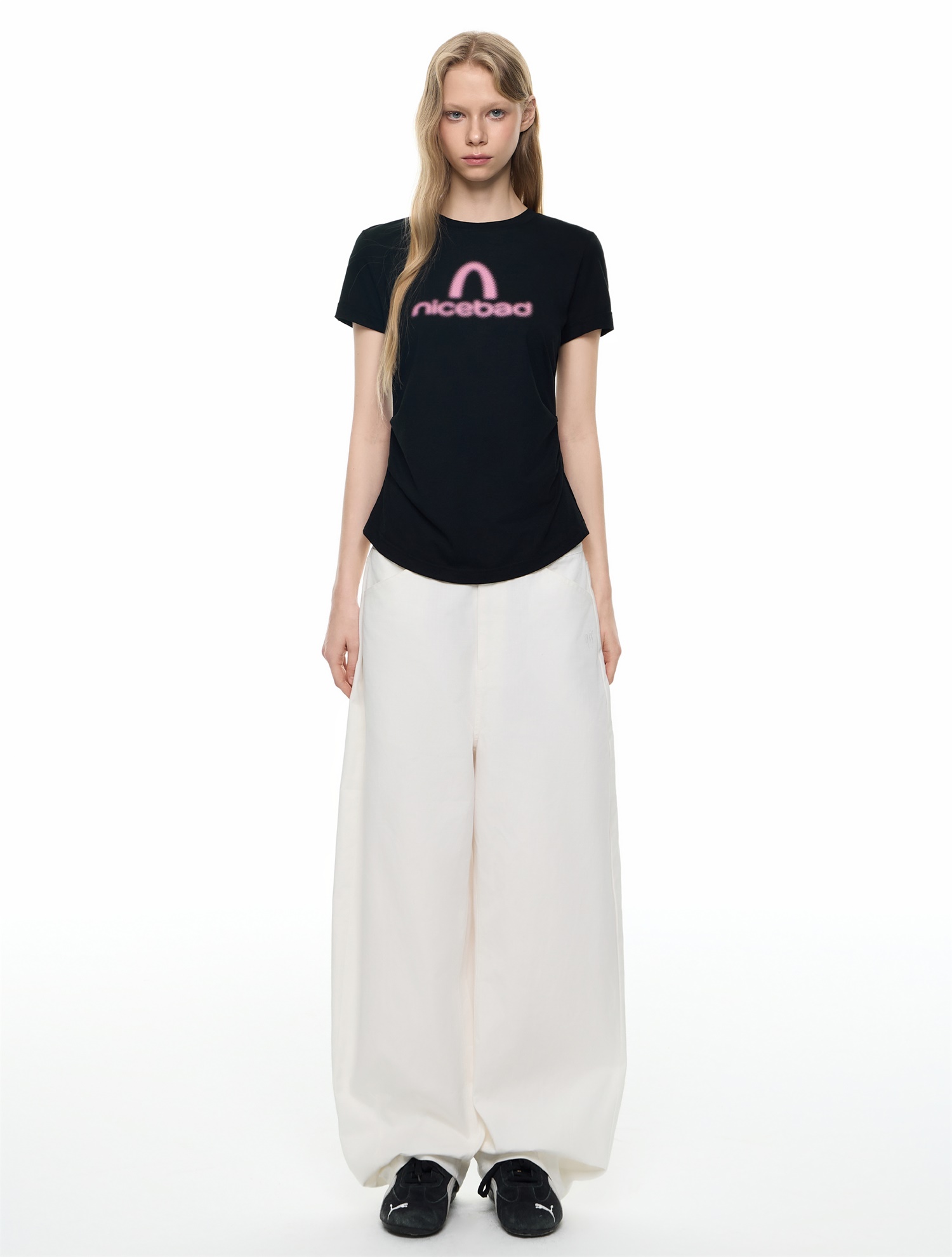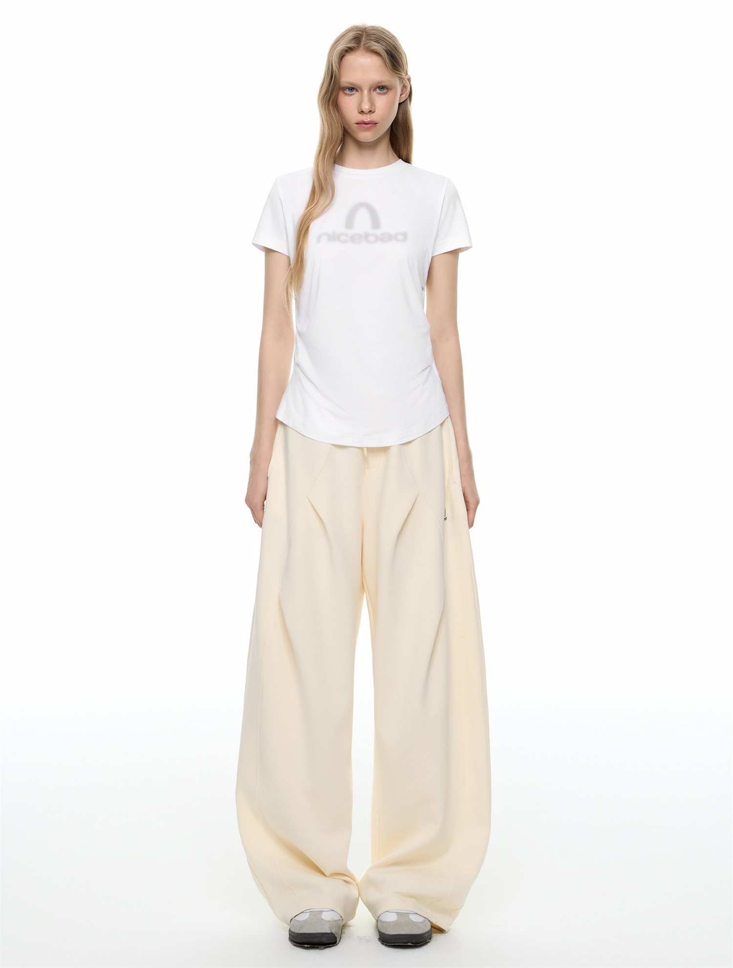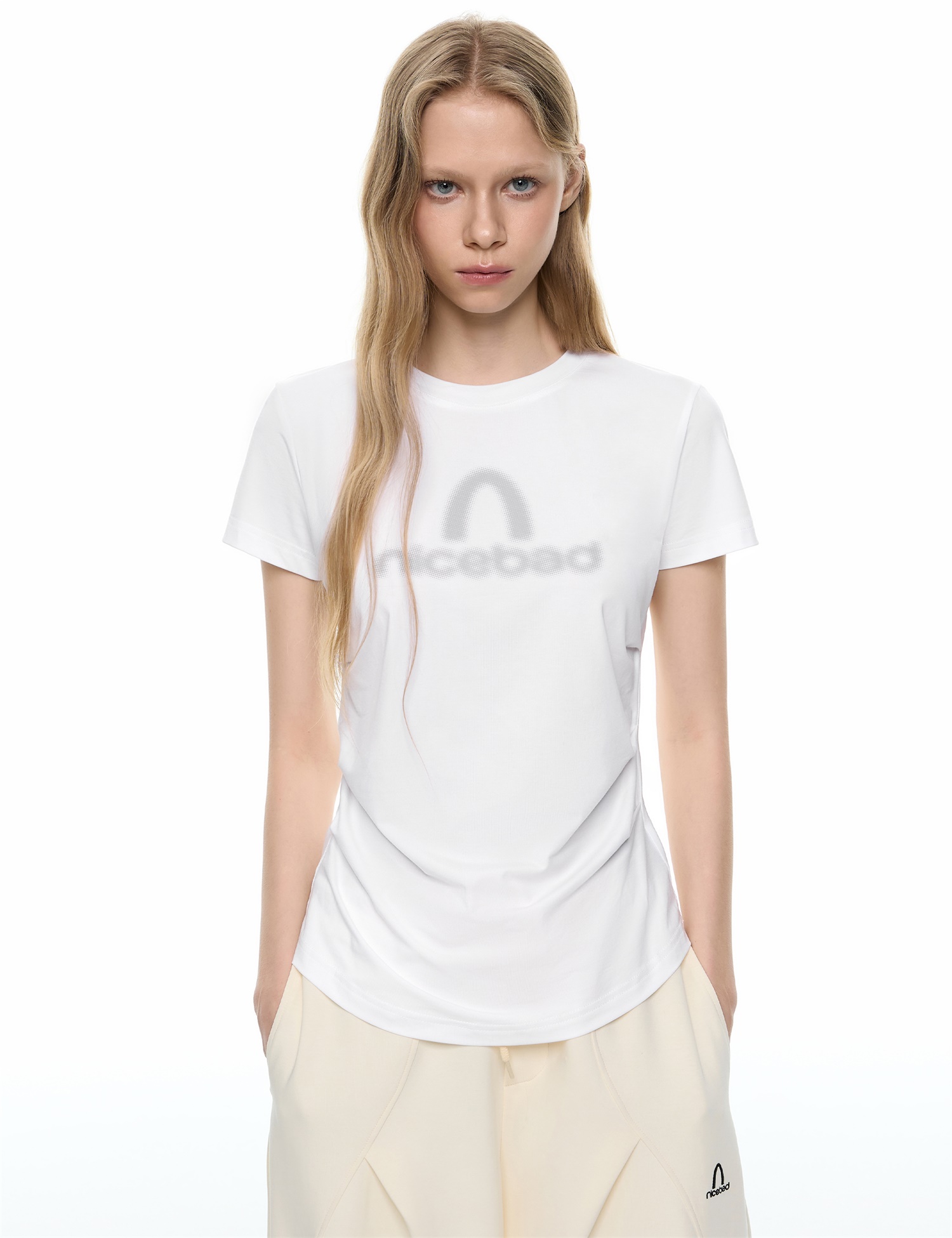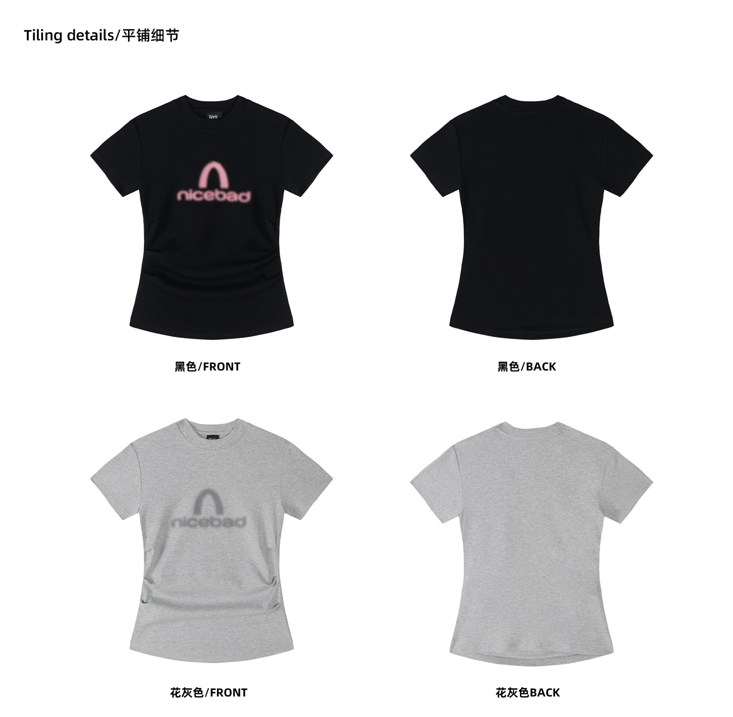 NICEBAD Wrinkle Print Front Shoulder Tight Versatile Tee