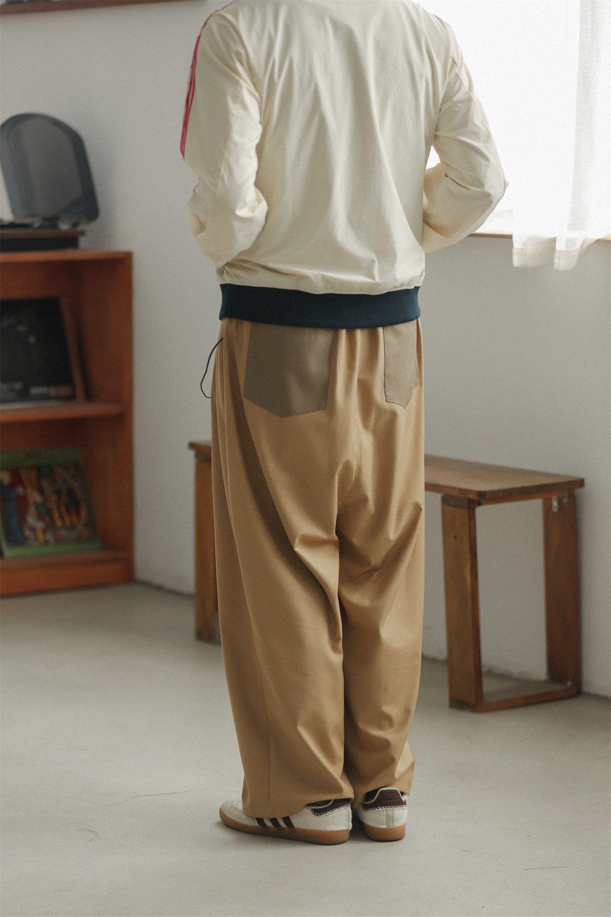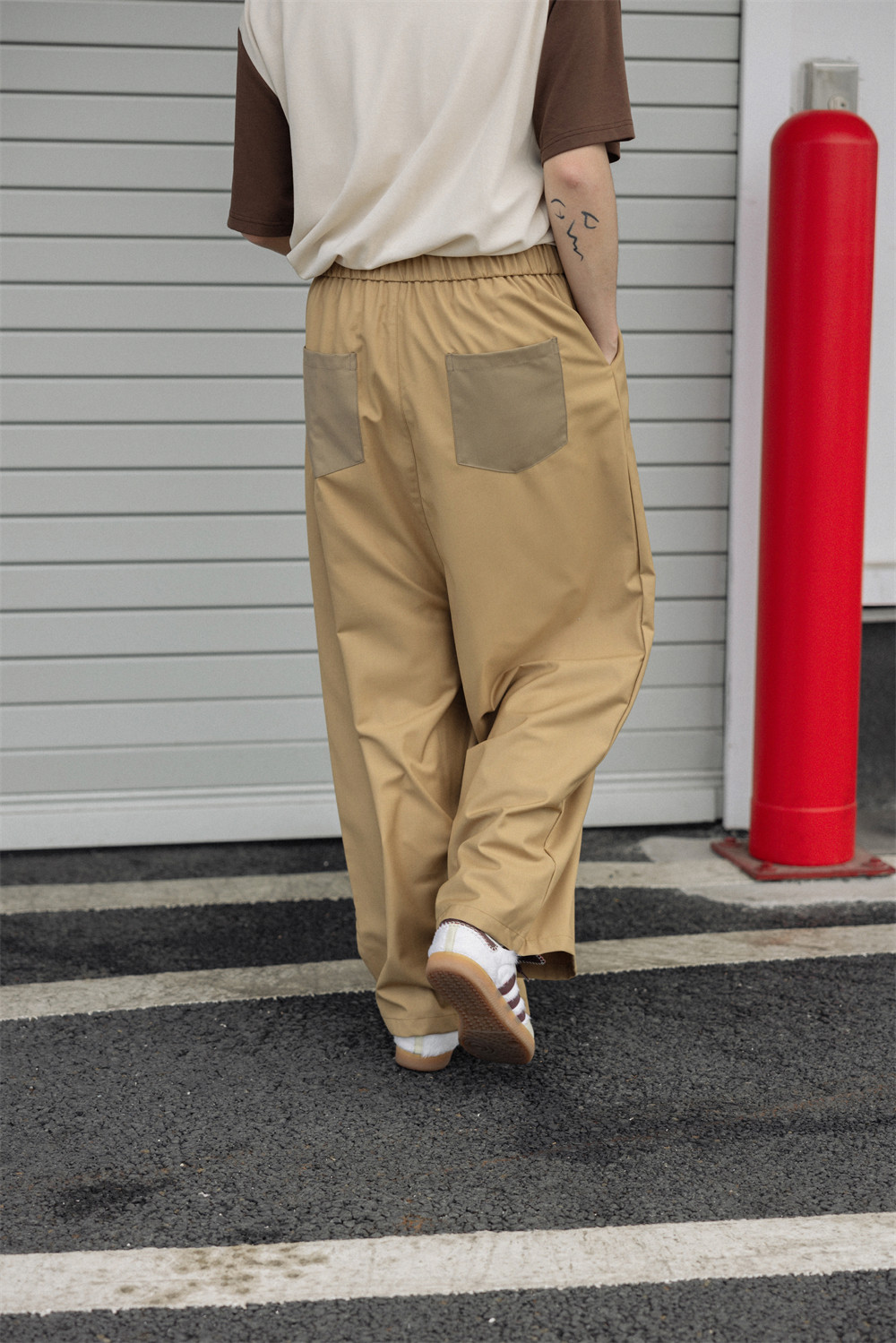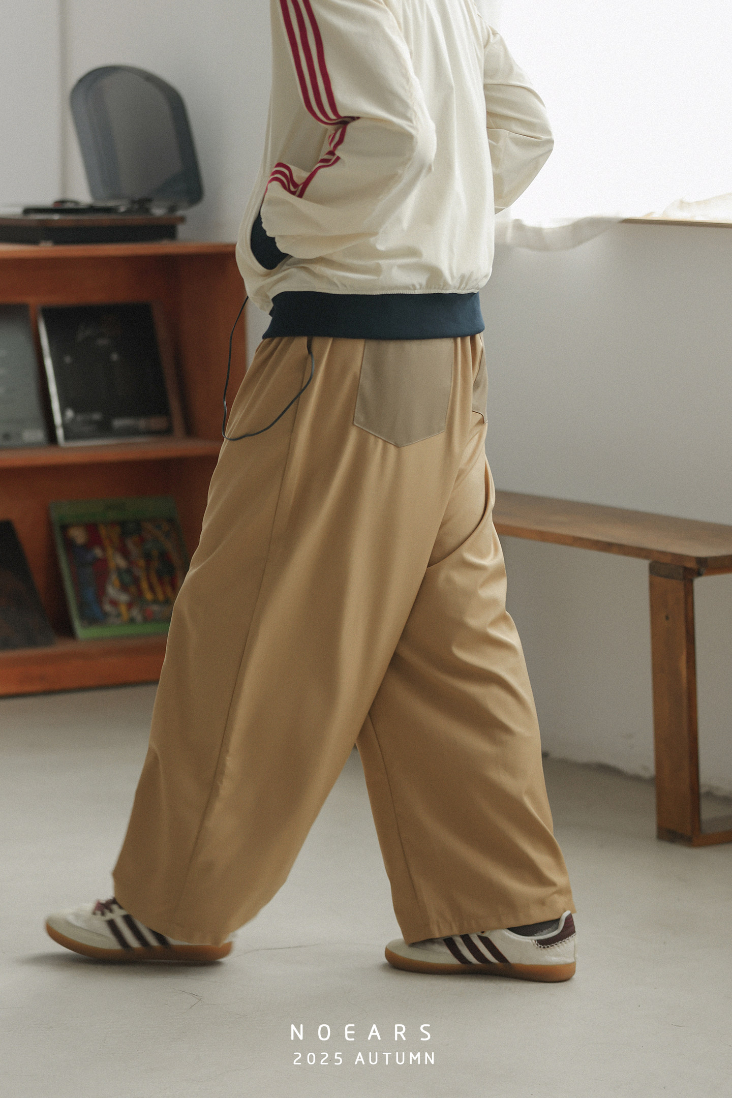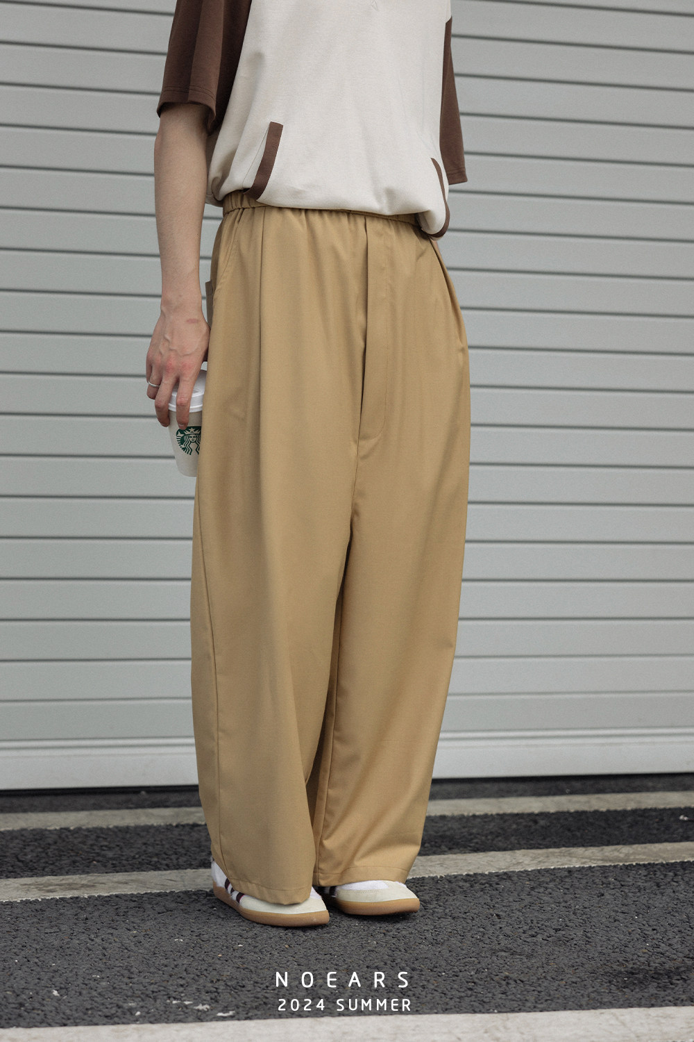 NOEARS Contrasting Stitching Elastic Waist Slacks