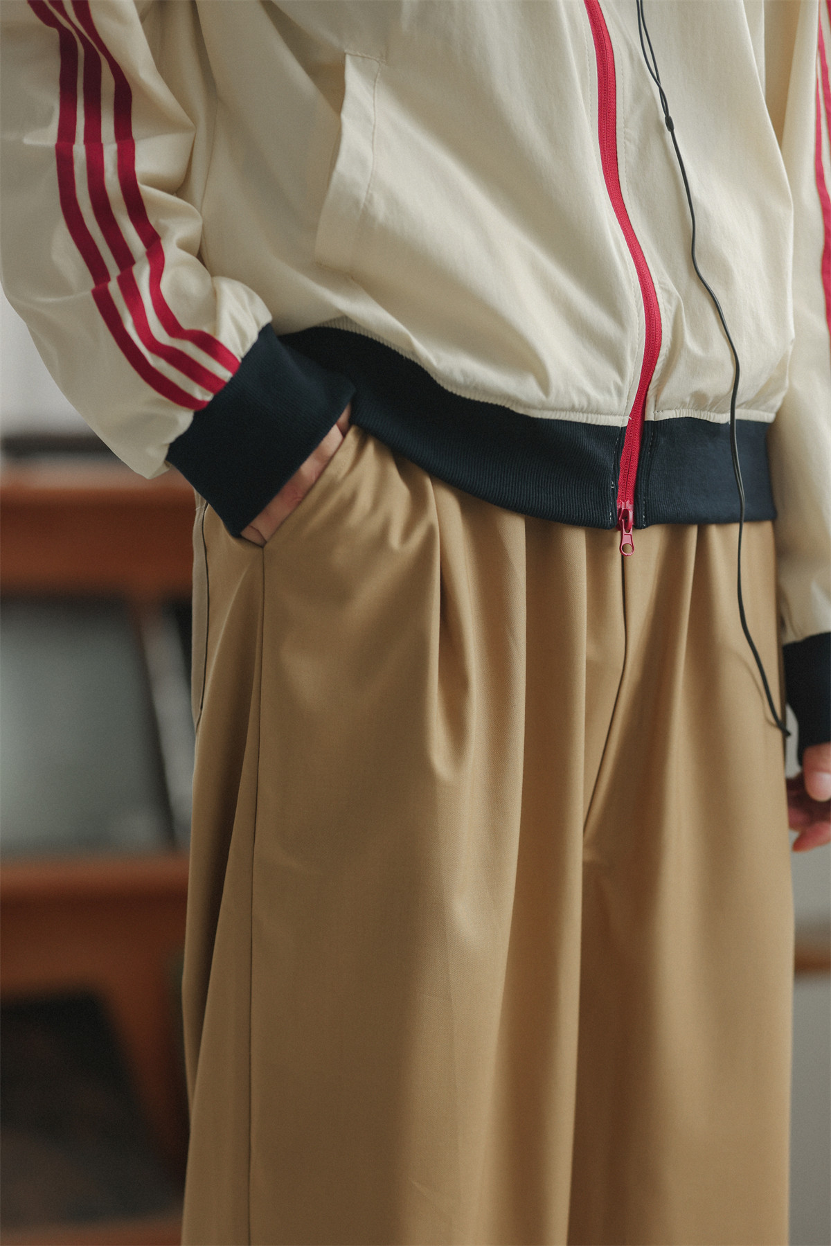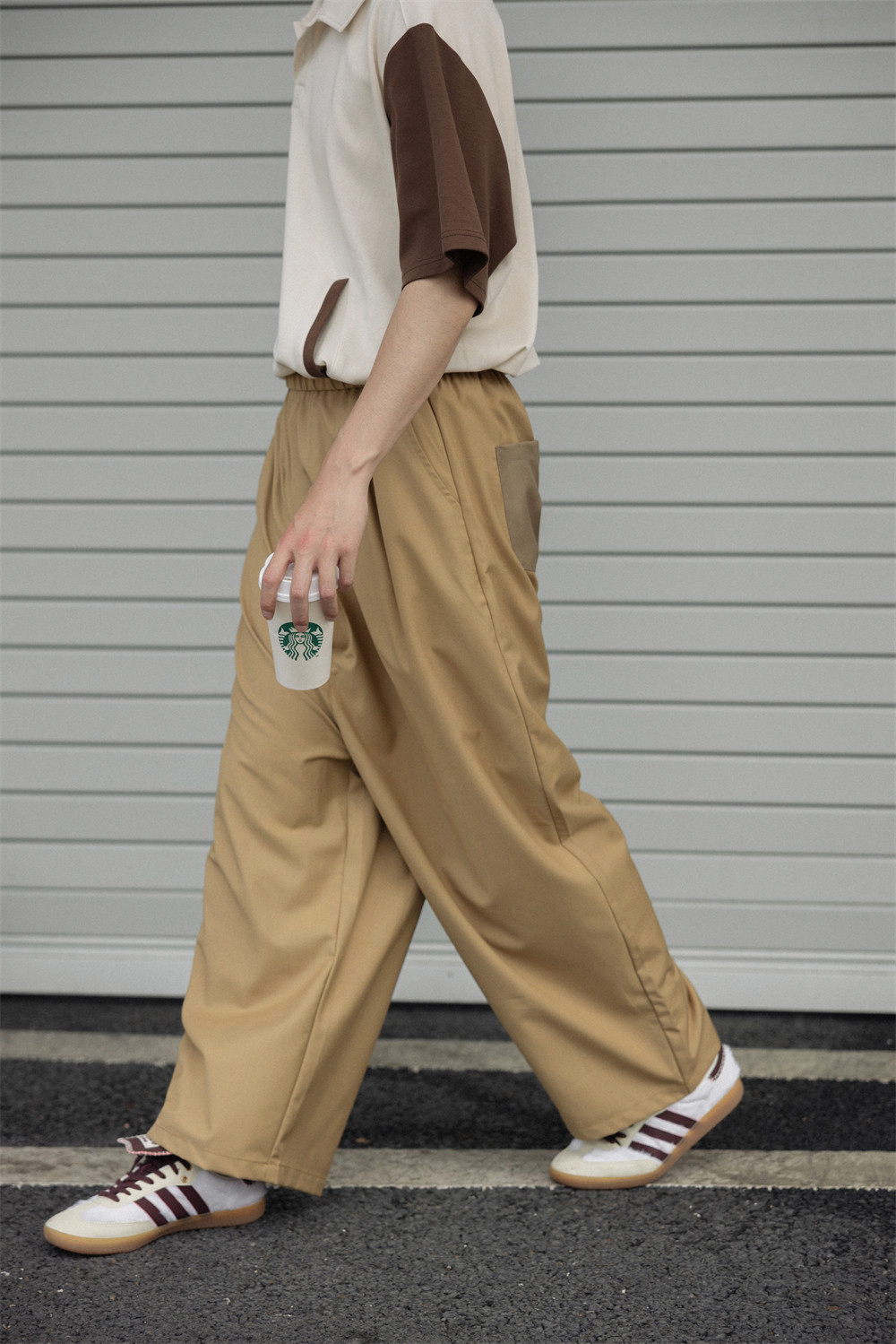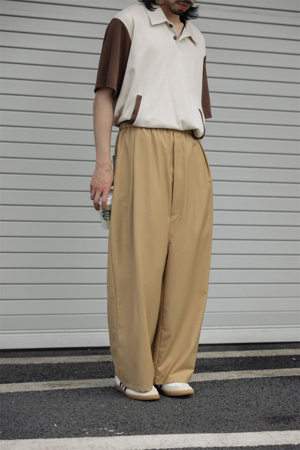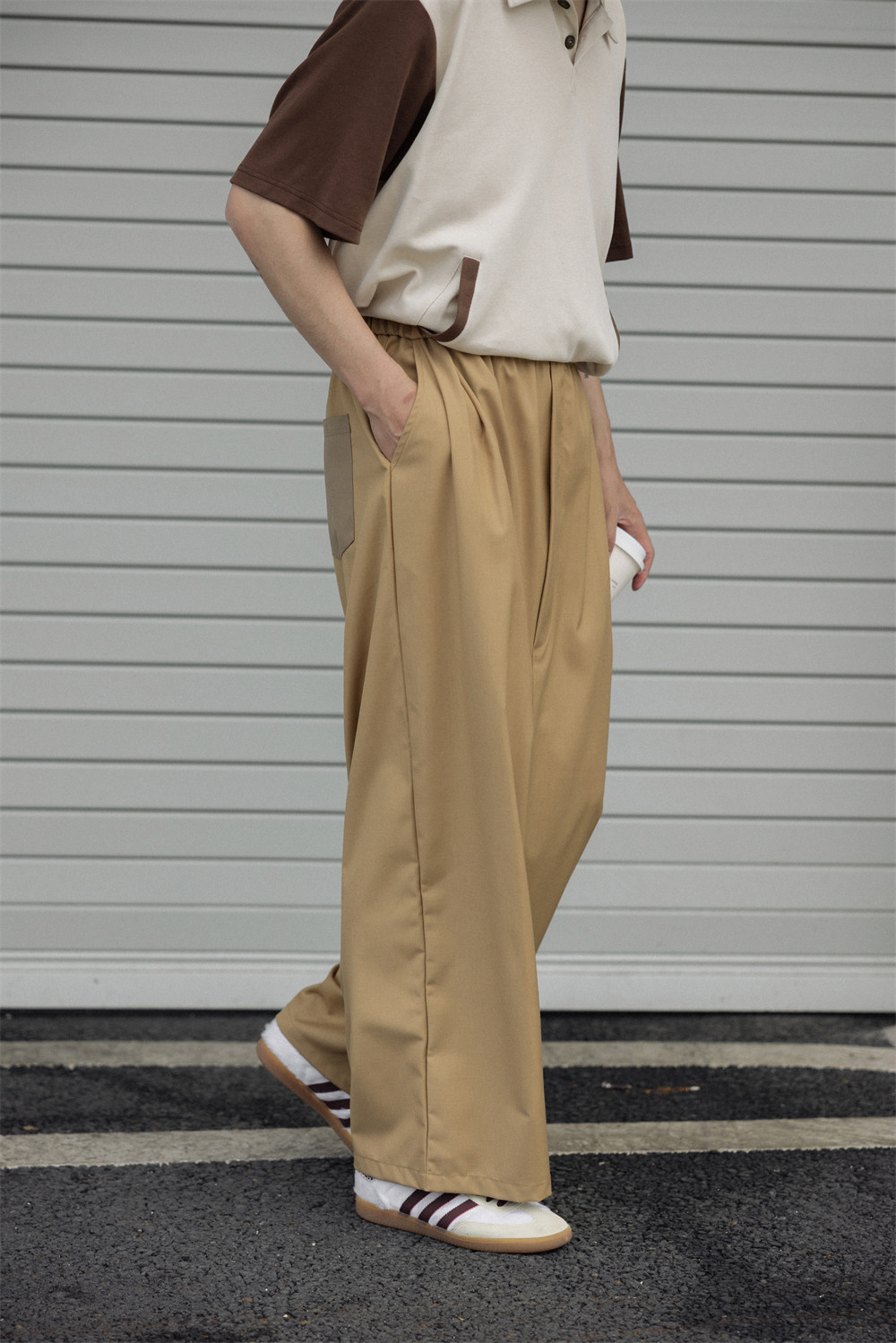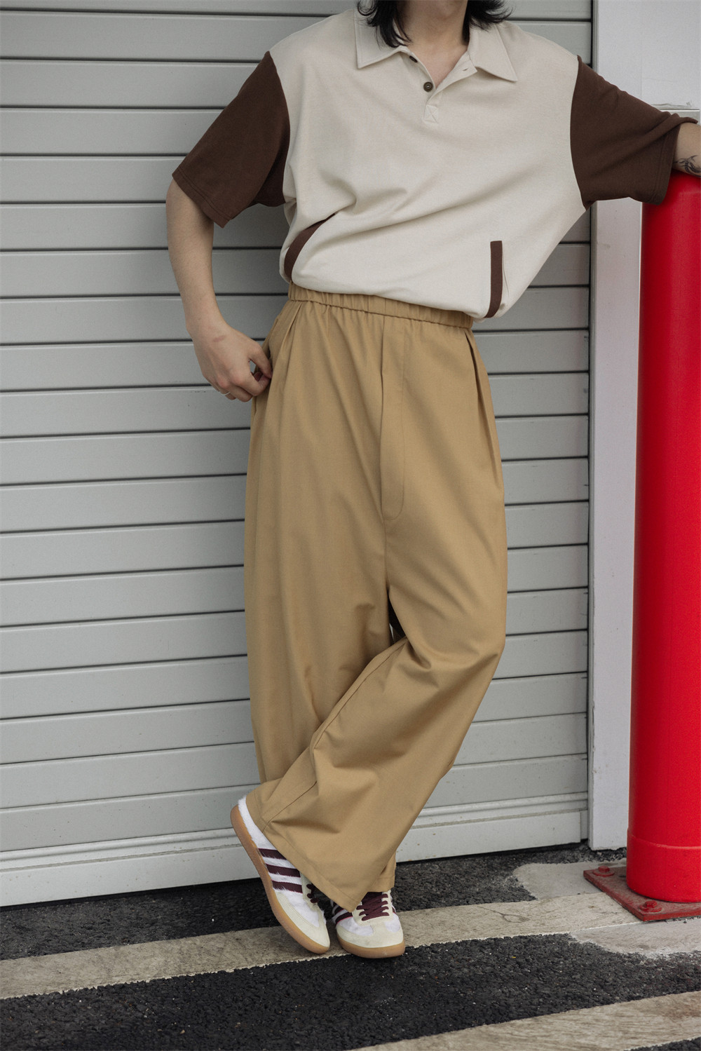 NOEARS Contrasting Stitching Elastic Waist Slacks