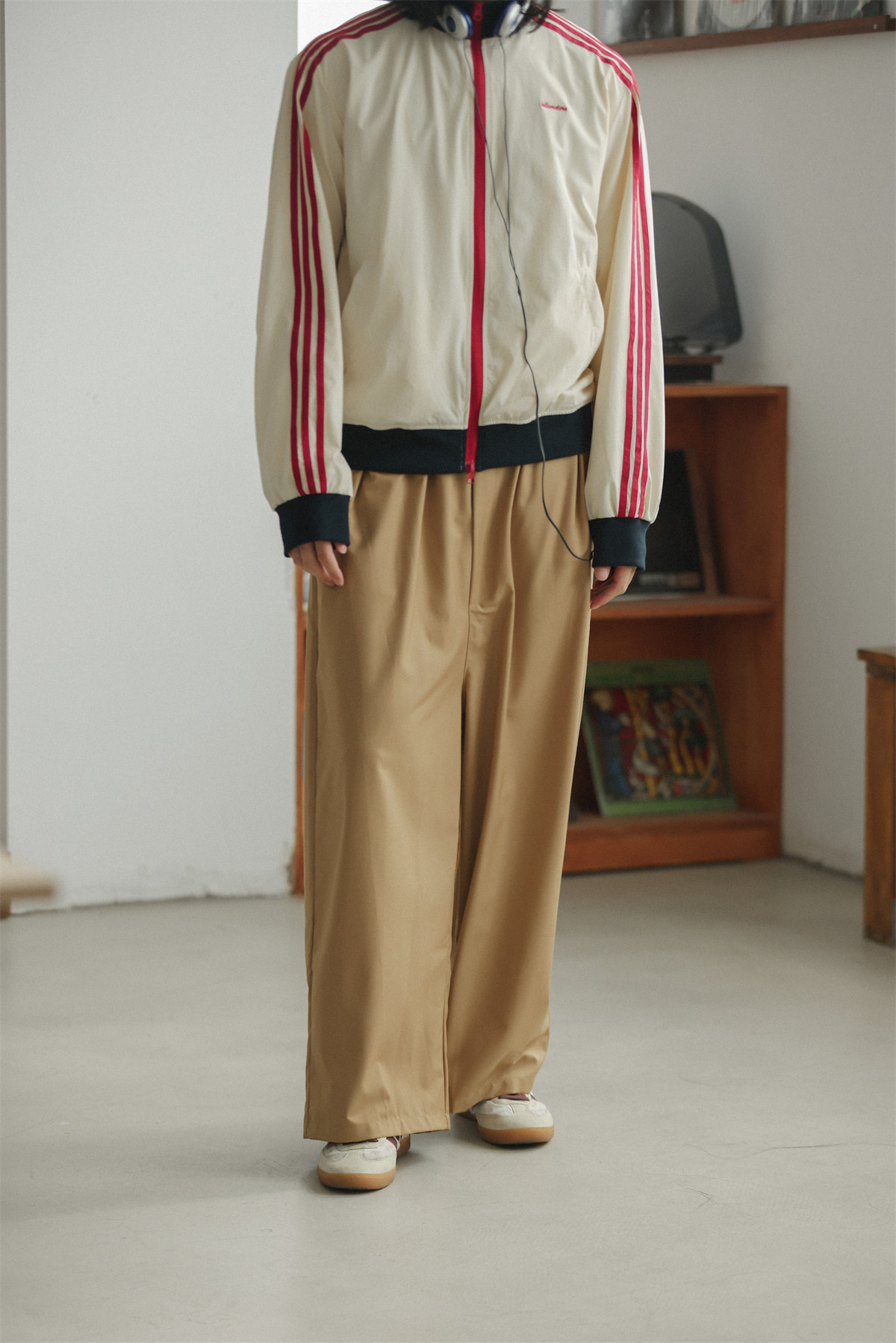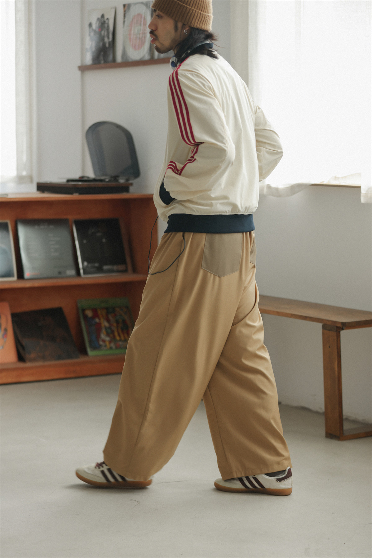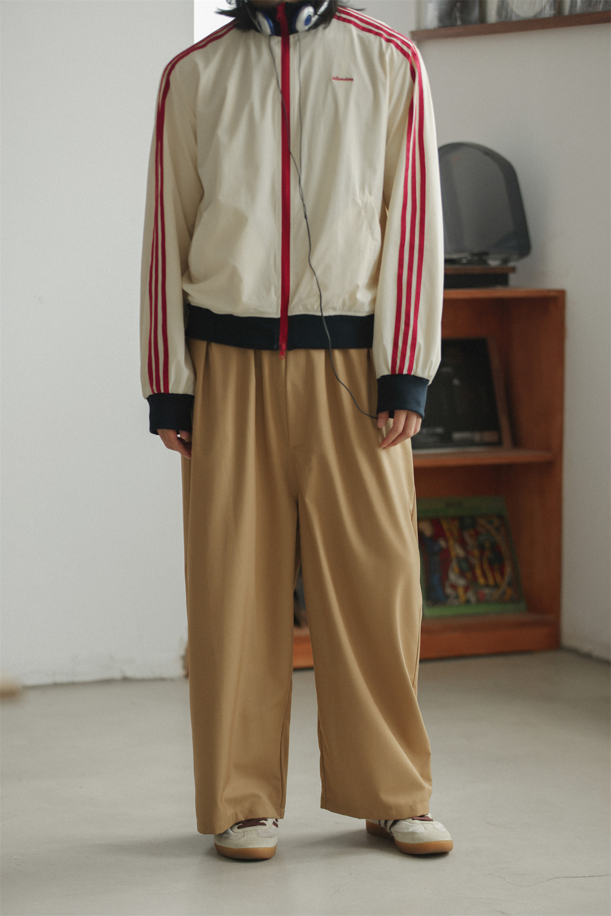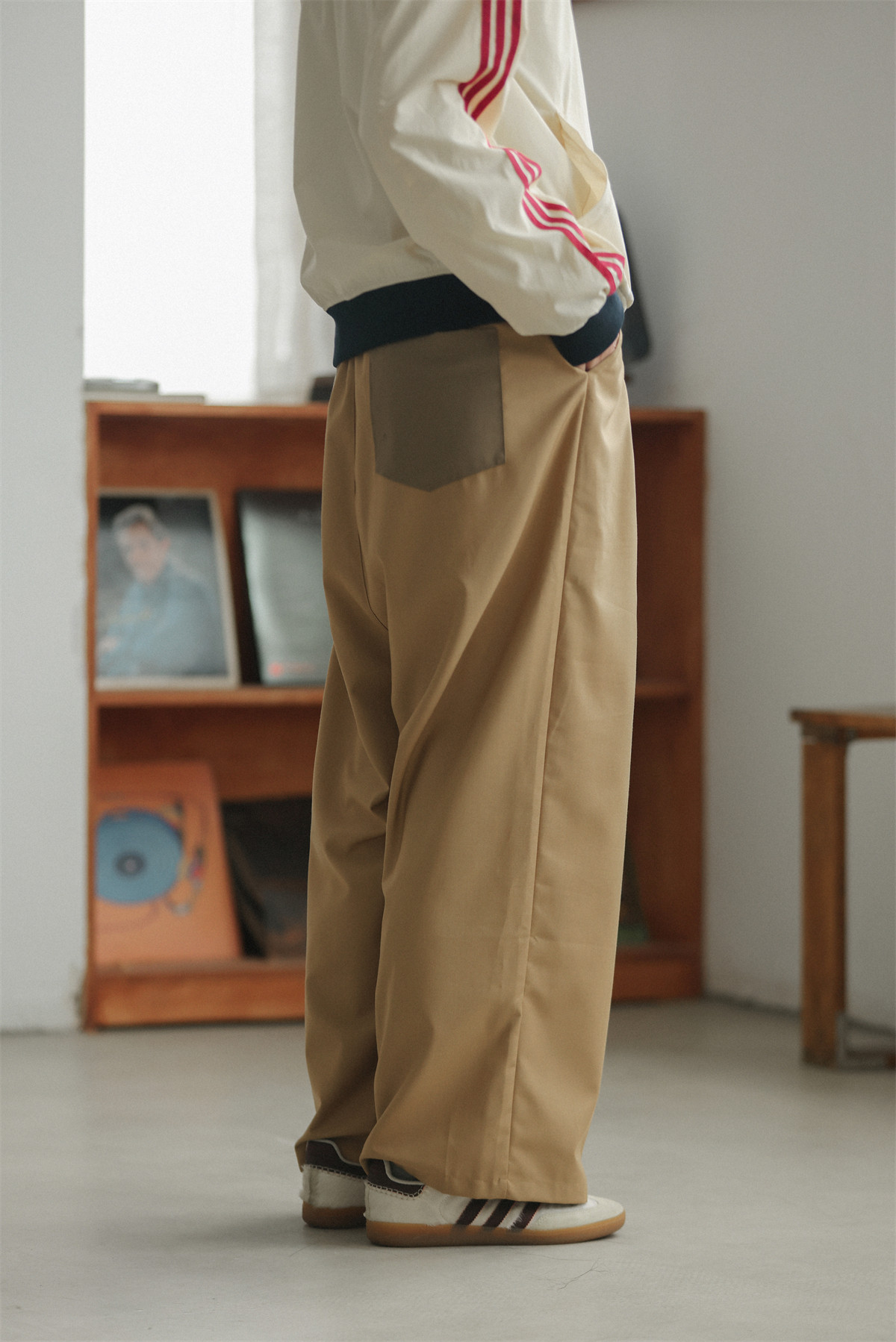 NOEARS Contrasting Stitching Elastic Waist Slacks