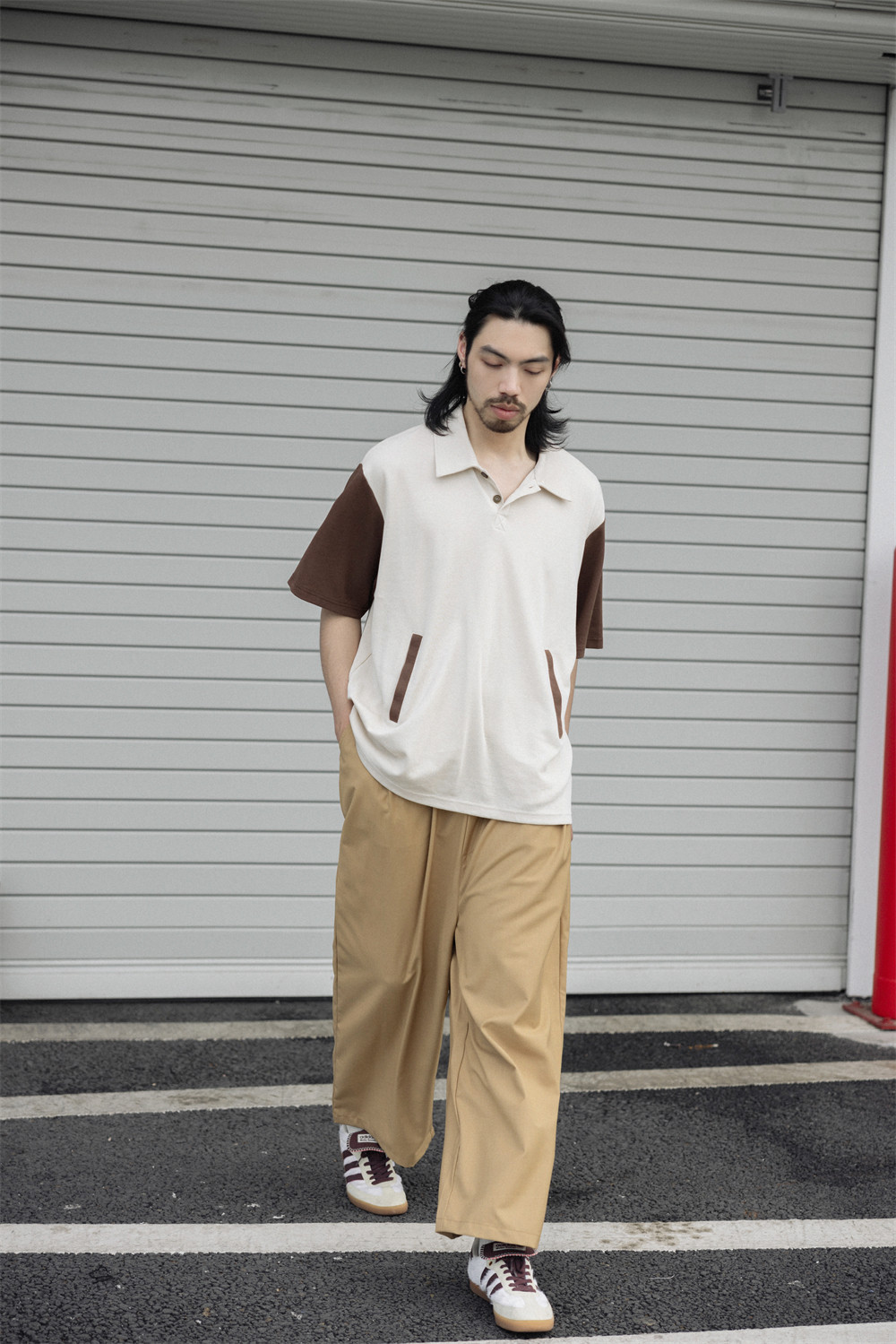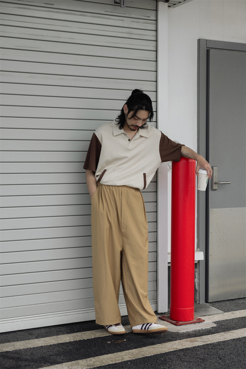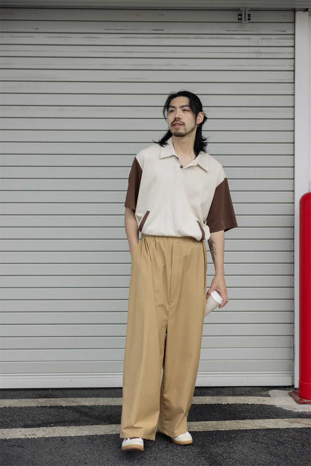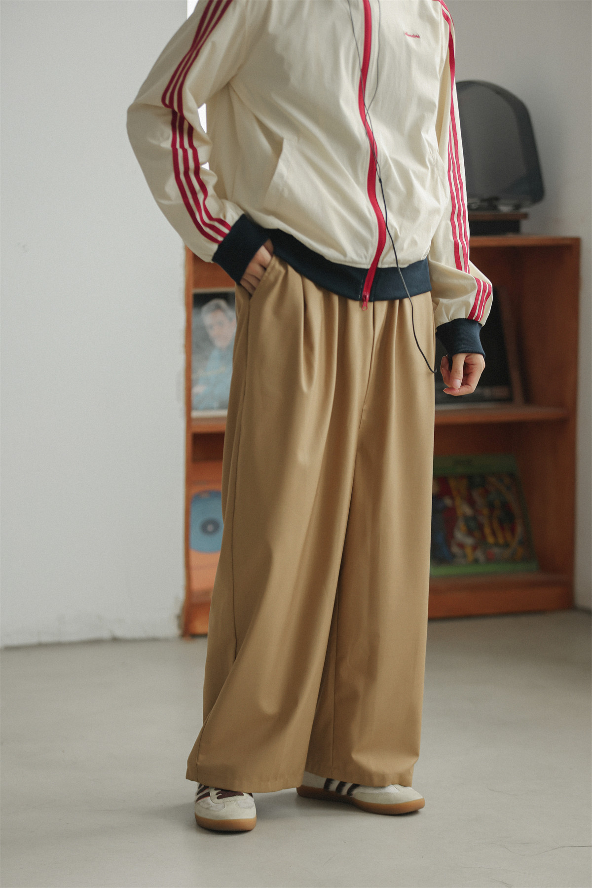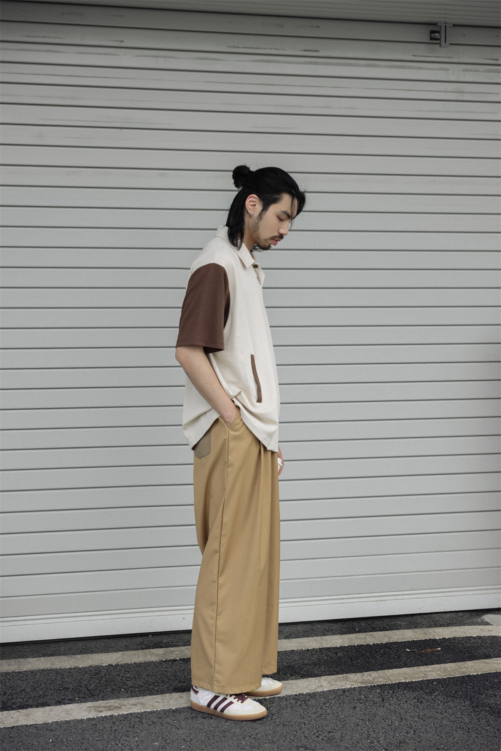 NOEARS Contrasting Stitching Elastic Waist Slacks