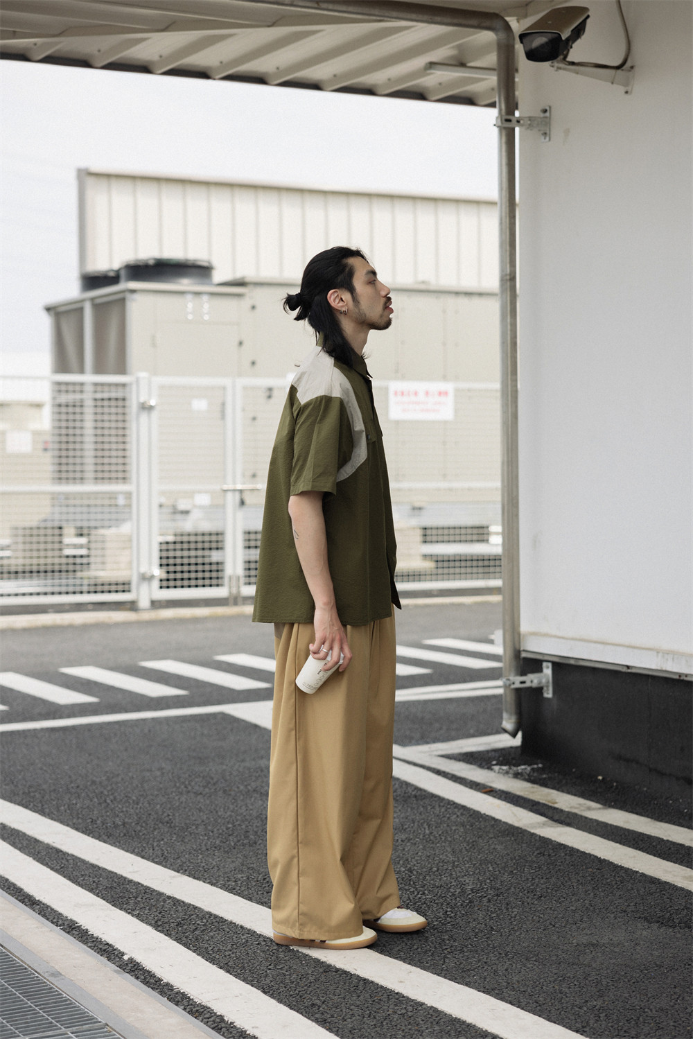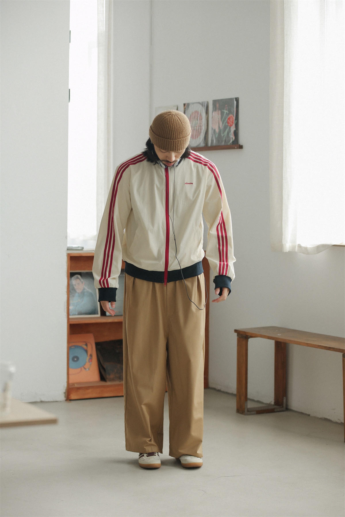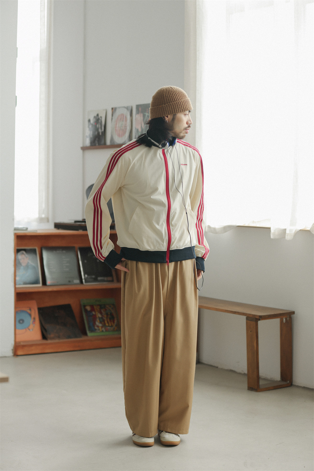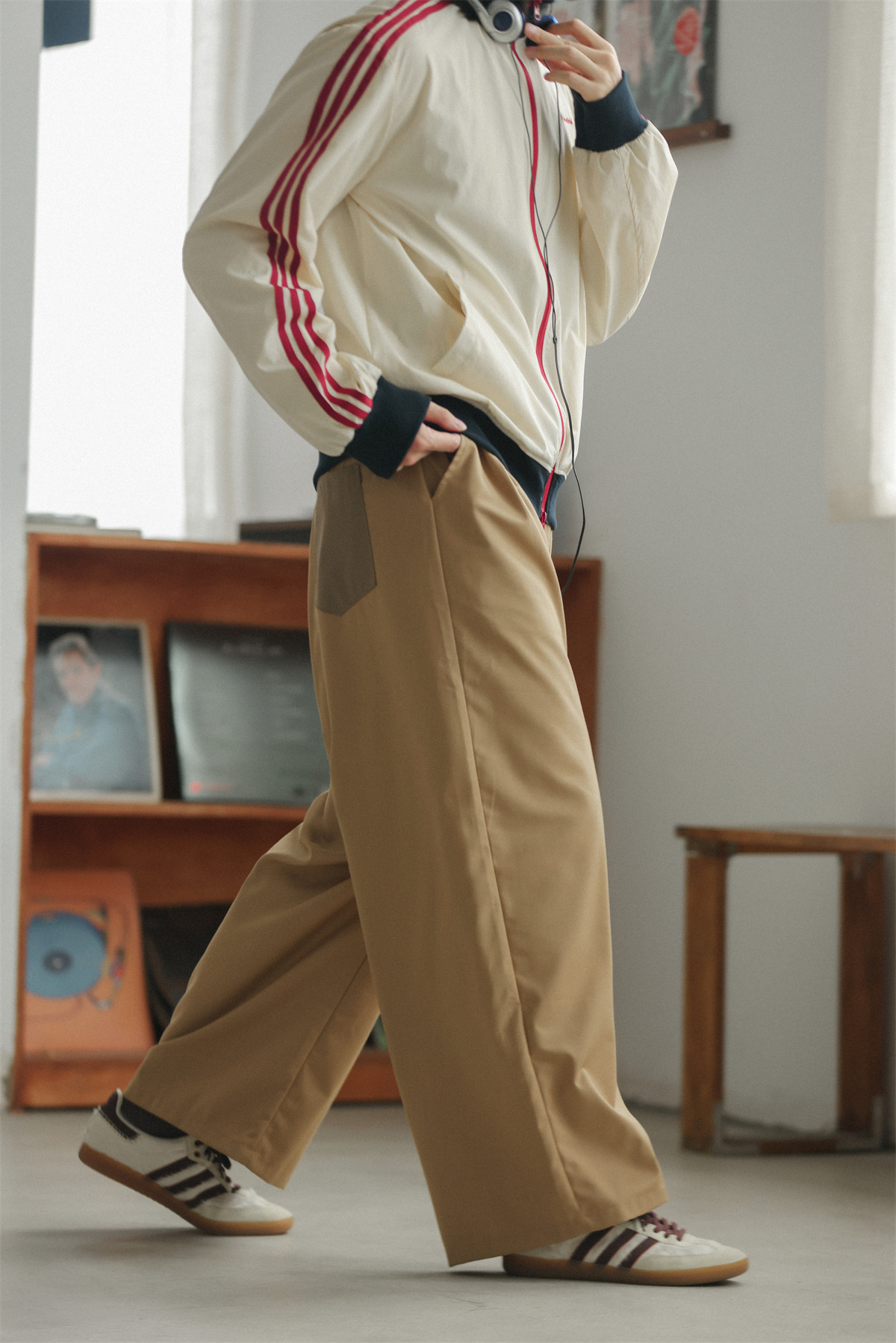 NOEARS Contrasting Stitching Elastic Waist Slacks