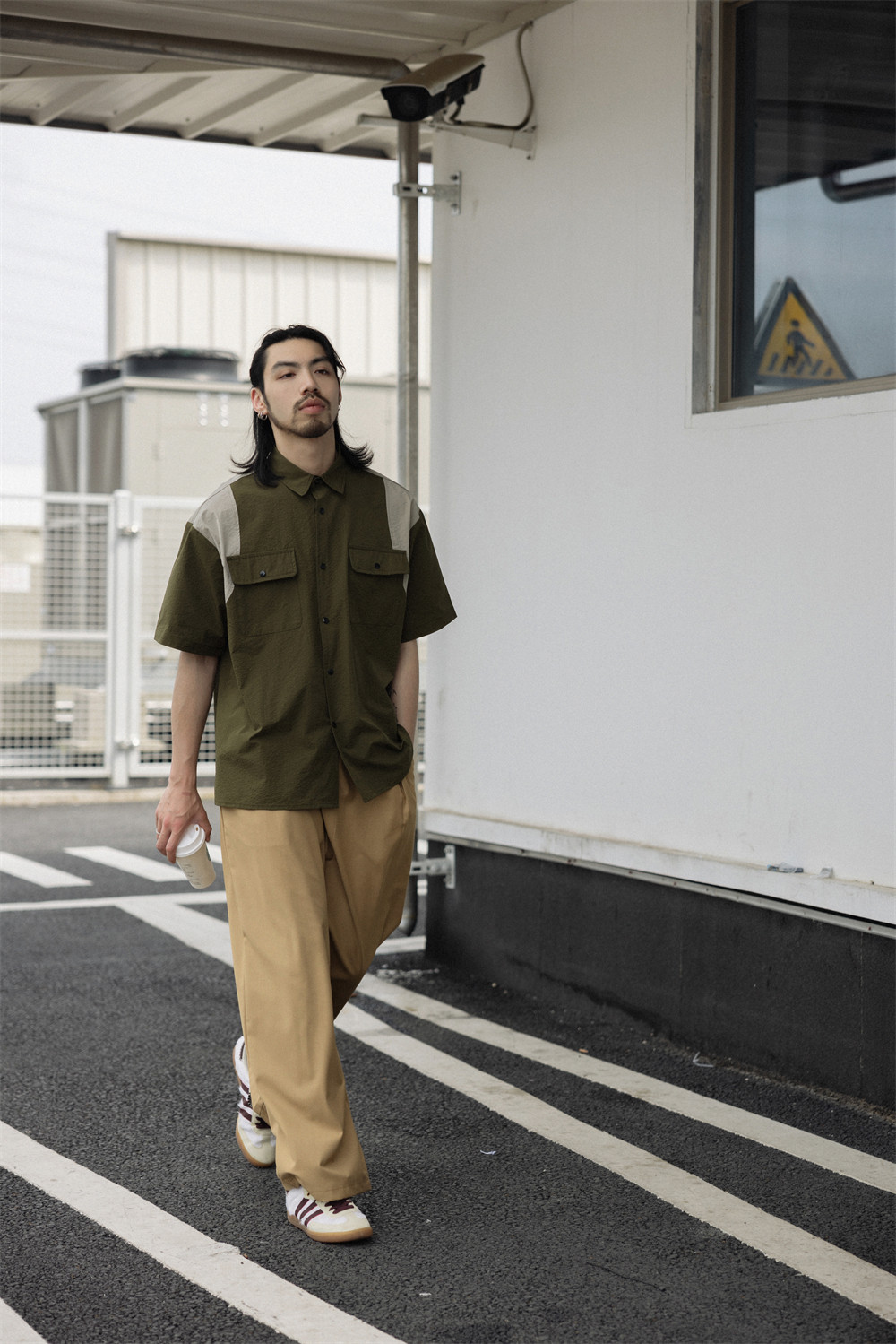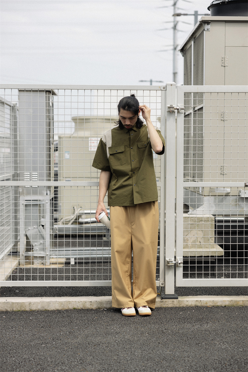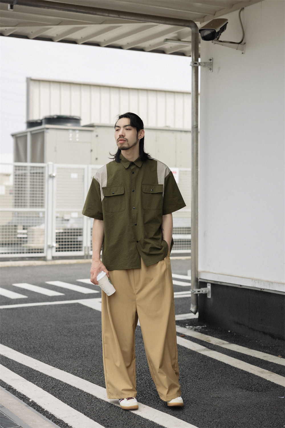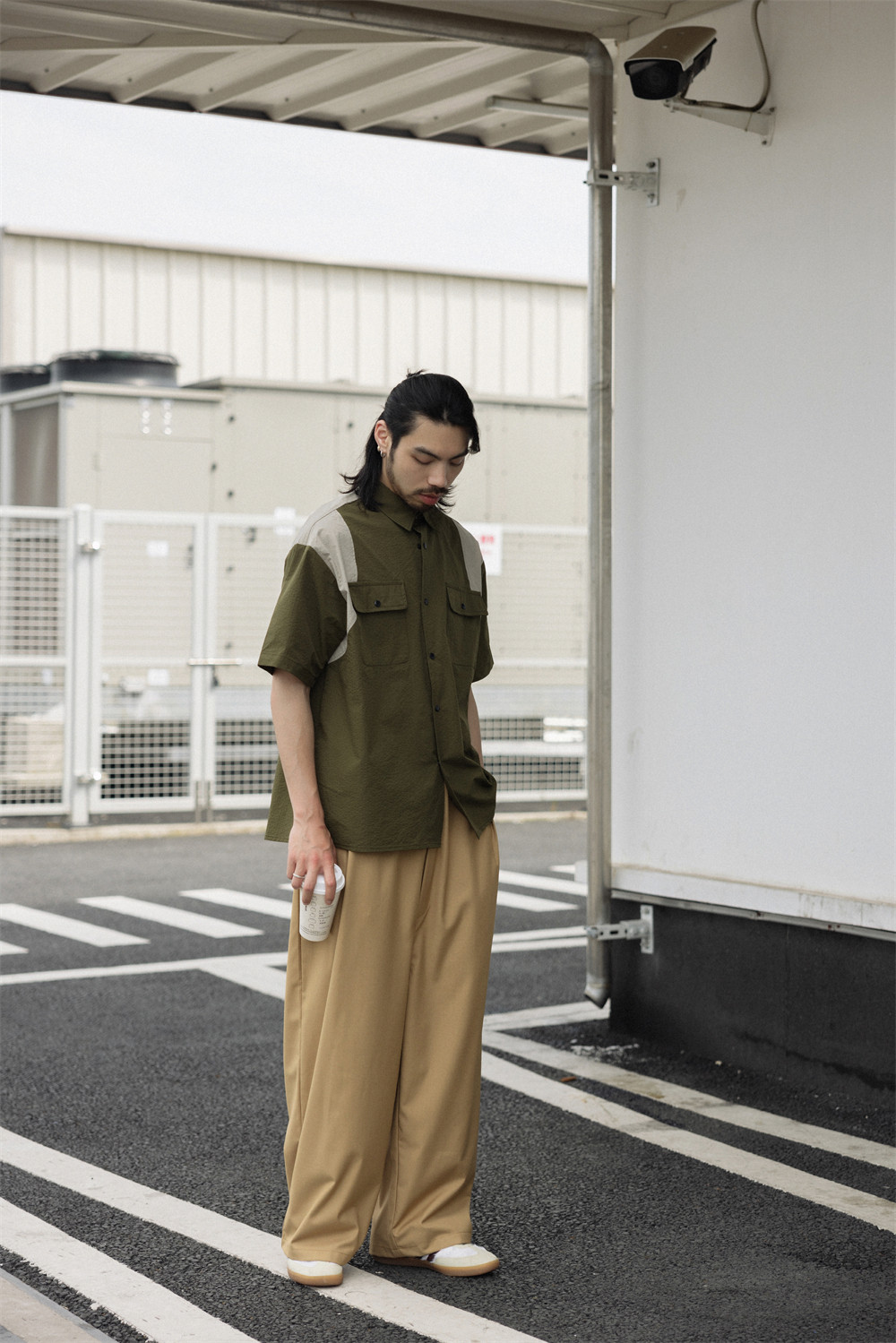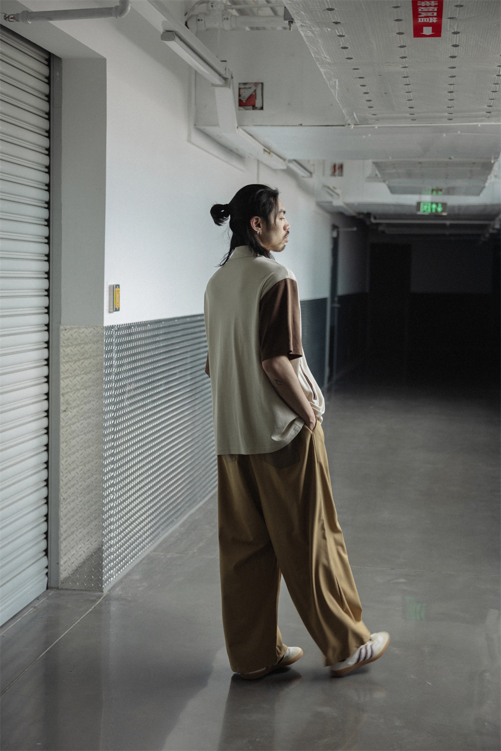 NOEARS Contrasting Stitching Elastic Waist Slacks