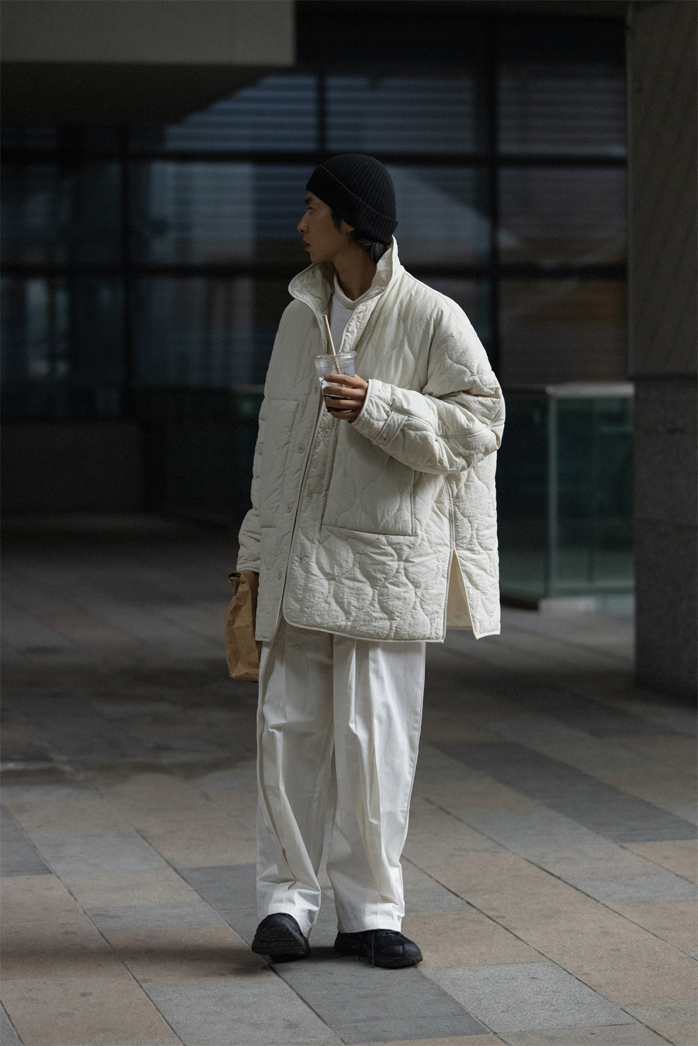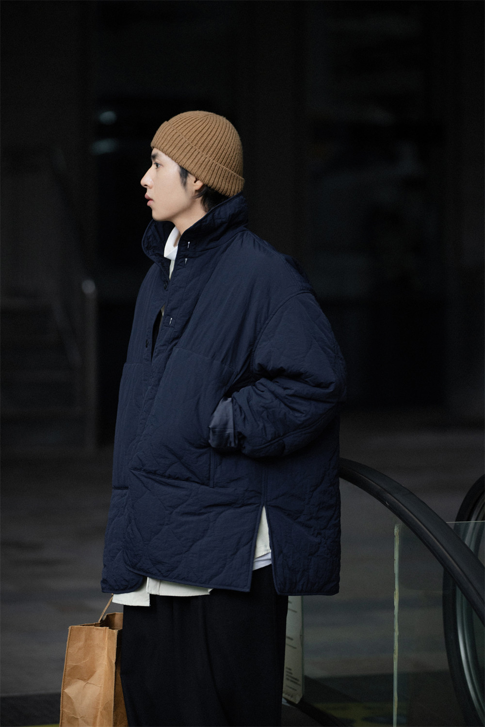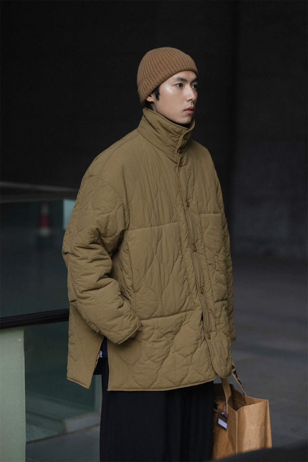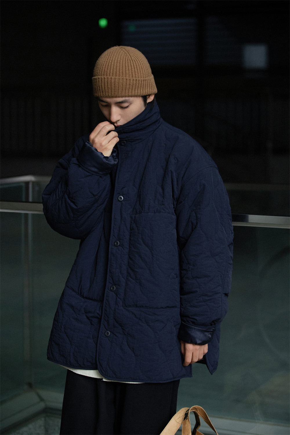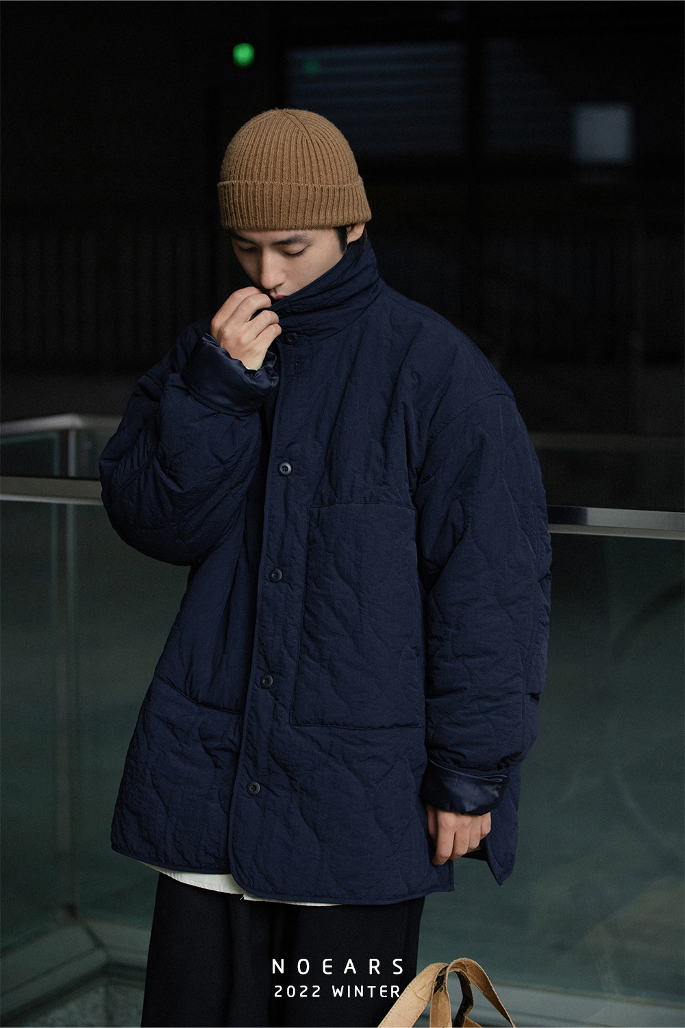 NOEARS Stand Neck Side Split Oversized Cotton Clothes