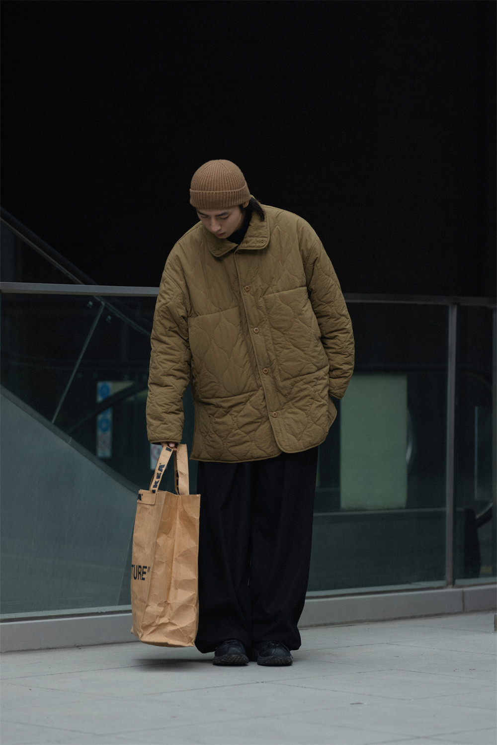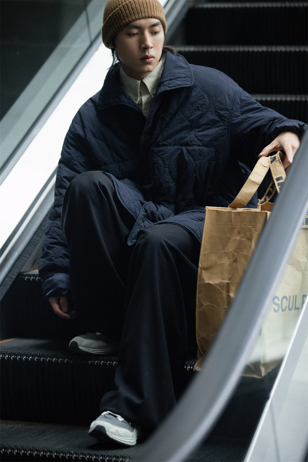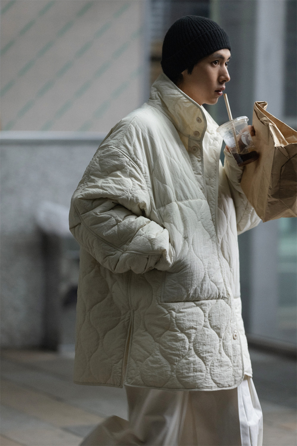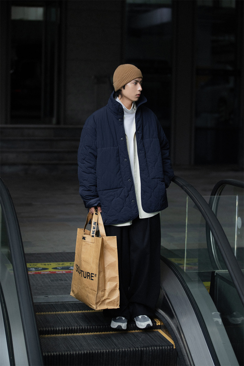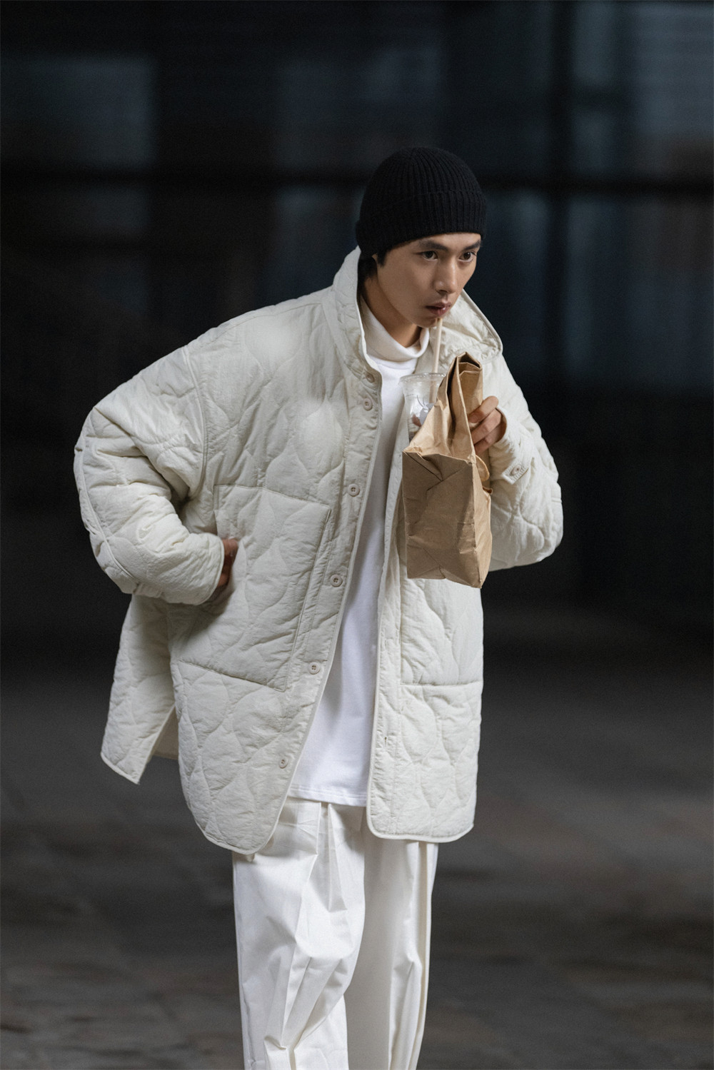 NOEARS Stand Neck Side Split Oversized Cotton Clothes
