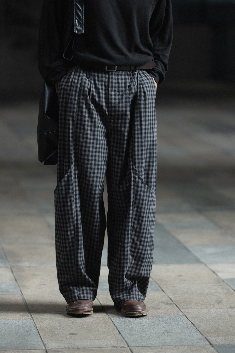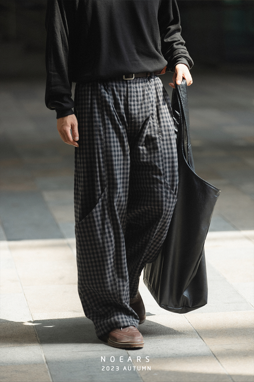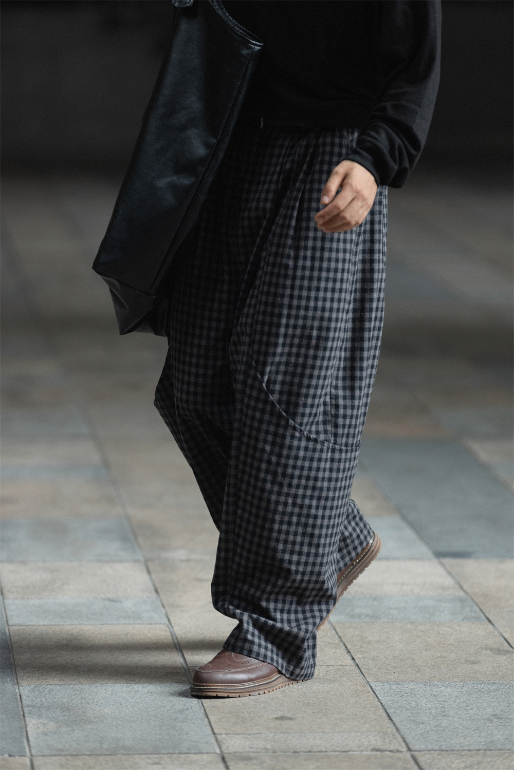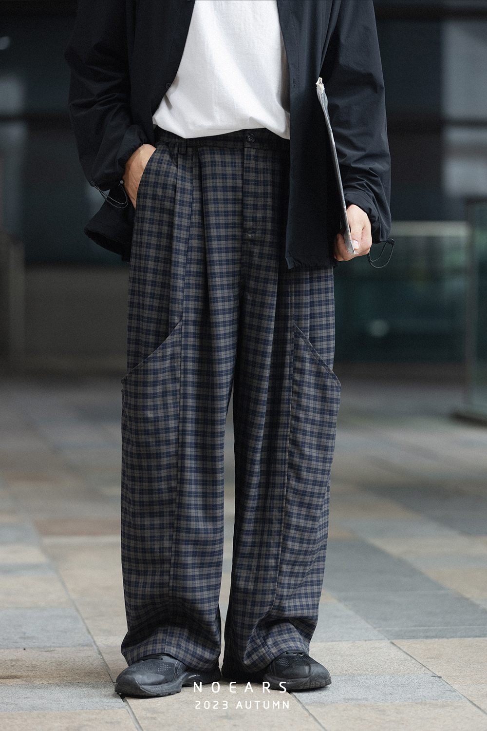 NOEARS Vintage Plaid Casual Wide-Leg Pants