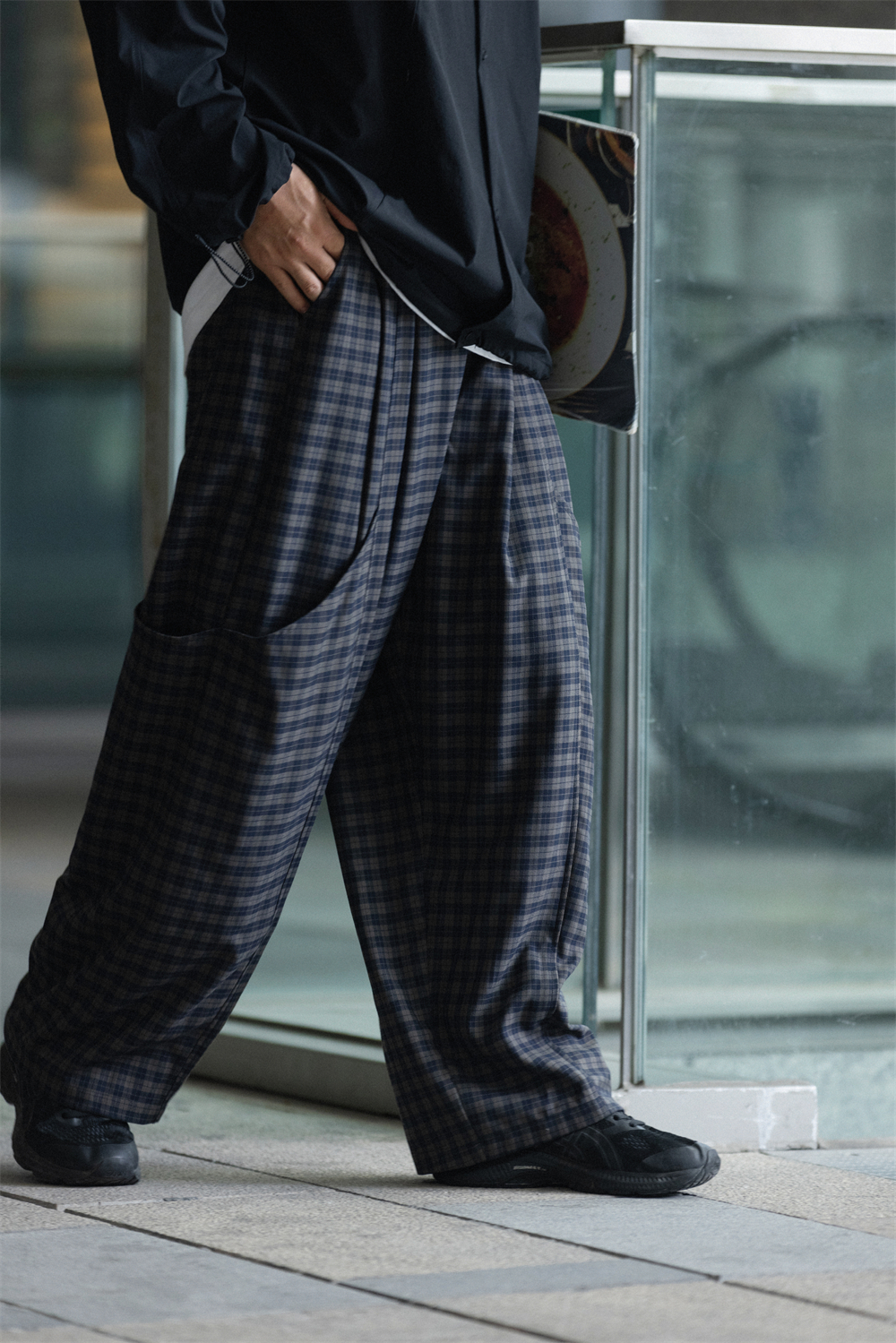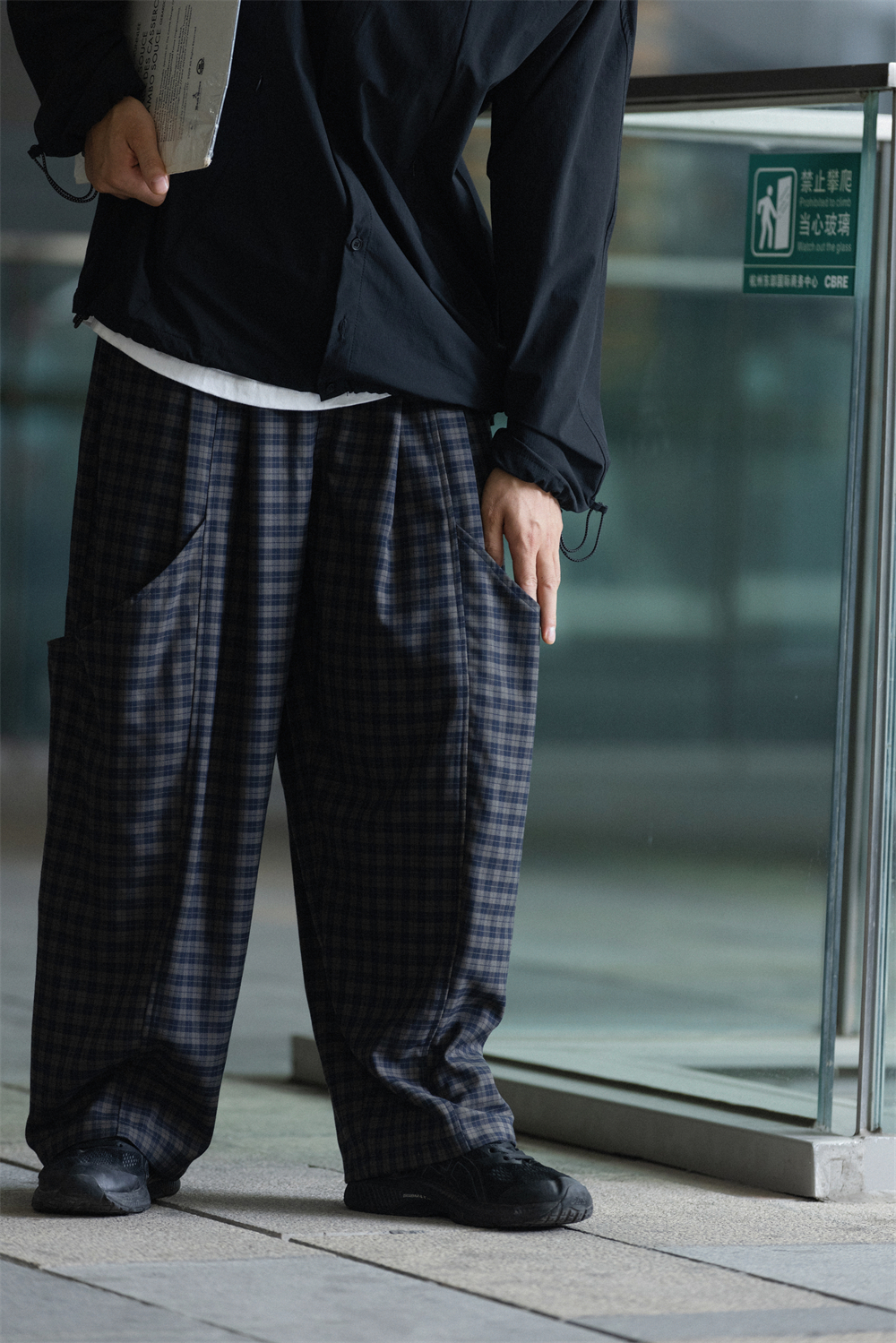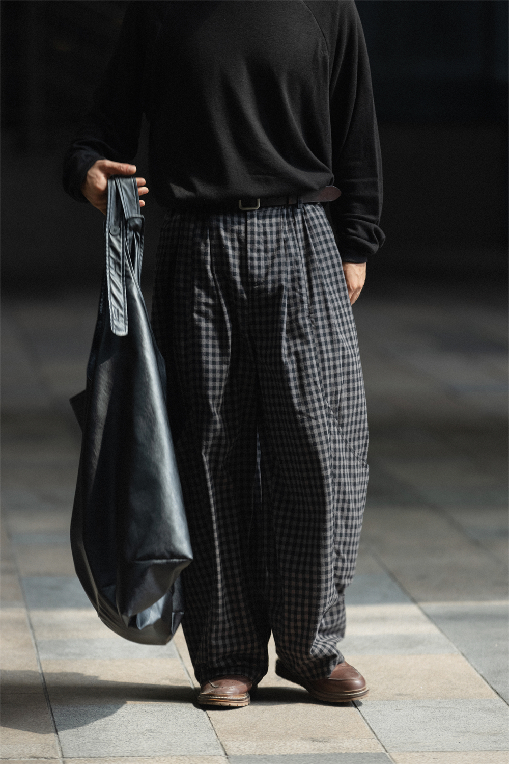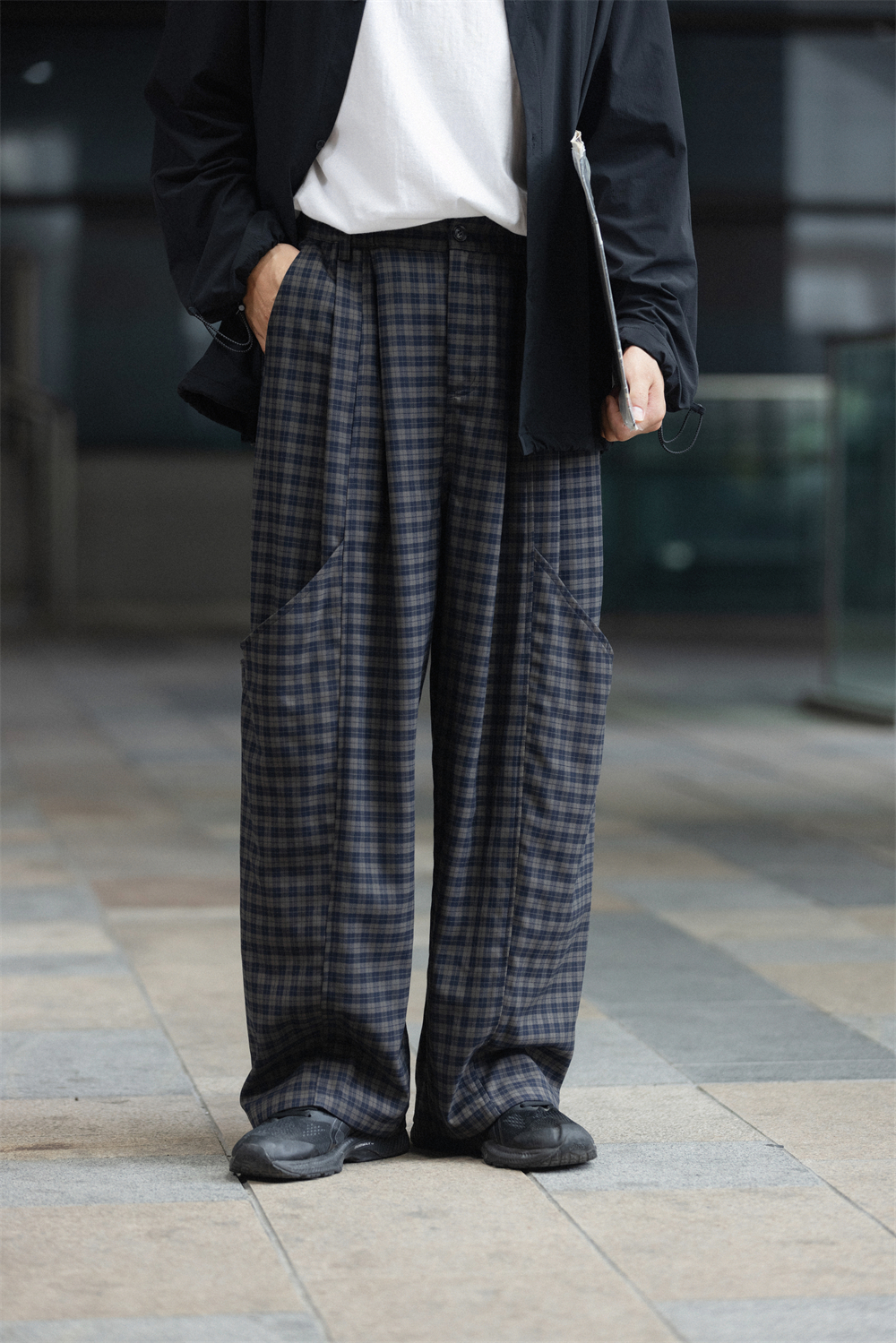 NOEARS Vintage Plaid Casual Wide-Leg Pants
