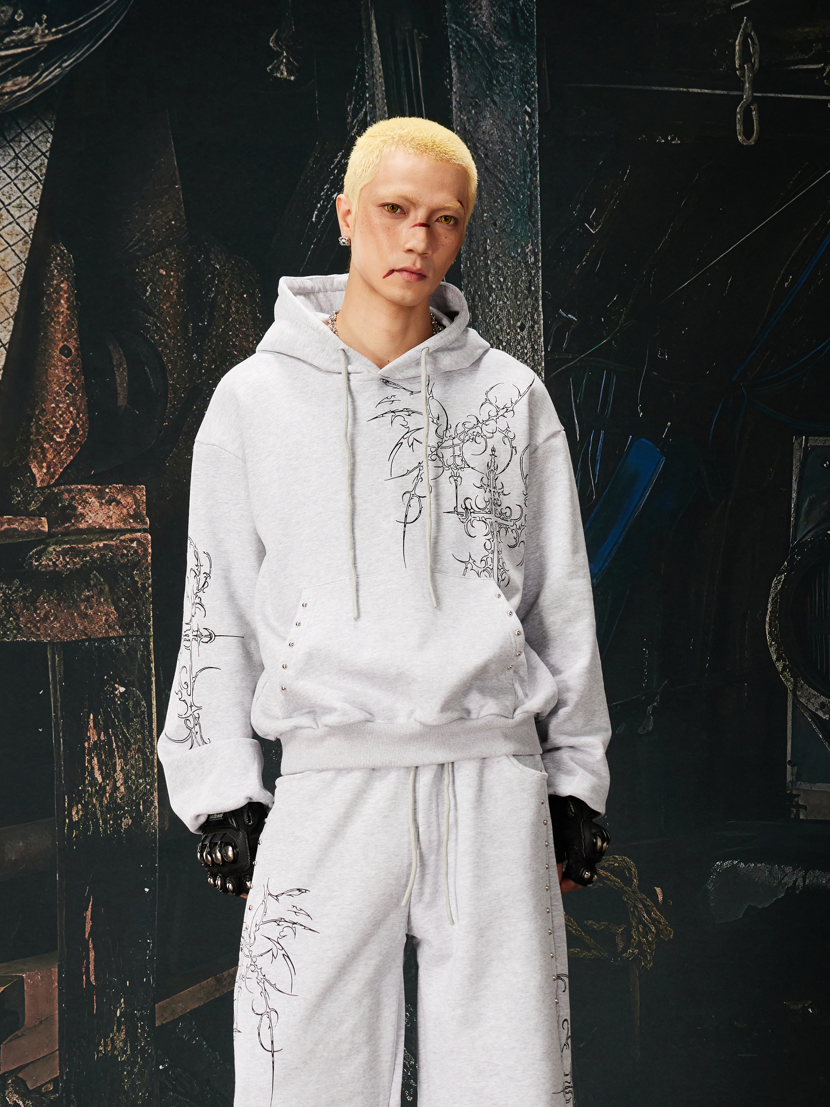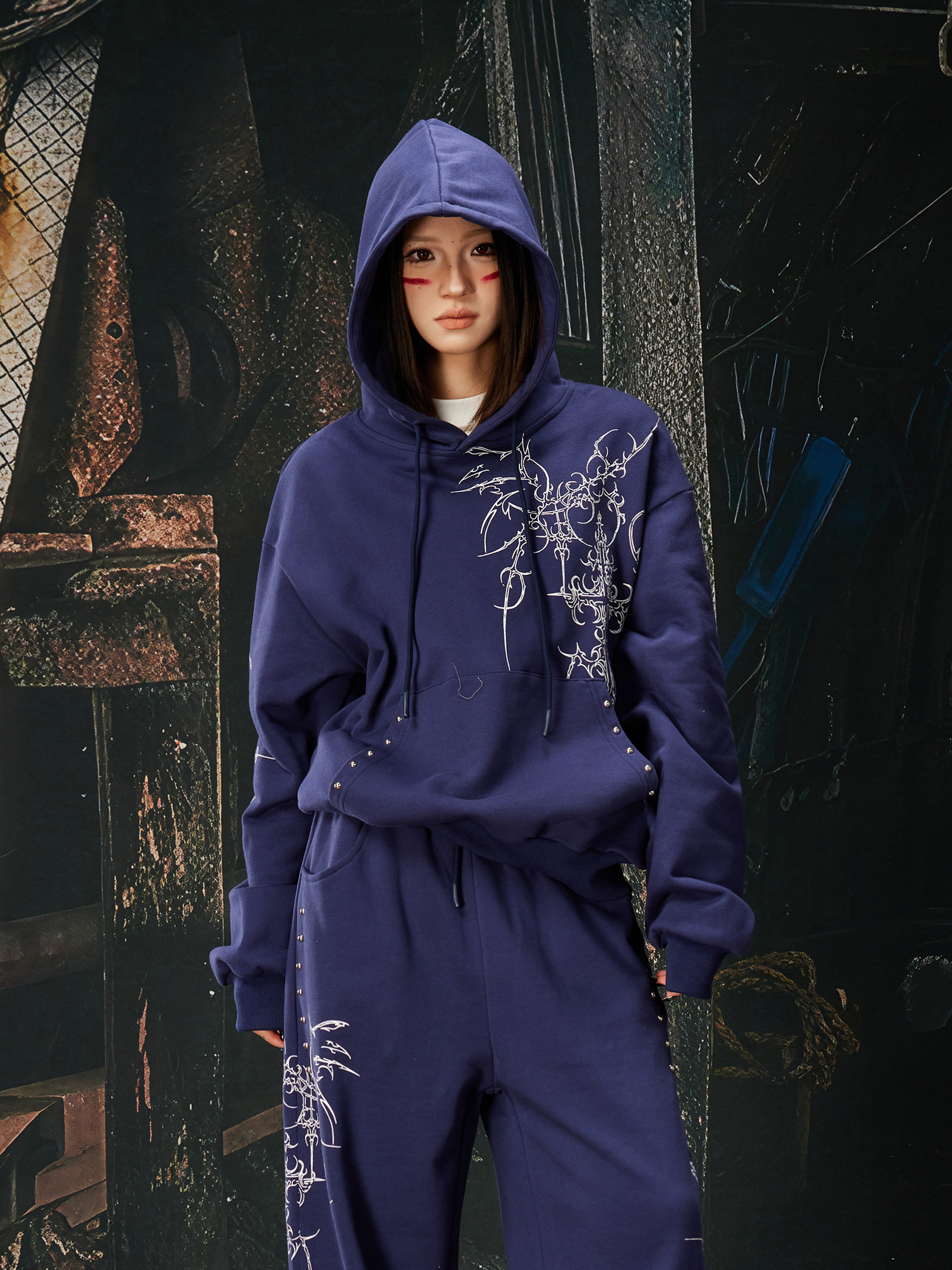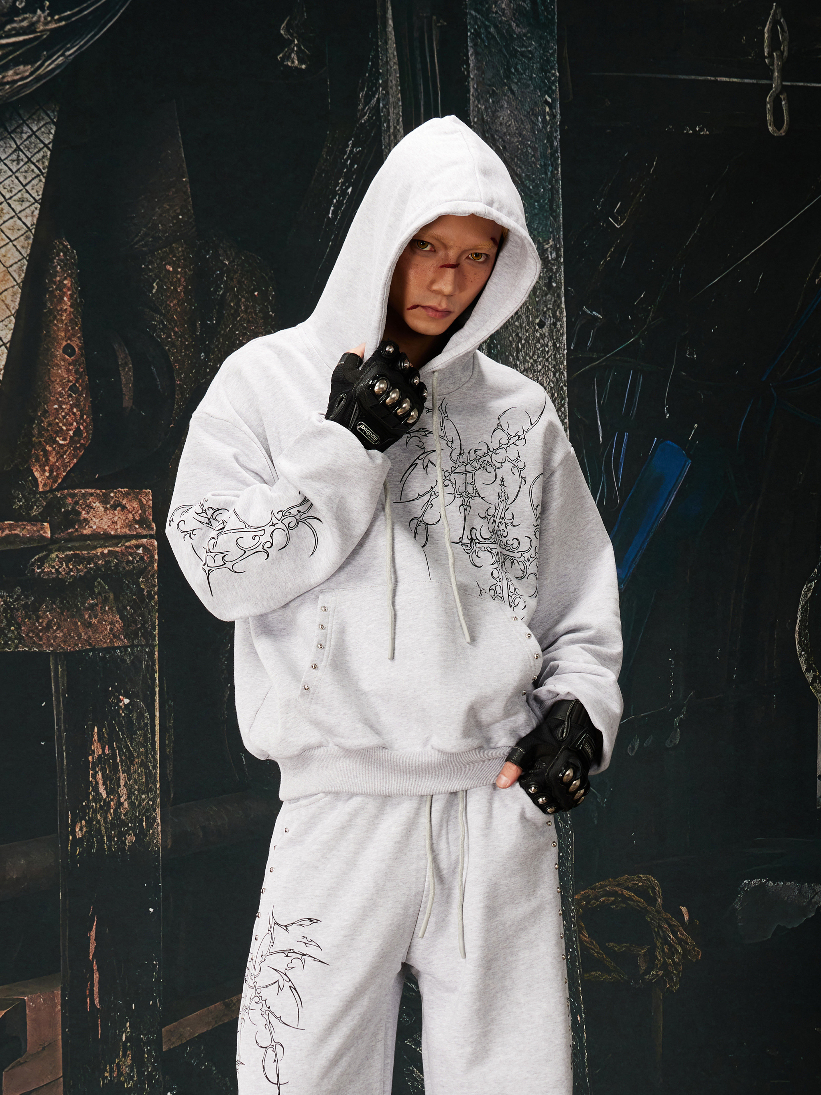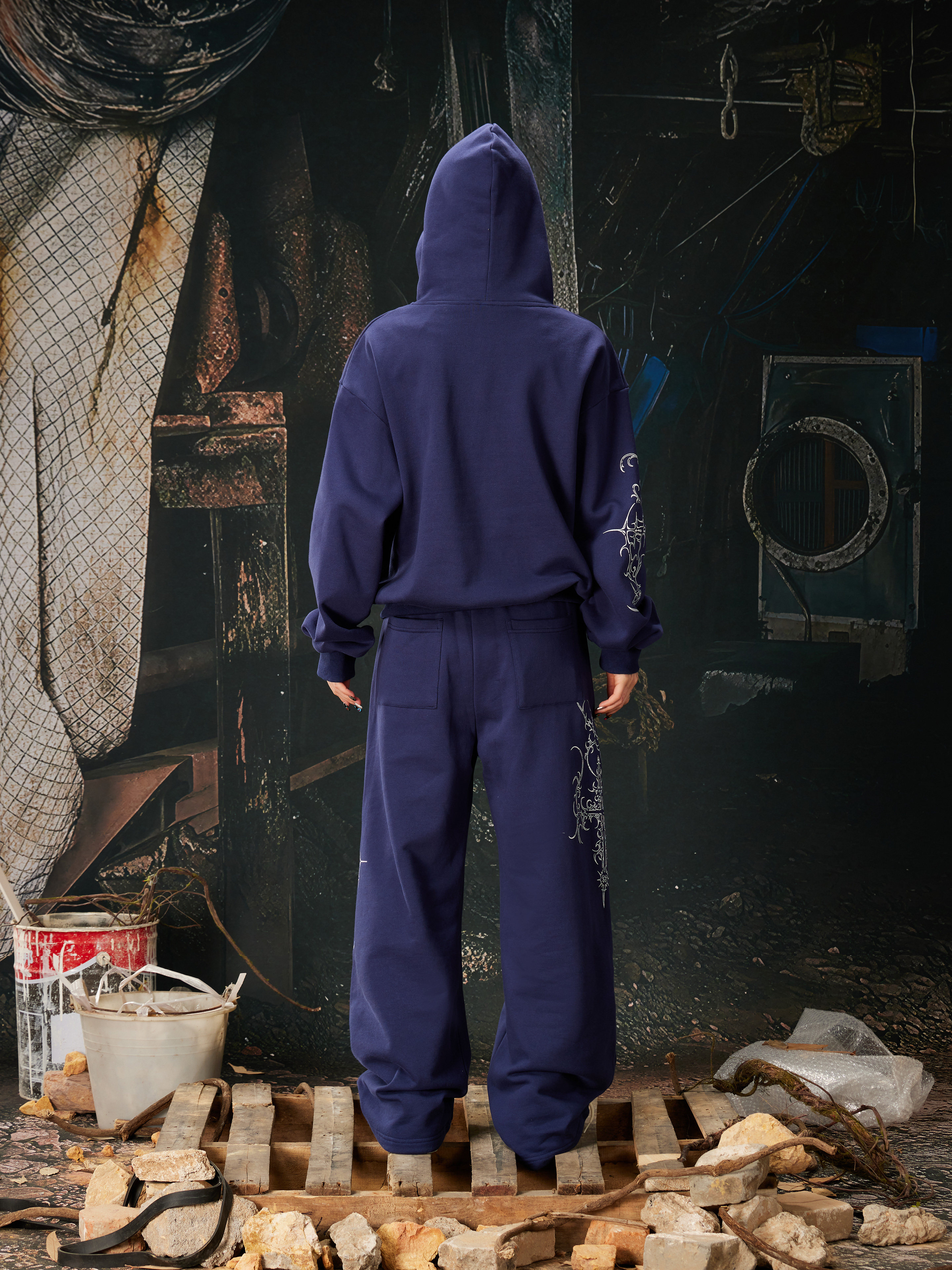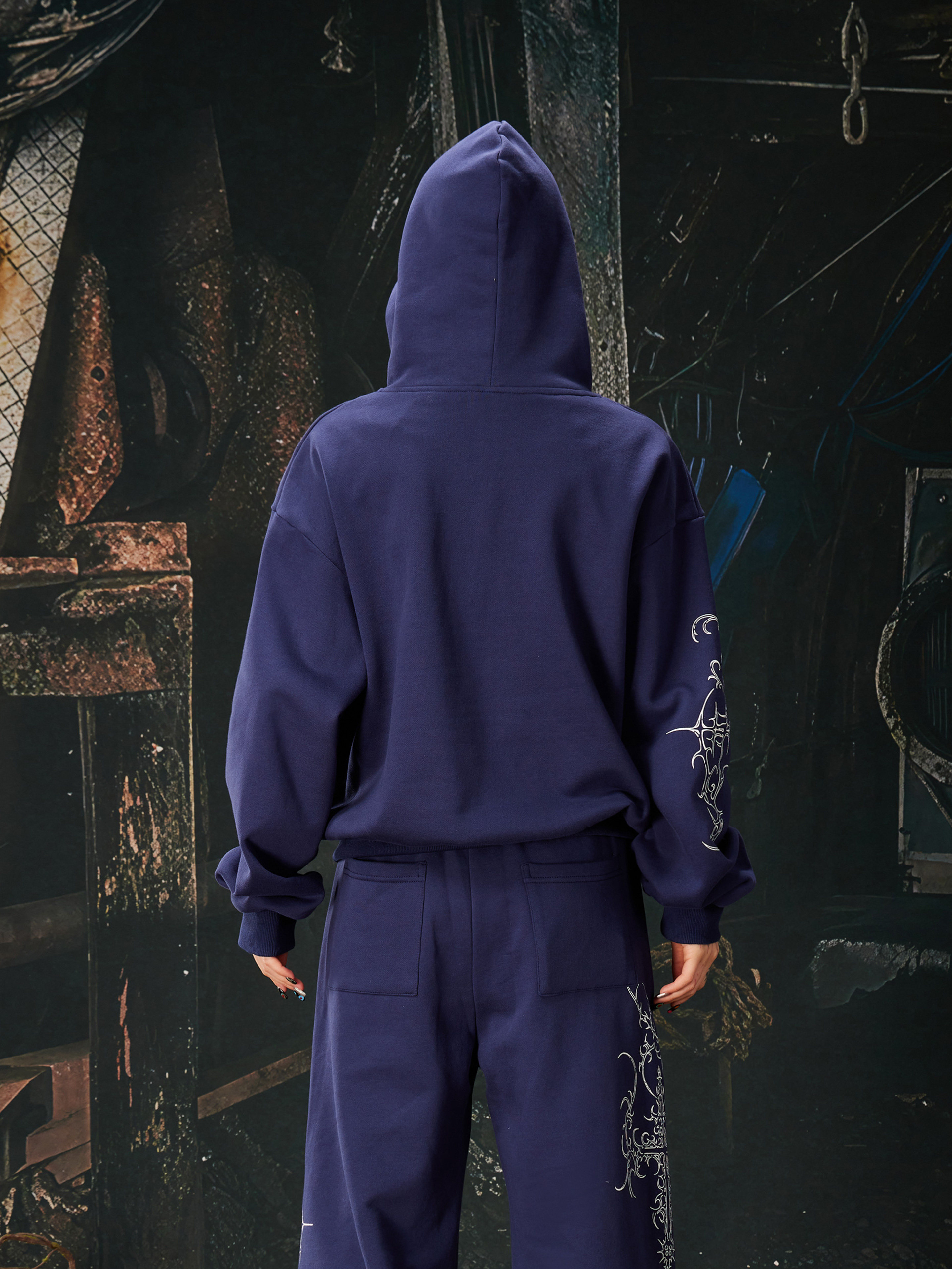 NOMANIAI Bramble Print Beaded Hooded Sweatshirt Sweatpants
