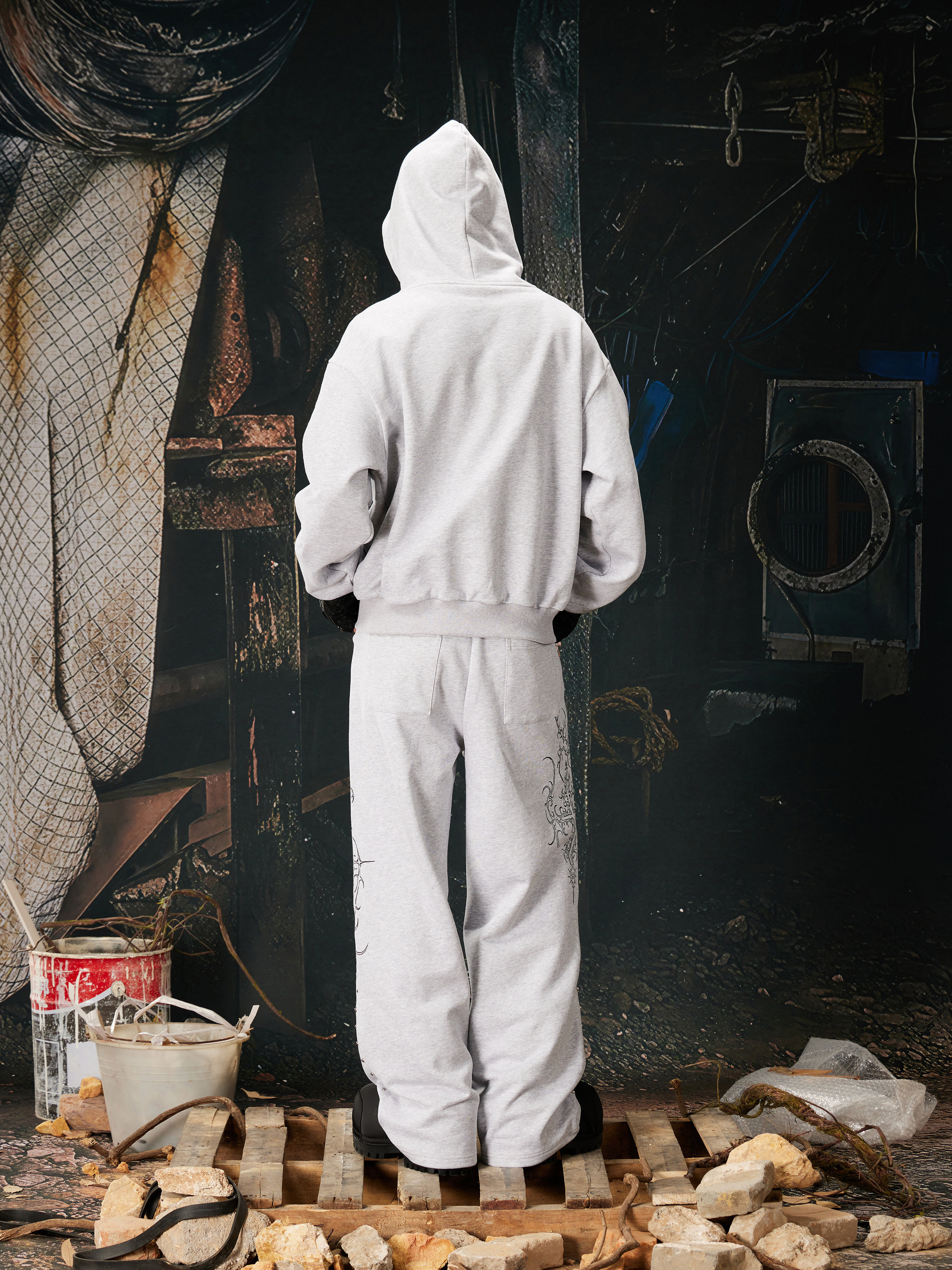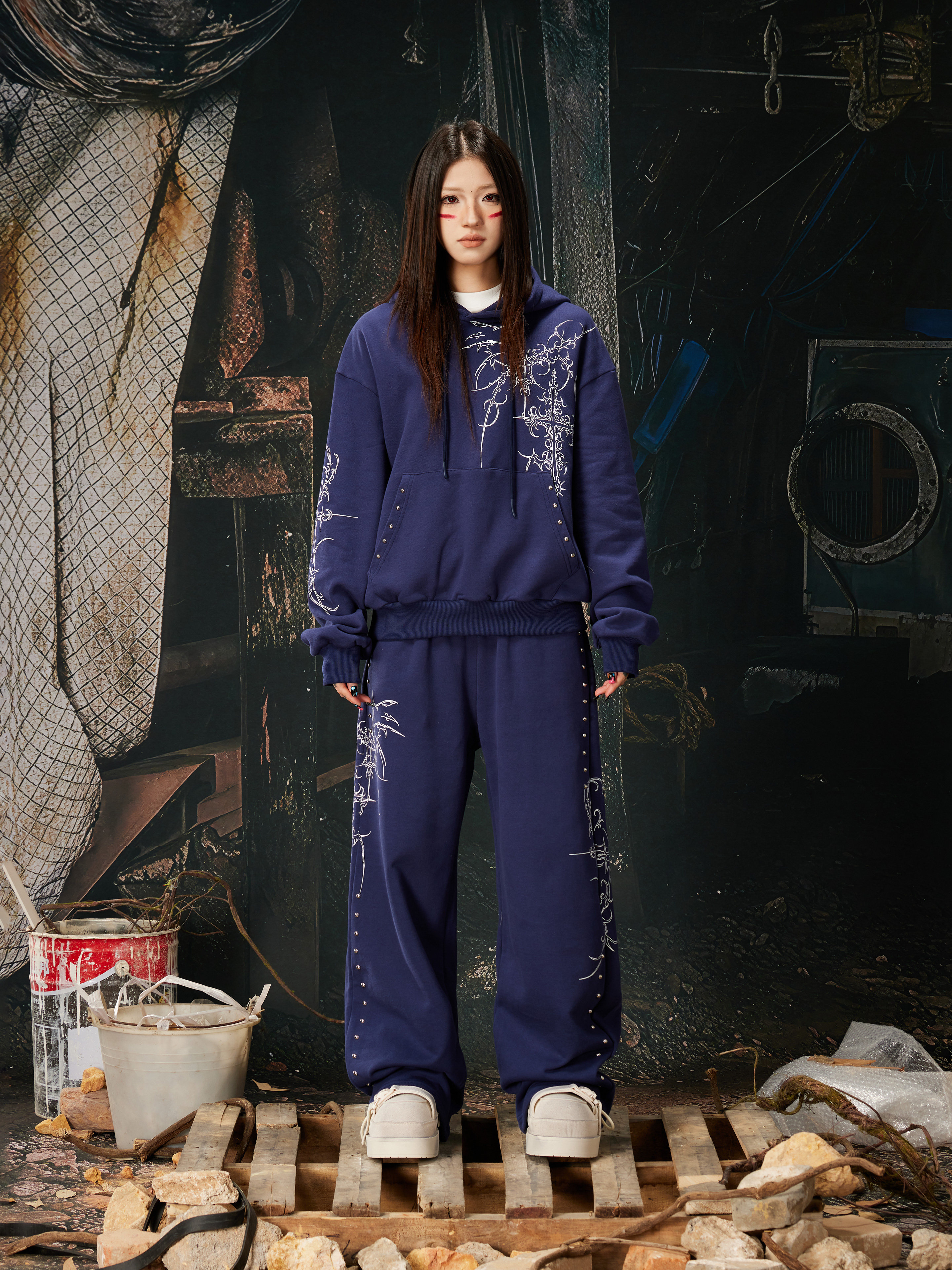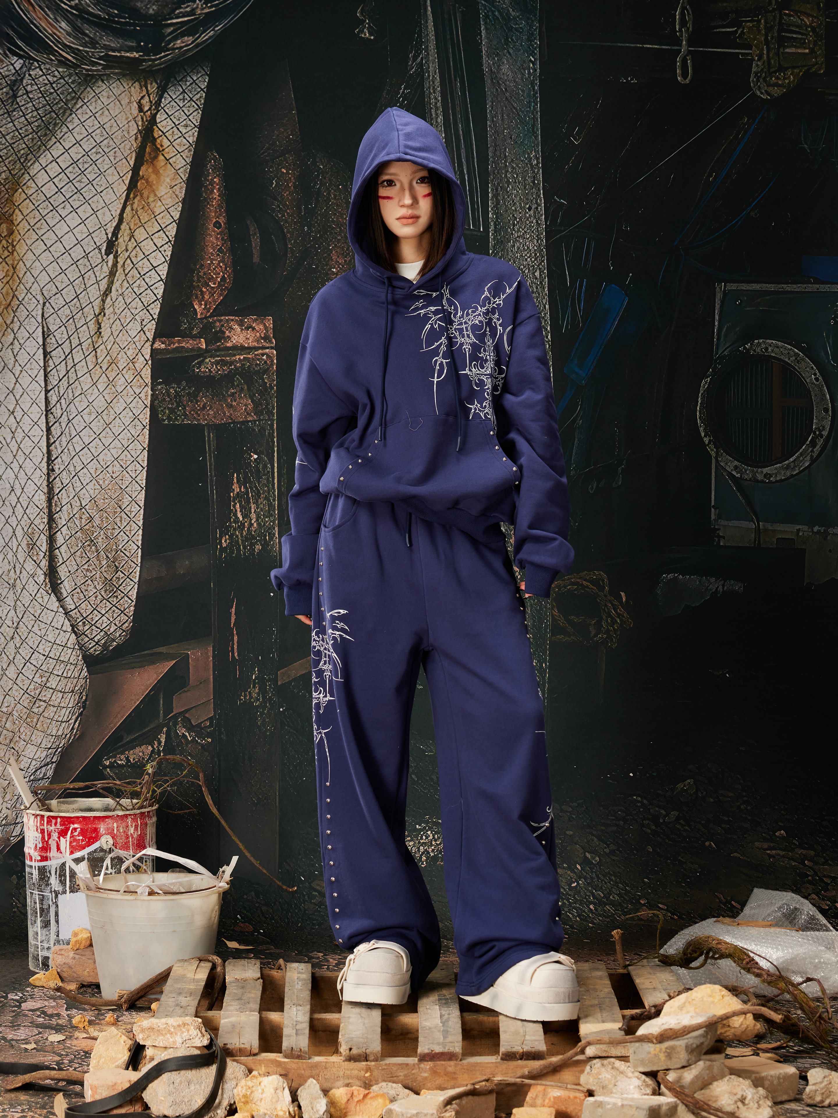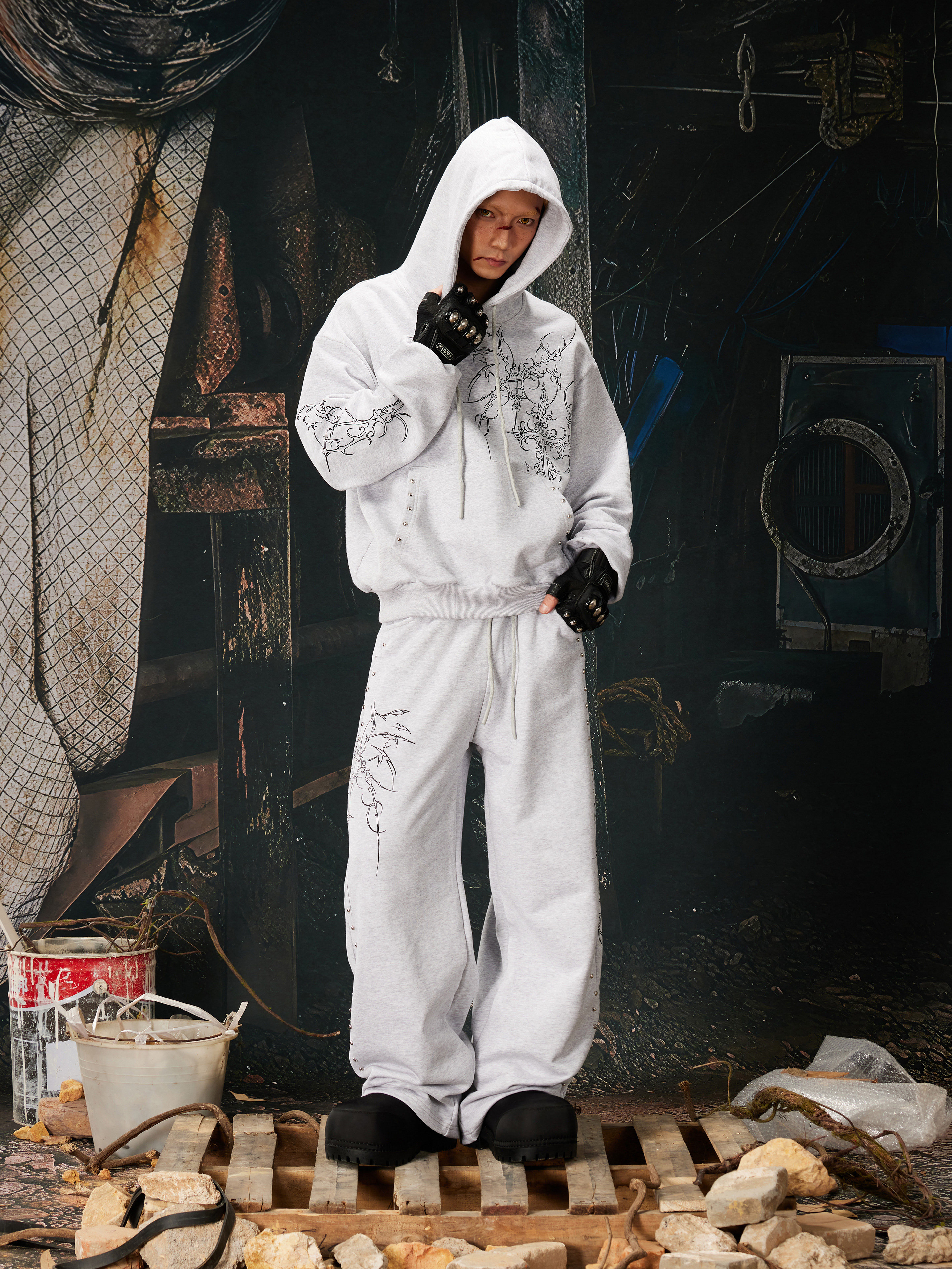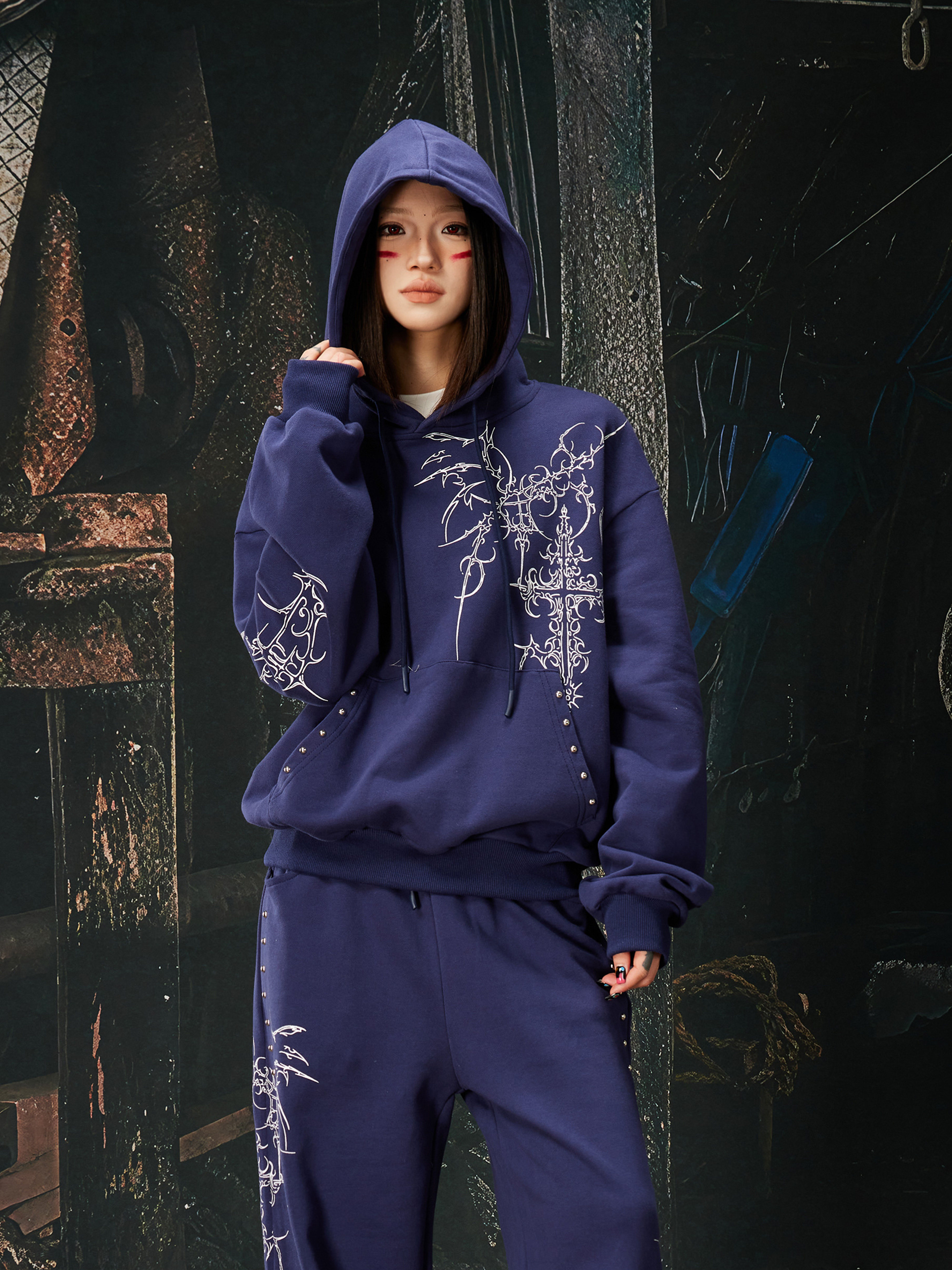 NOMANIAI Bramble Print Beaded Hooded Sweatshirt Sweatpants