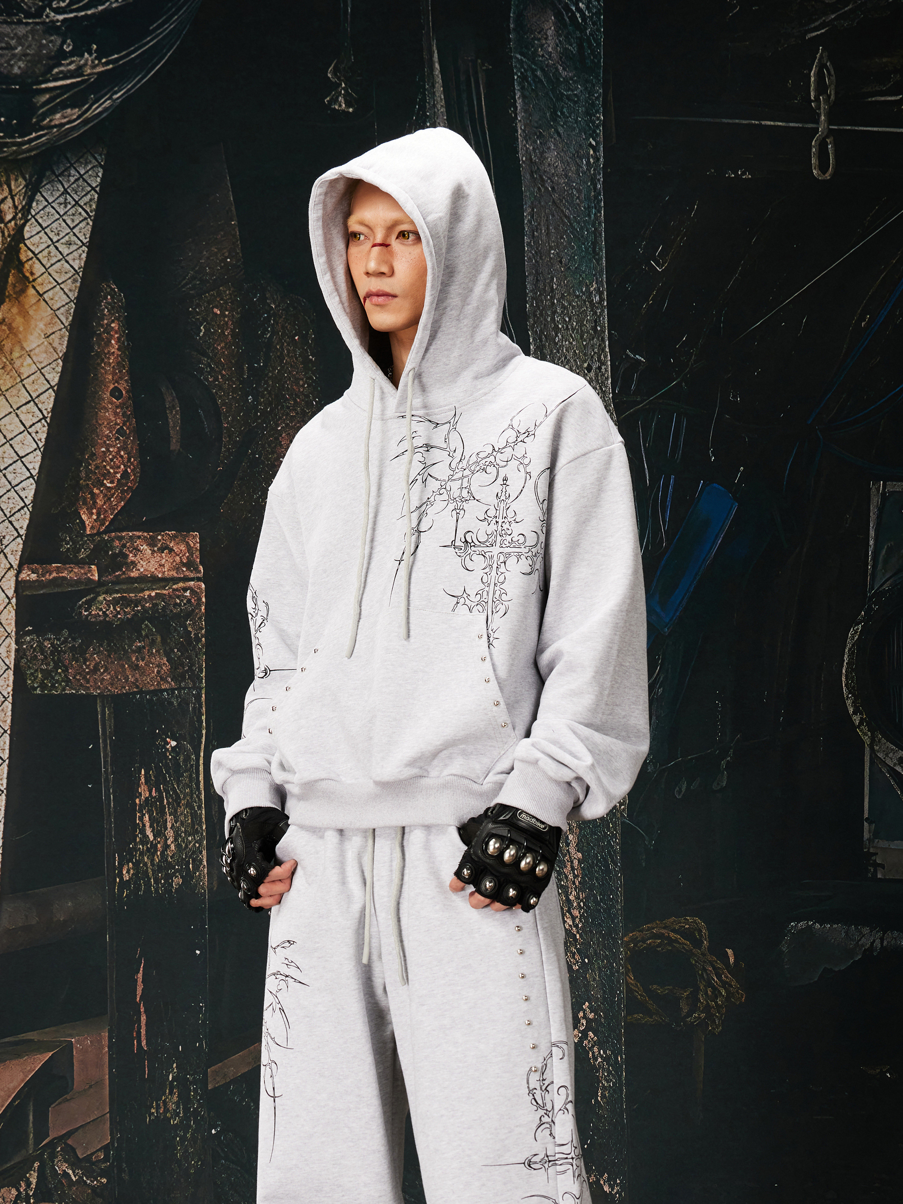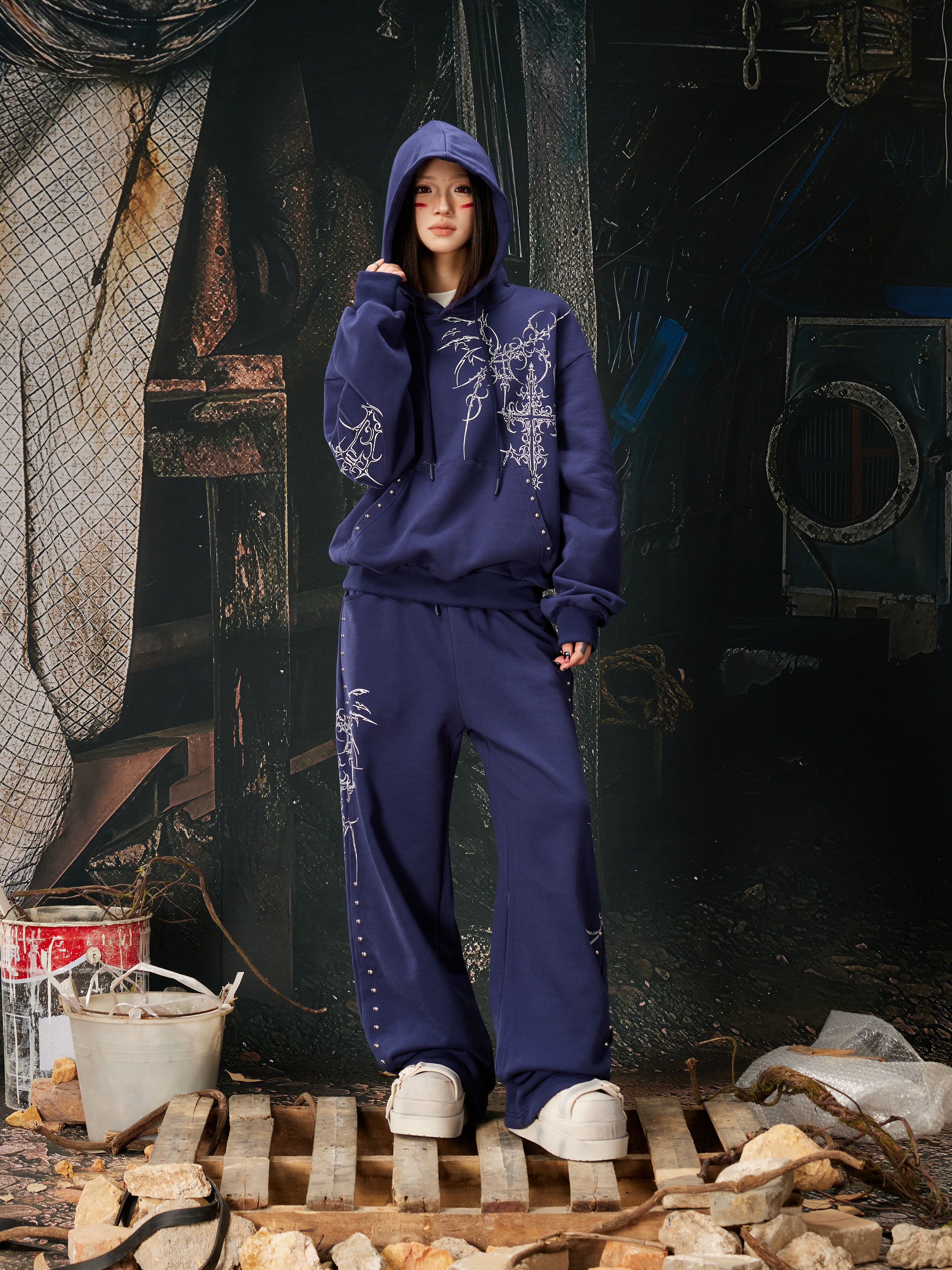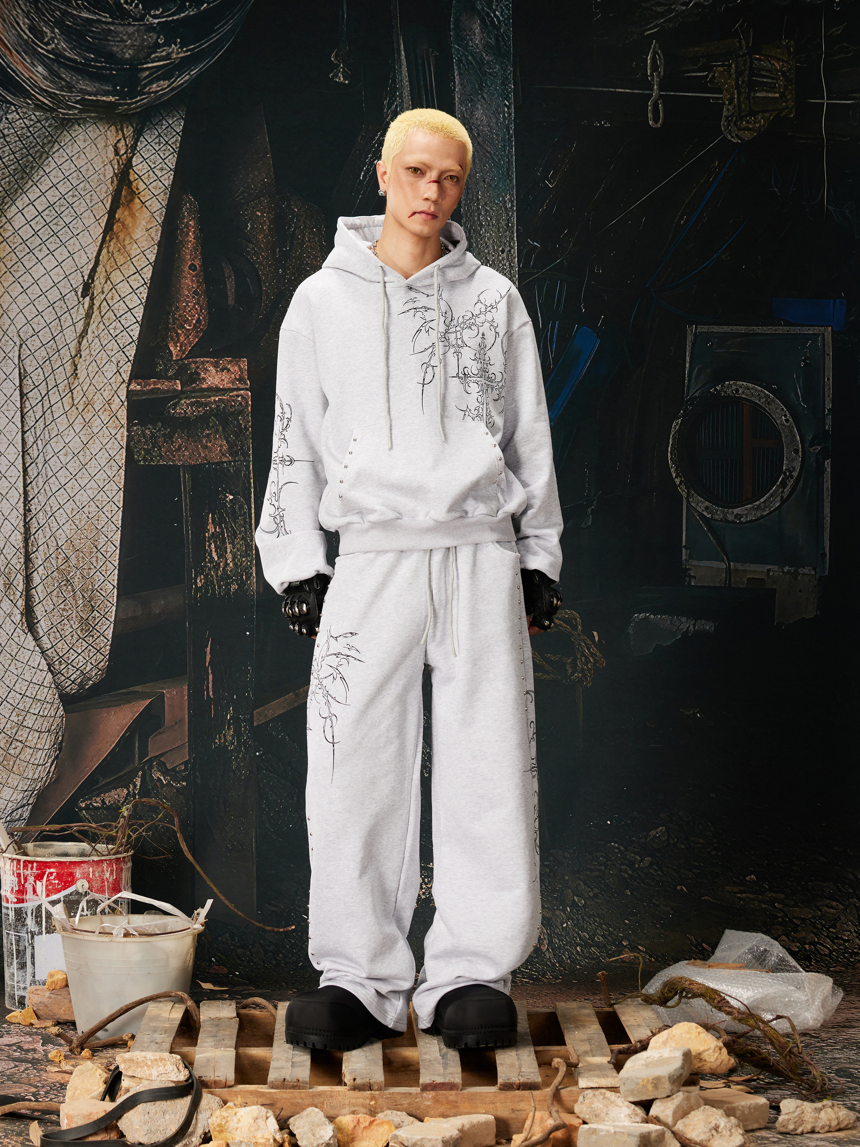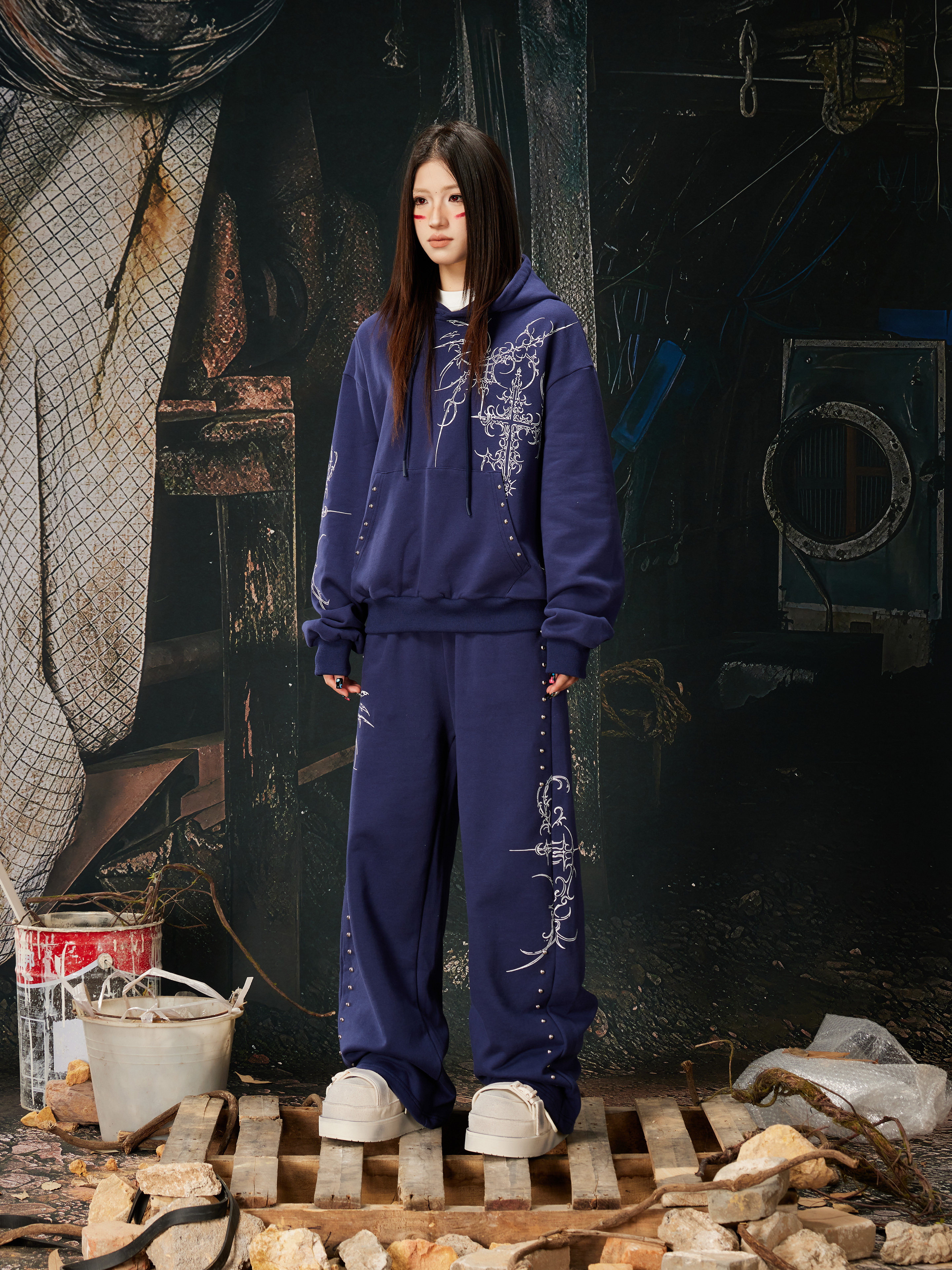 NOMANIAI Bramble Print Beaded Hooded Sweatshirt Sweatpants