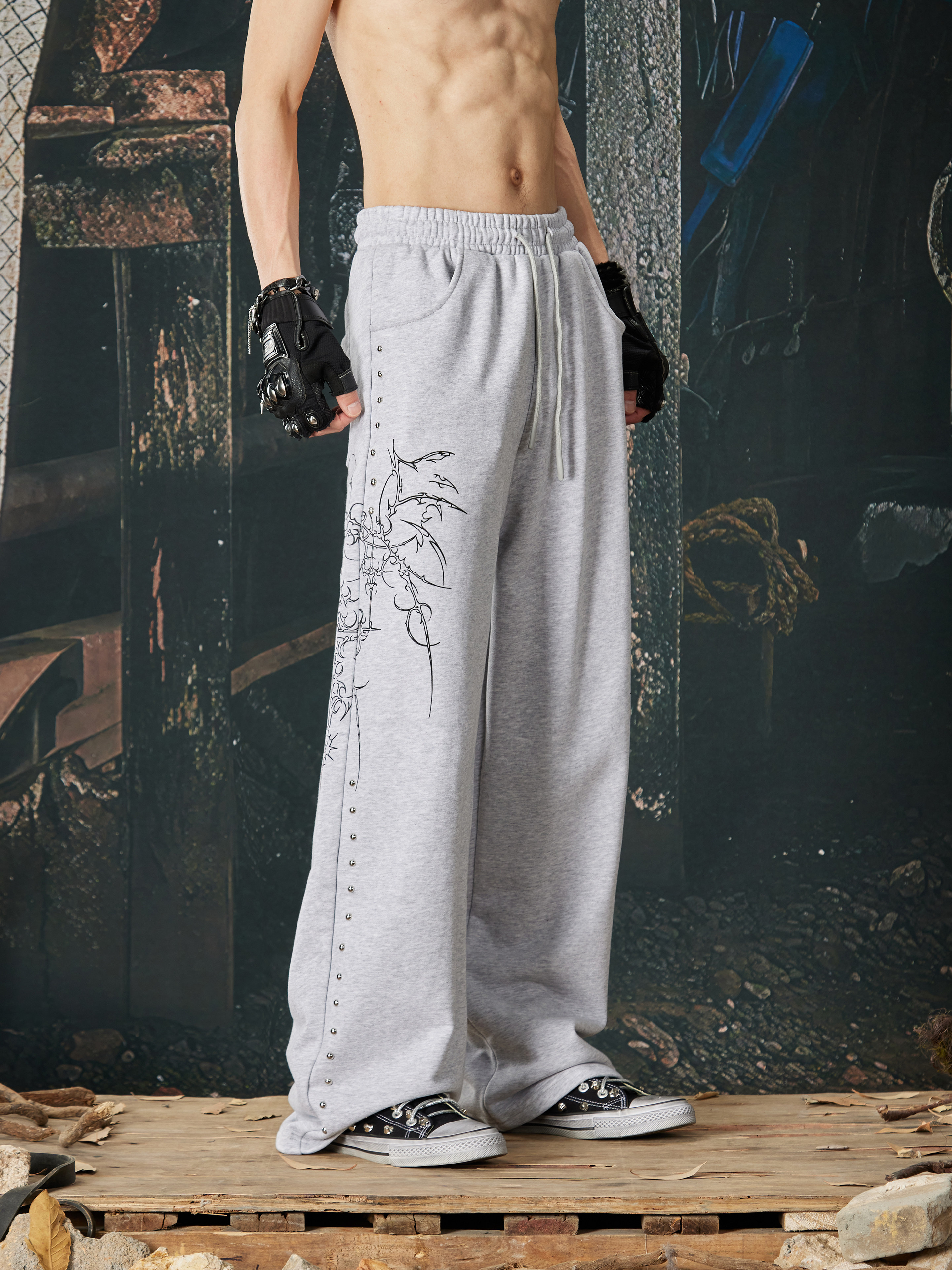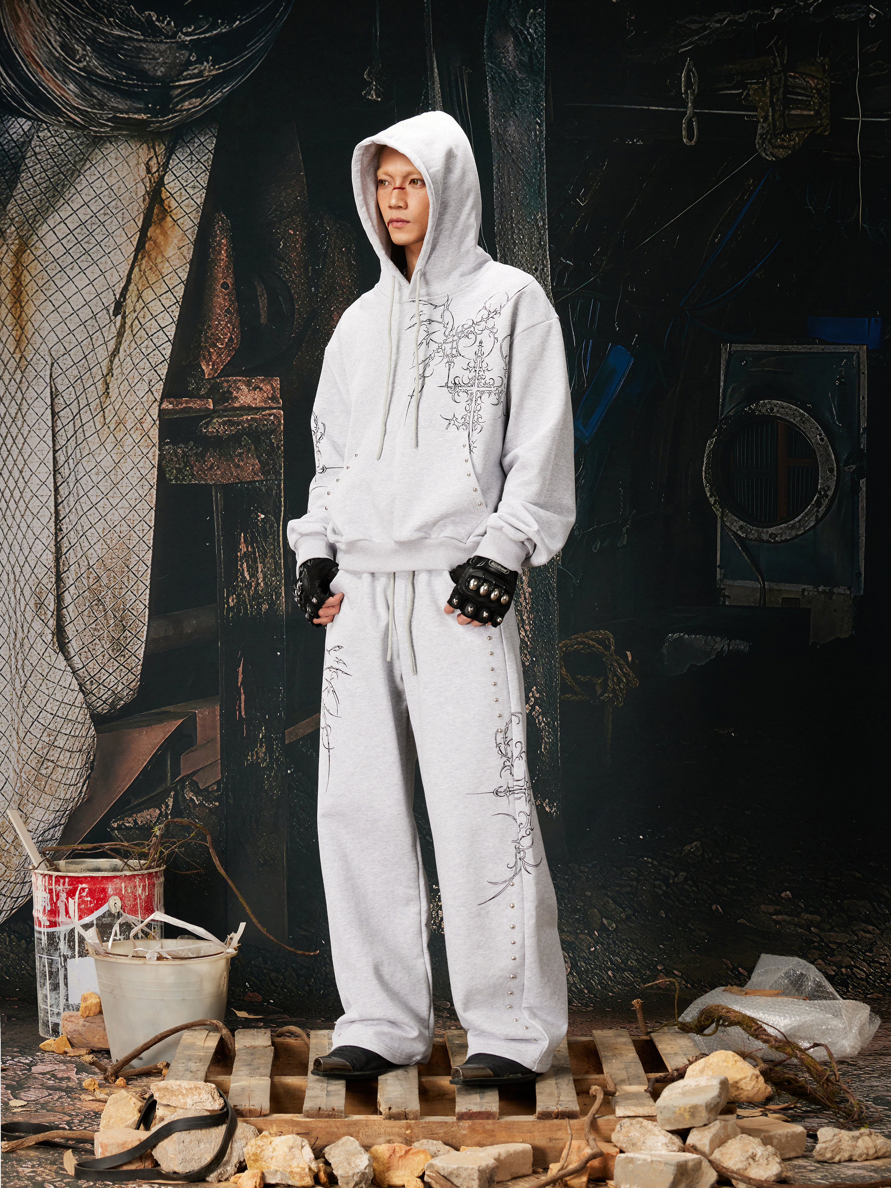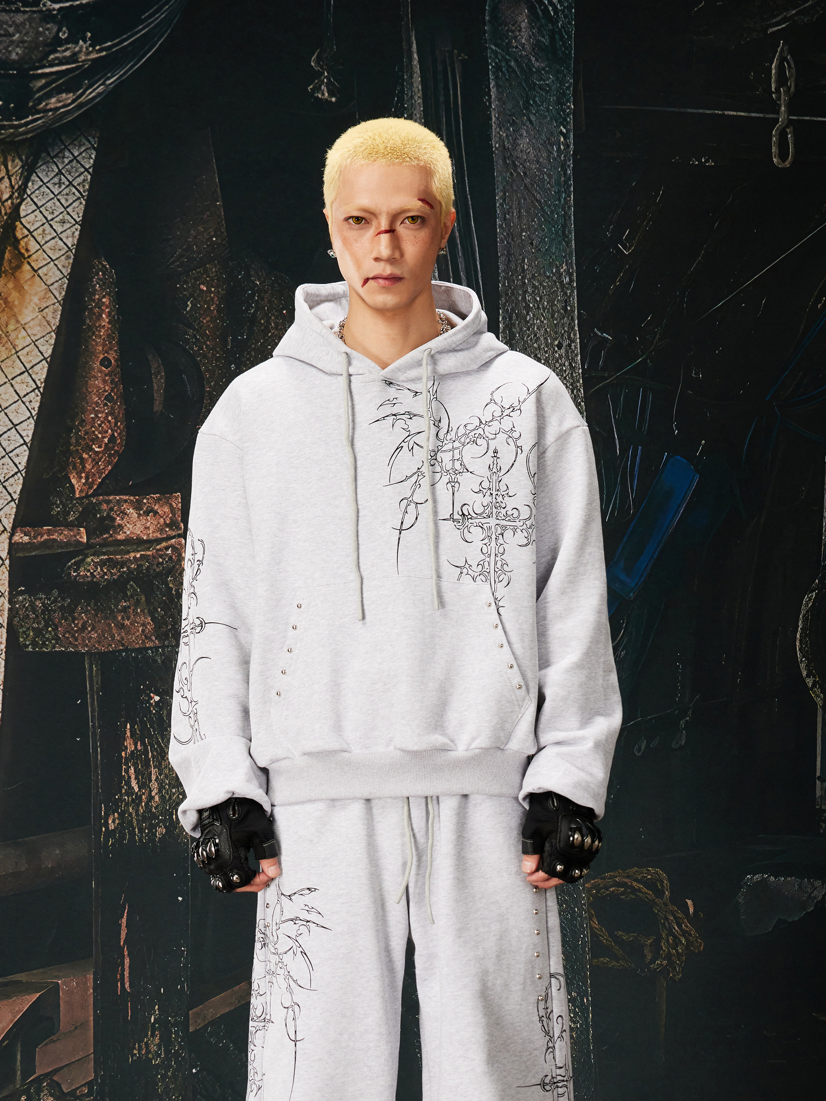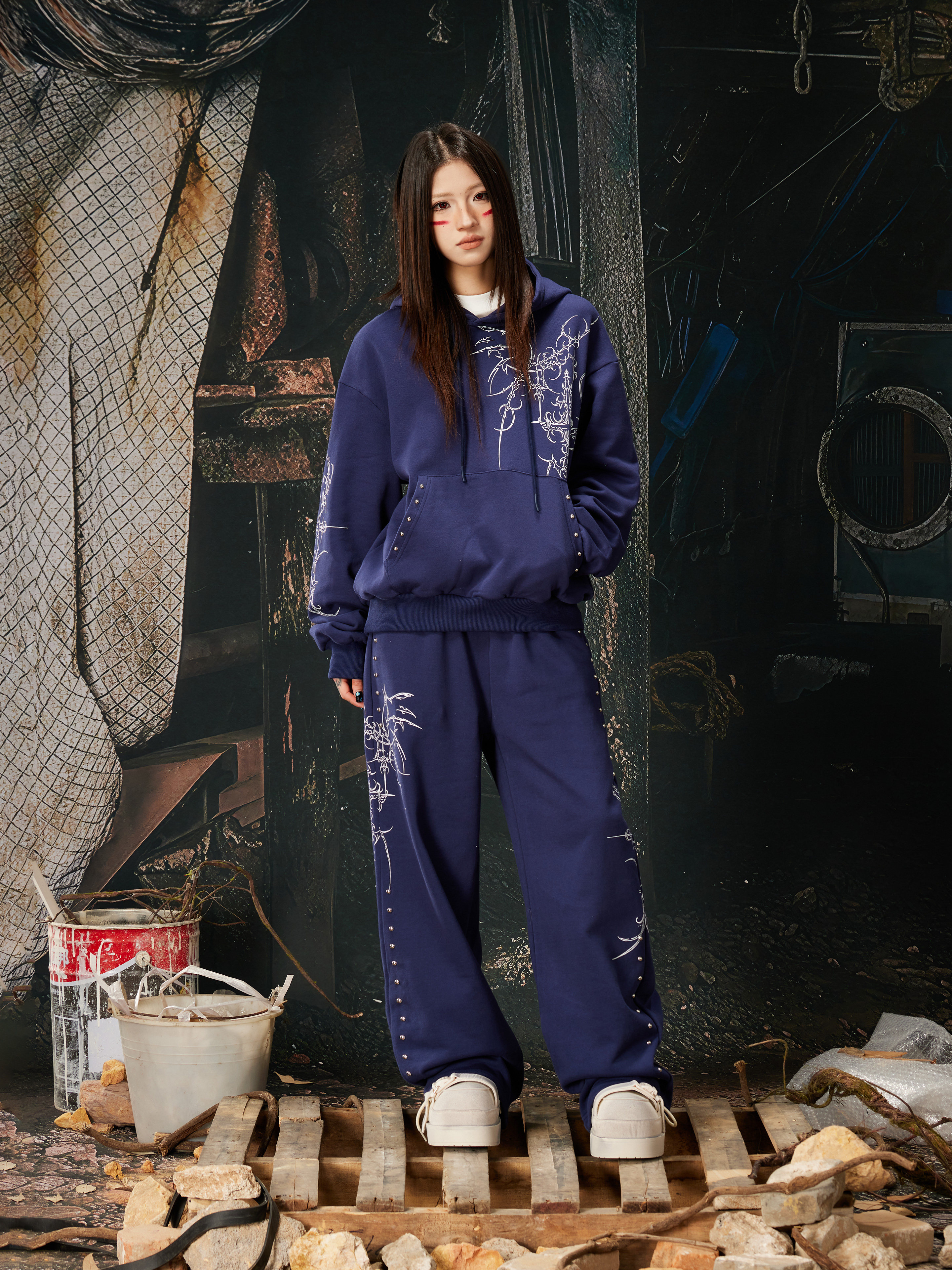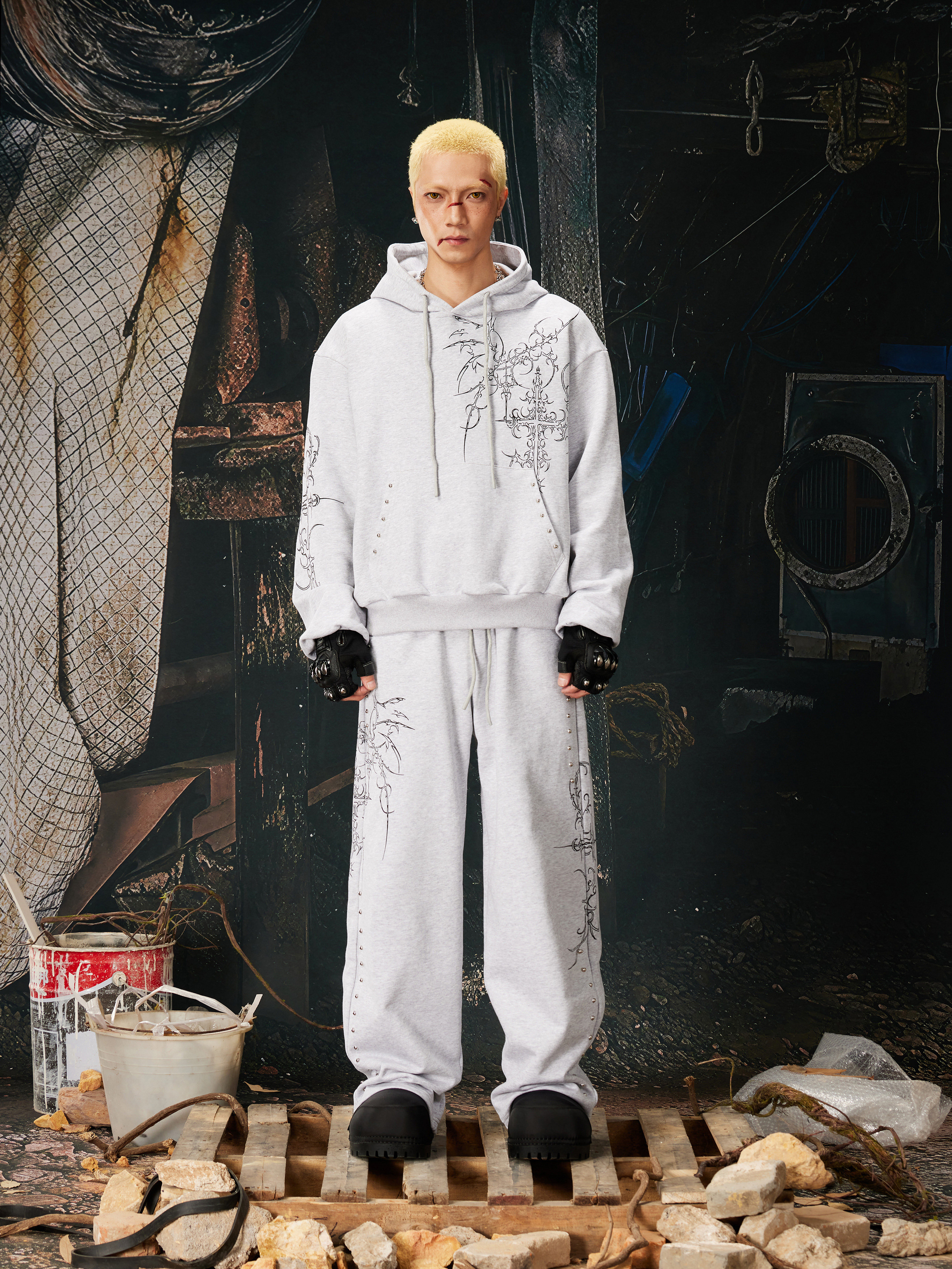 NOMANIAI Bramble Print Beaded Hooded Sweatshirt Sweatpants