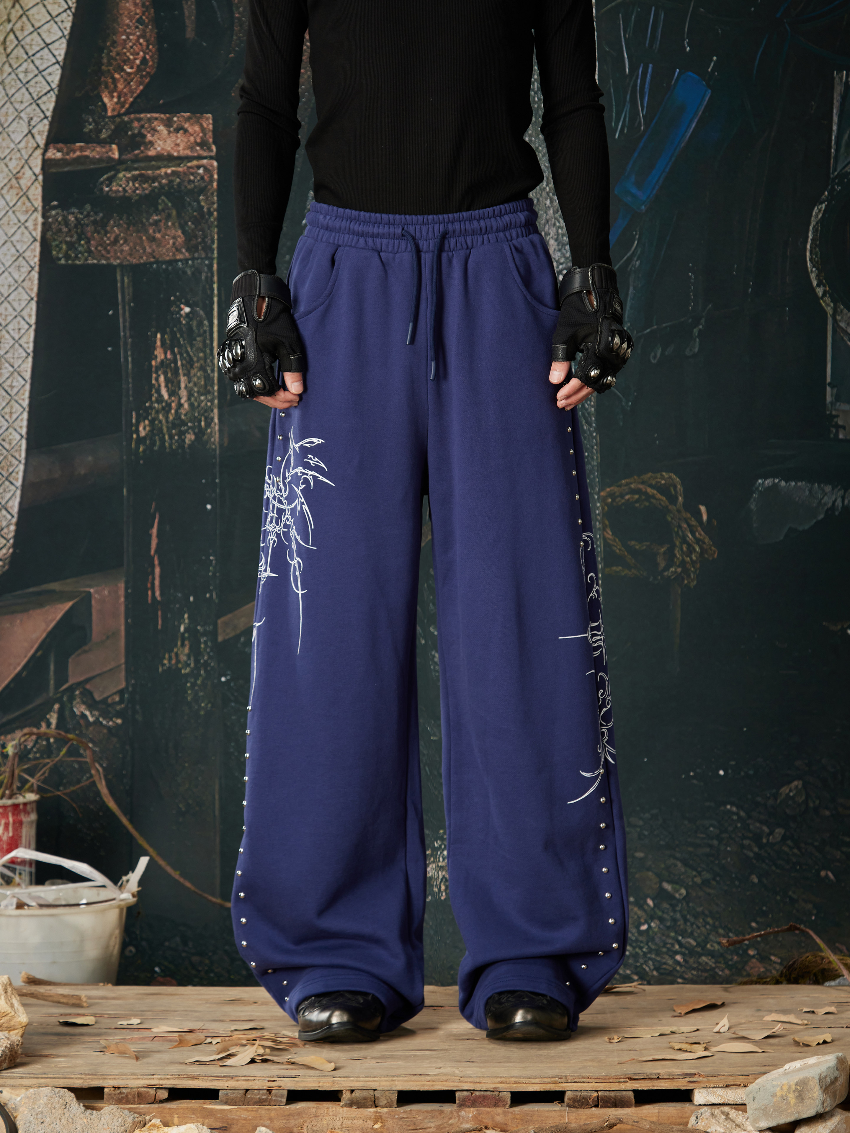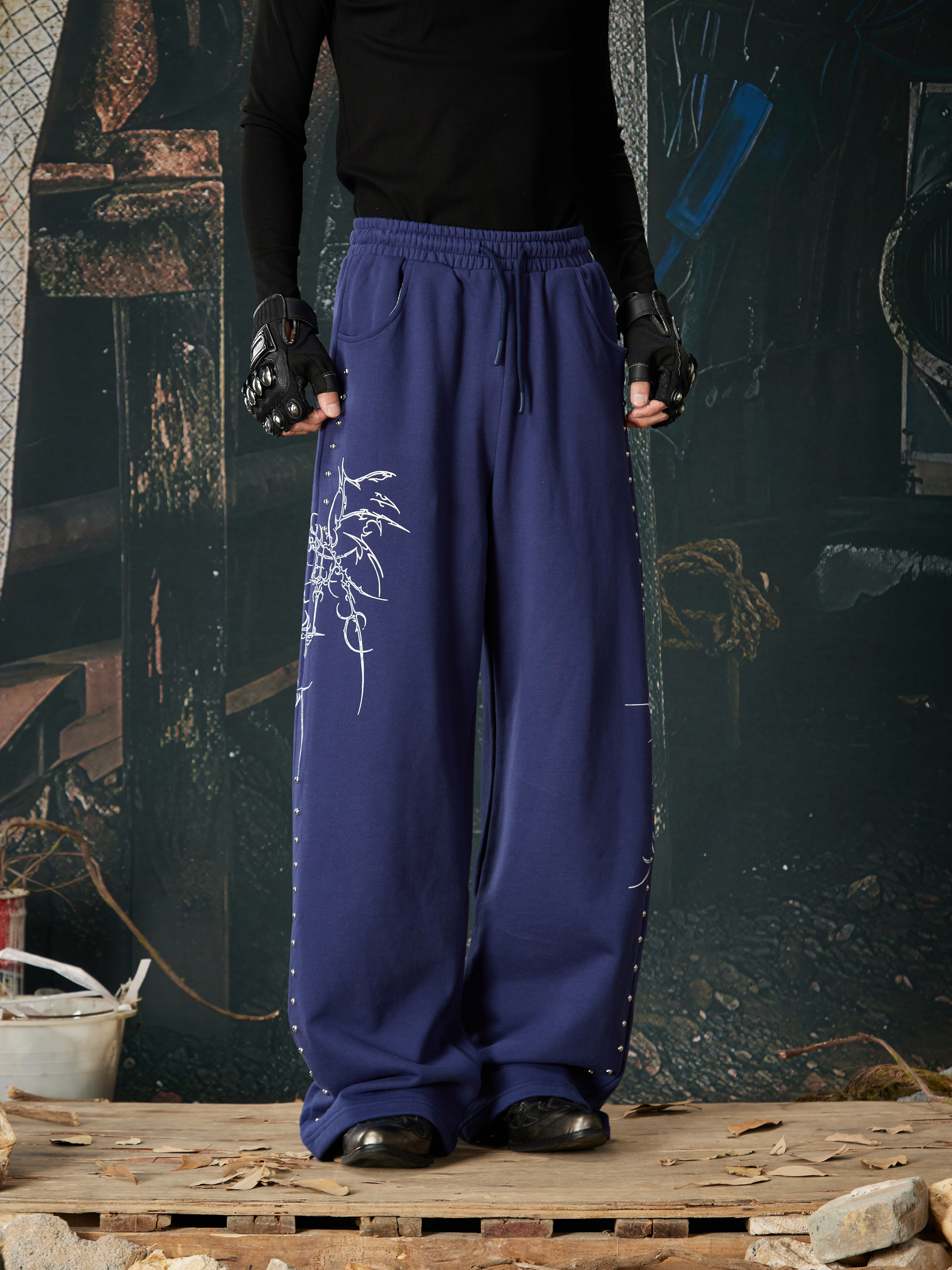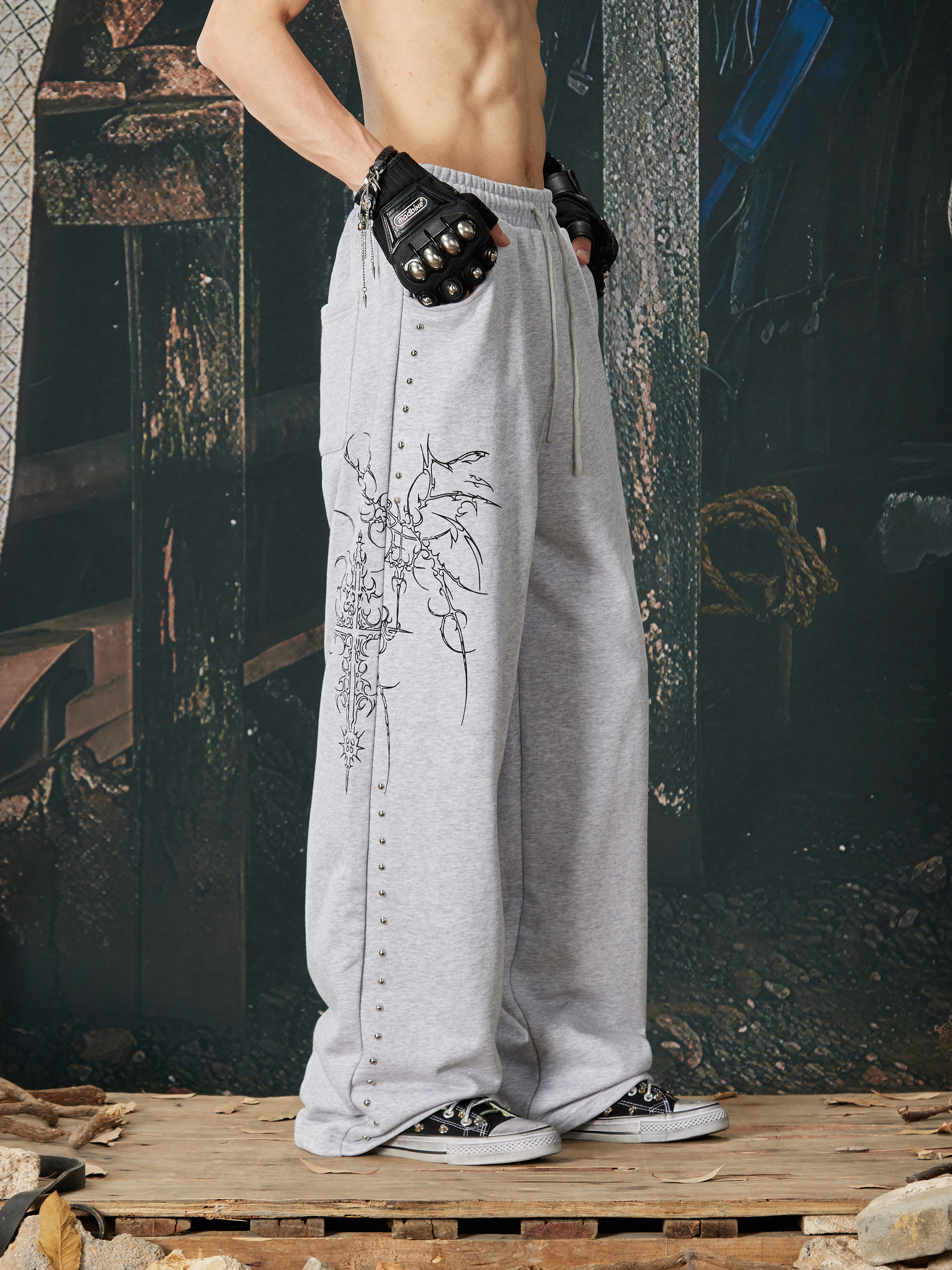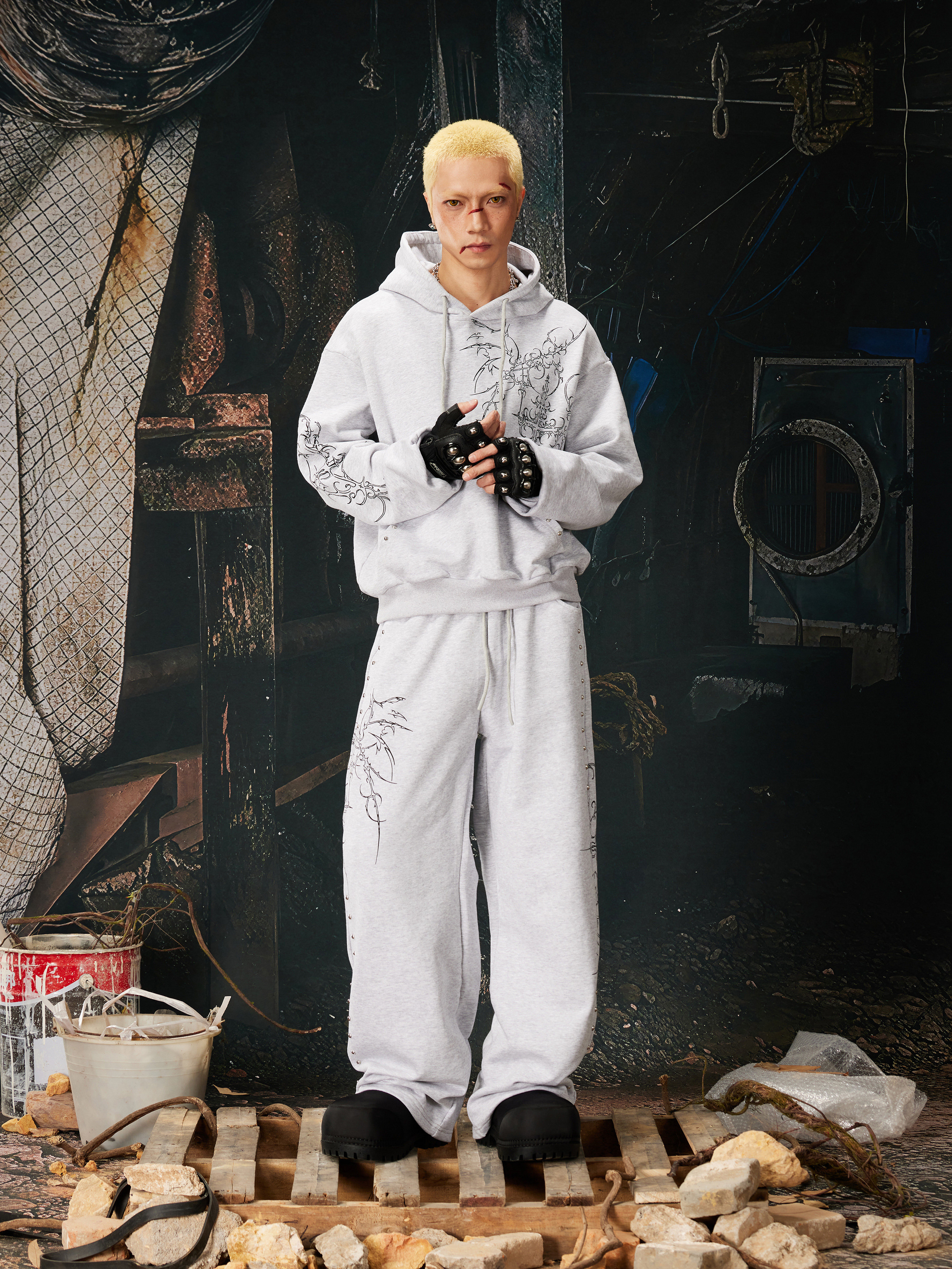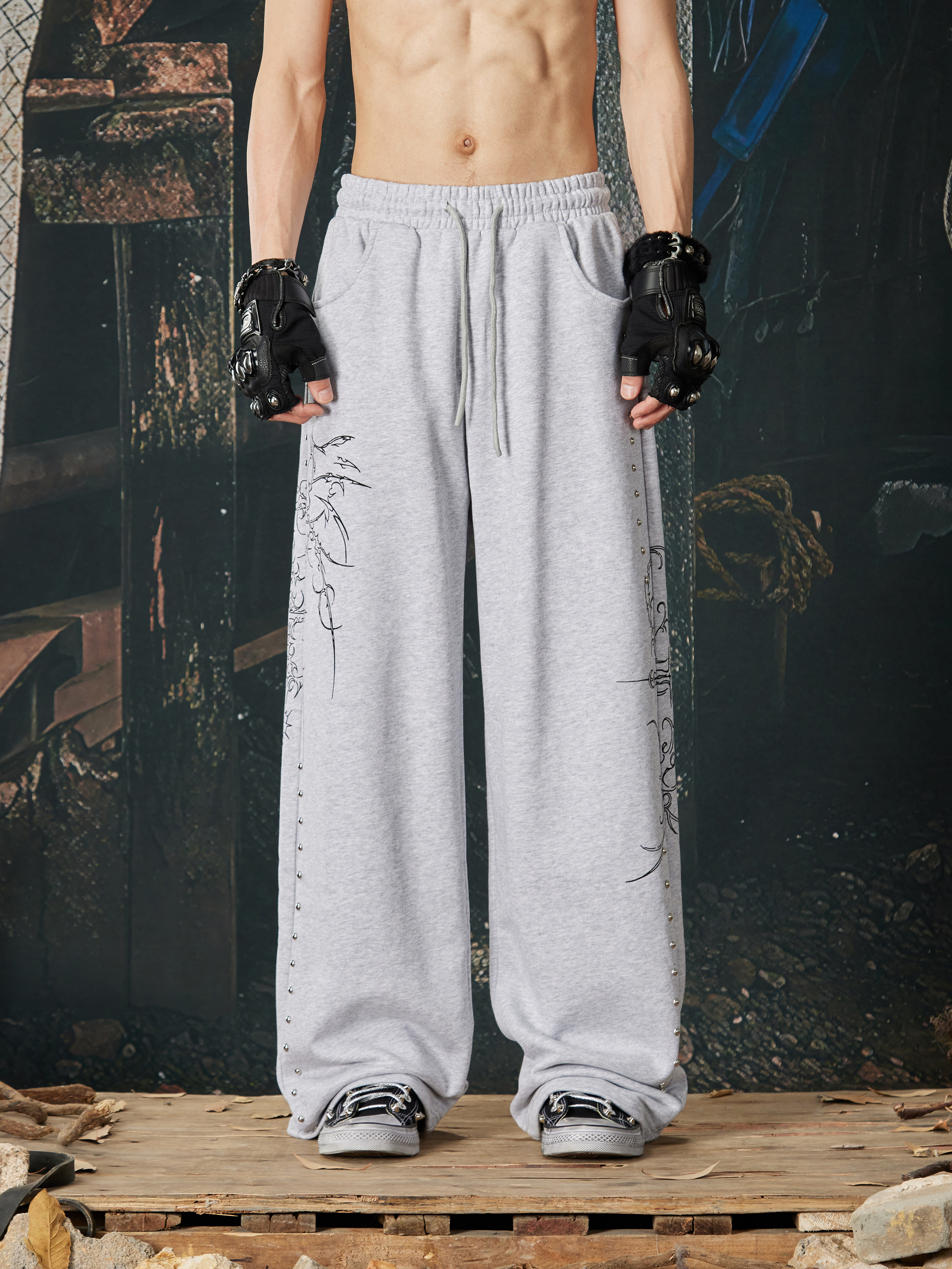 NOMANIAI Bramble Print Beaded Hooded Sweatshirt Sweatpants