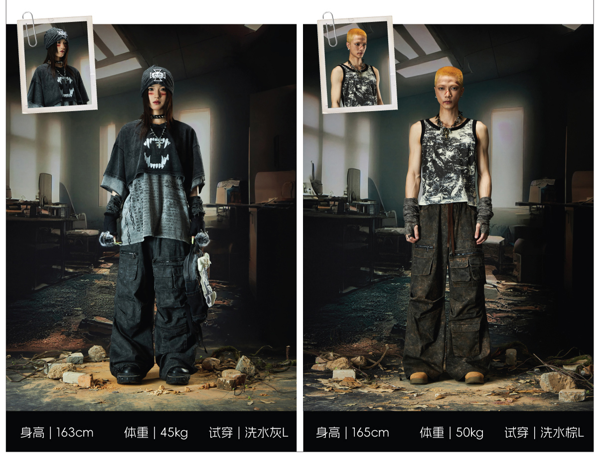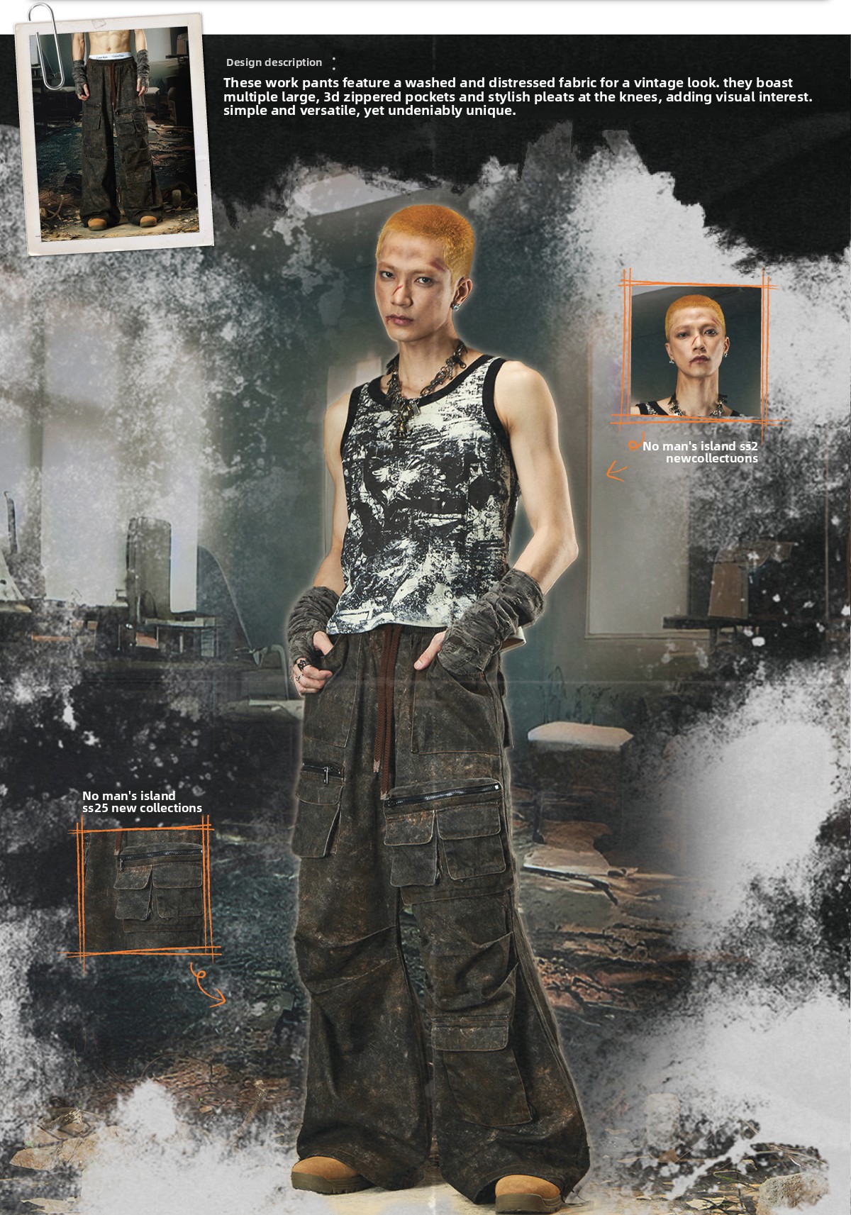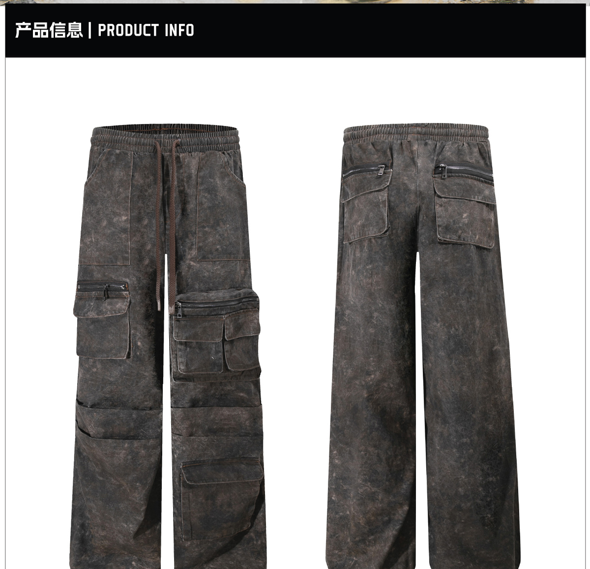 NOMANIAI Dirty Dye Washing Water Multi-pocket Tooling Loose Straight-leg Pants