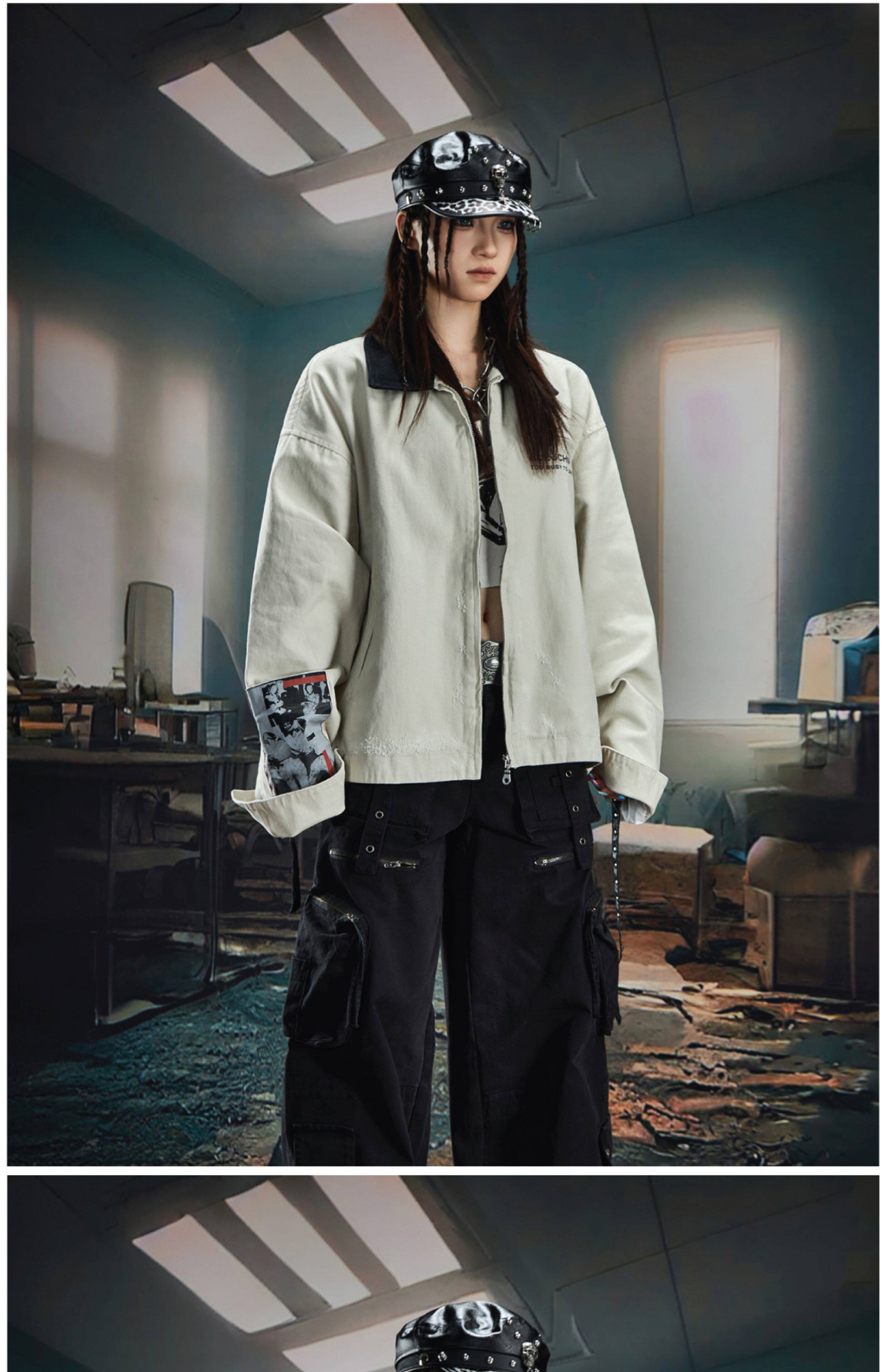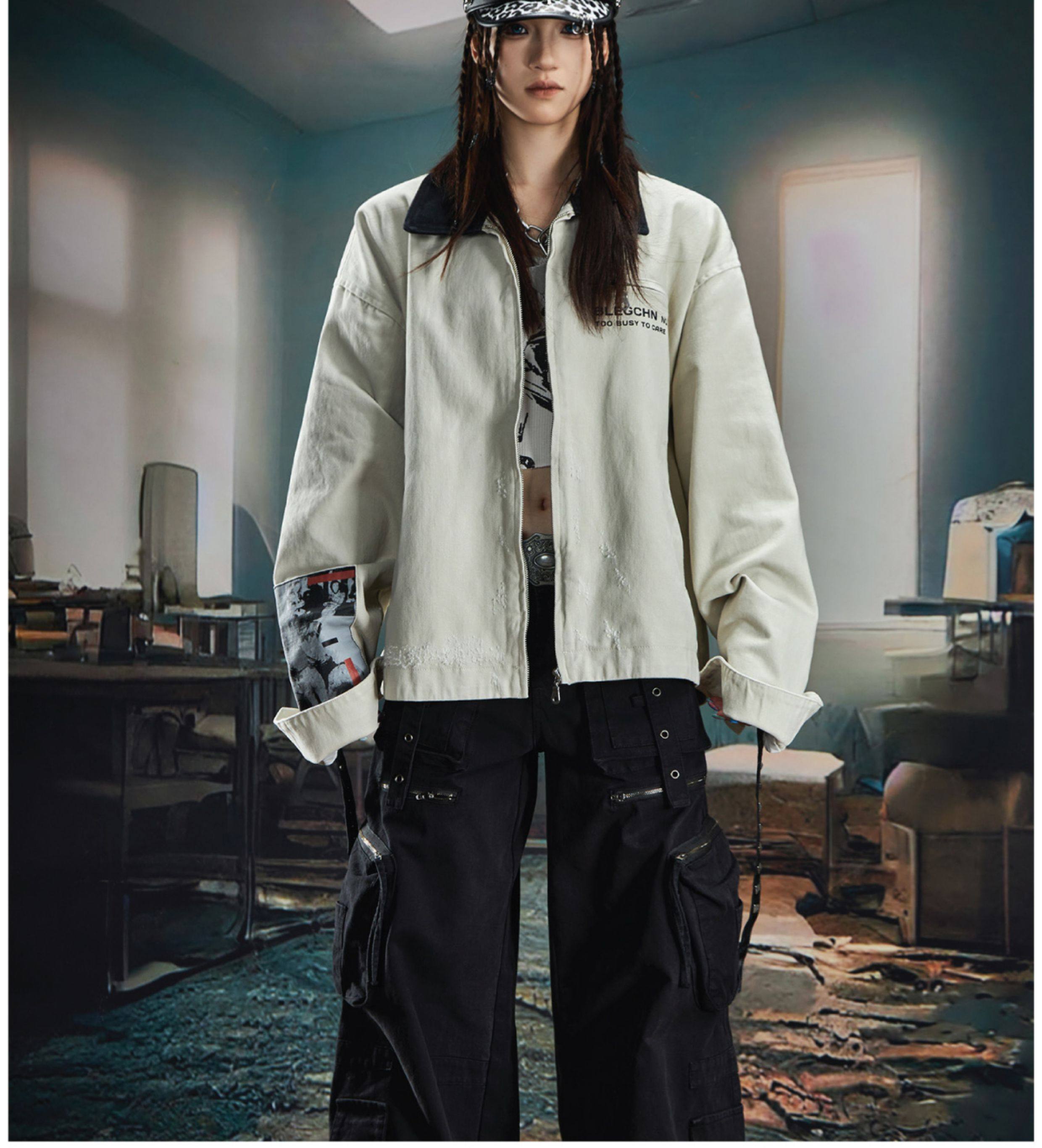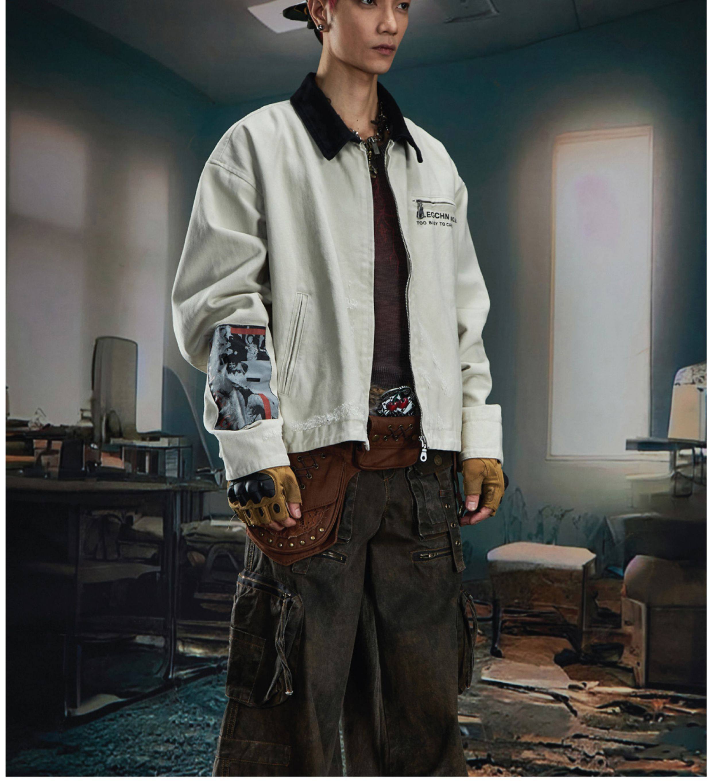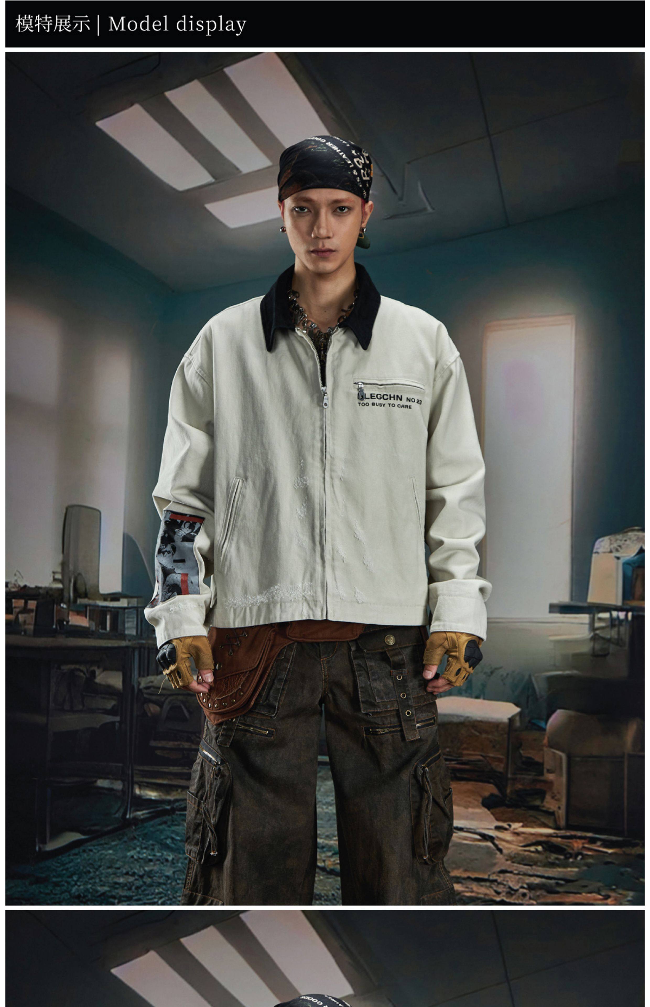 NOMANIAI Loose Zip Lapel Denim Jacket