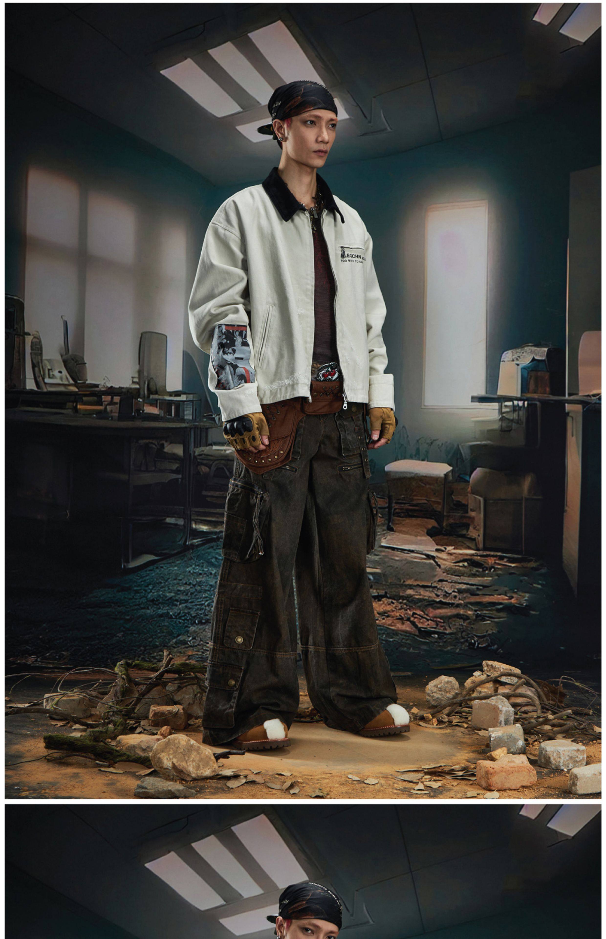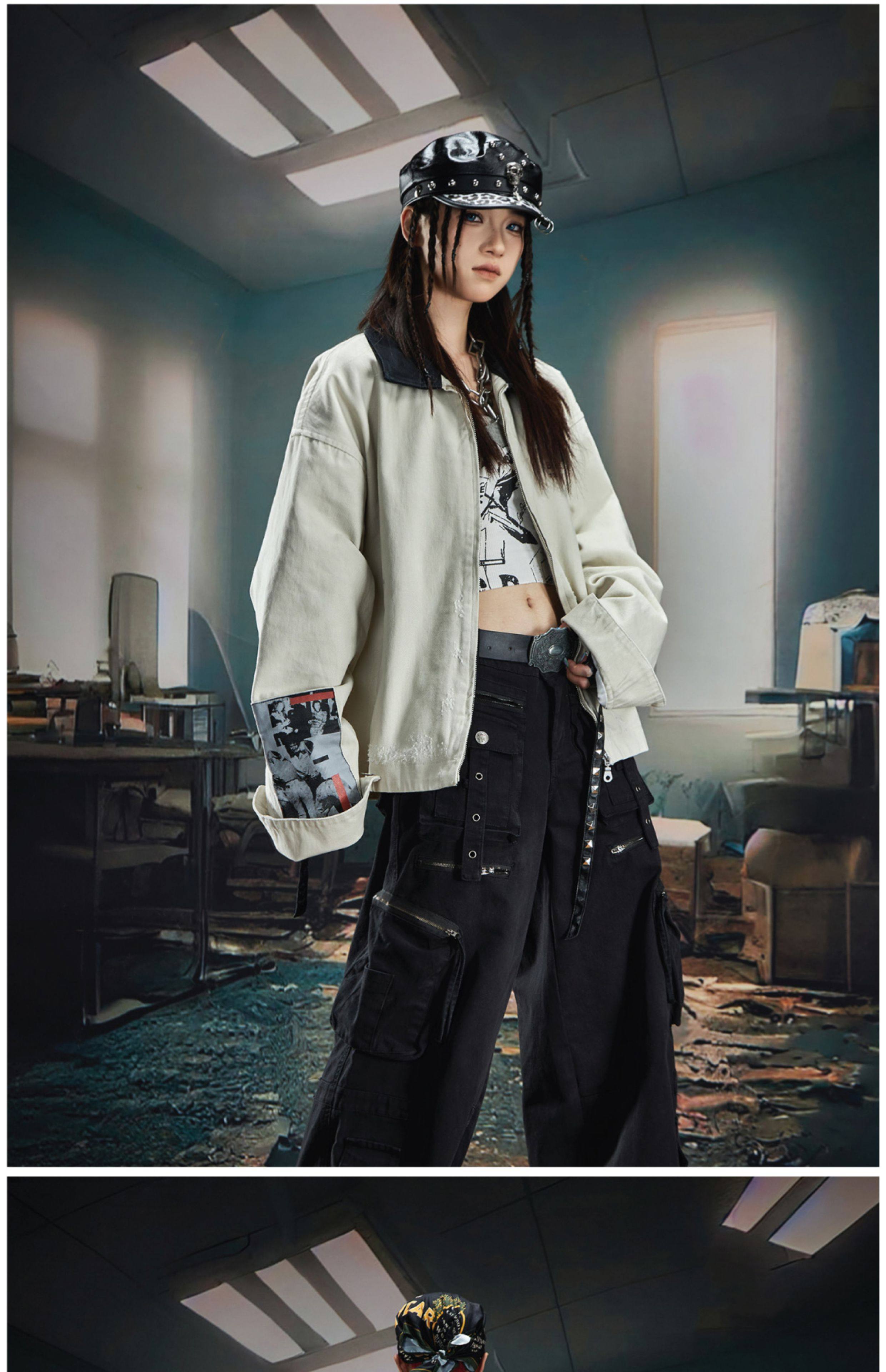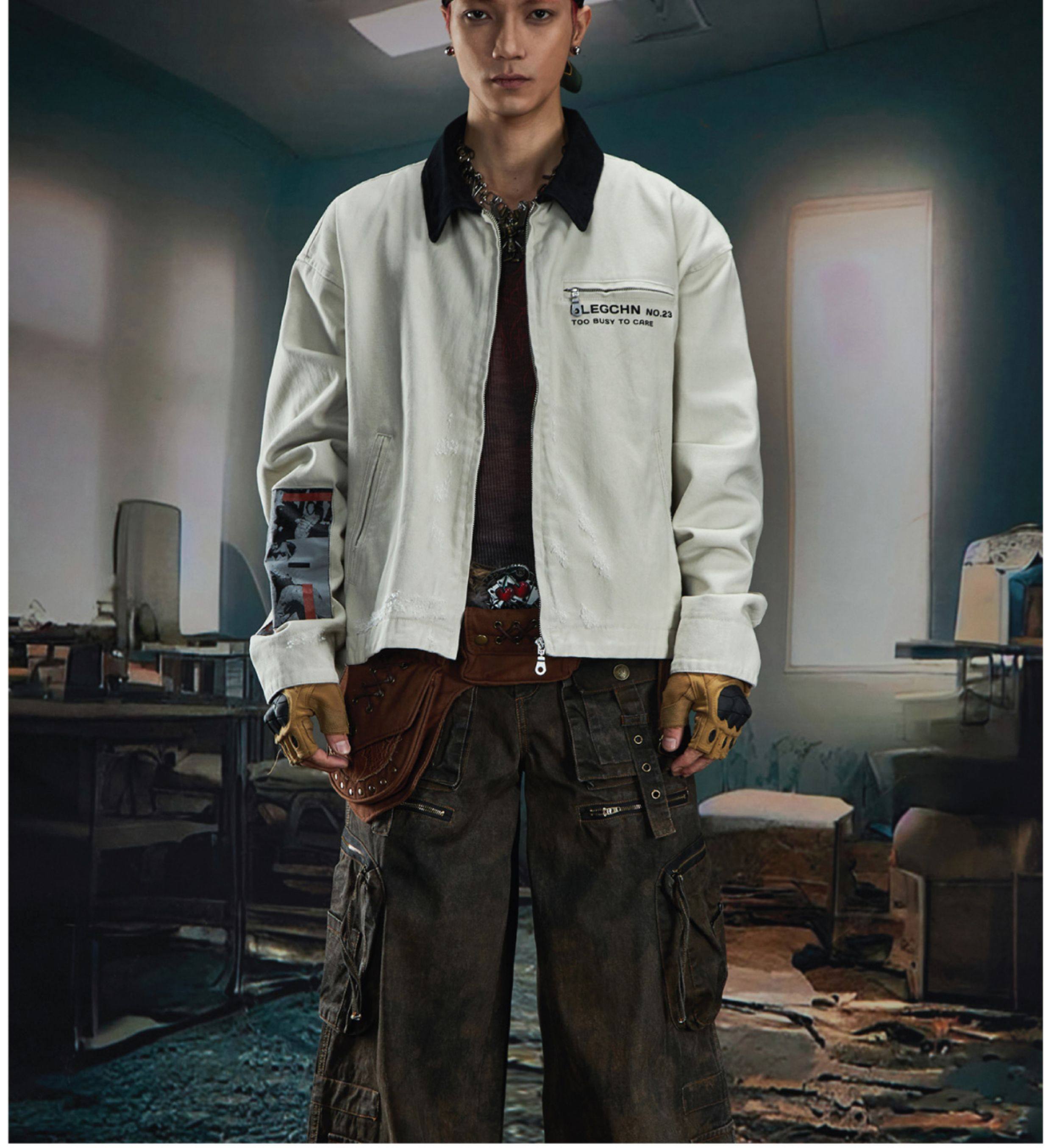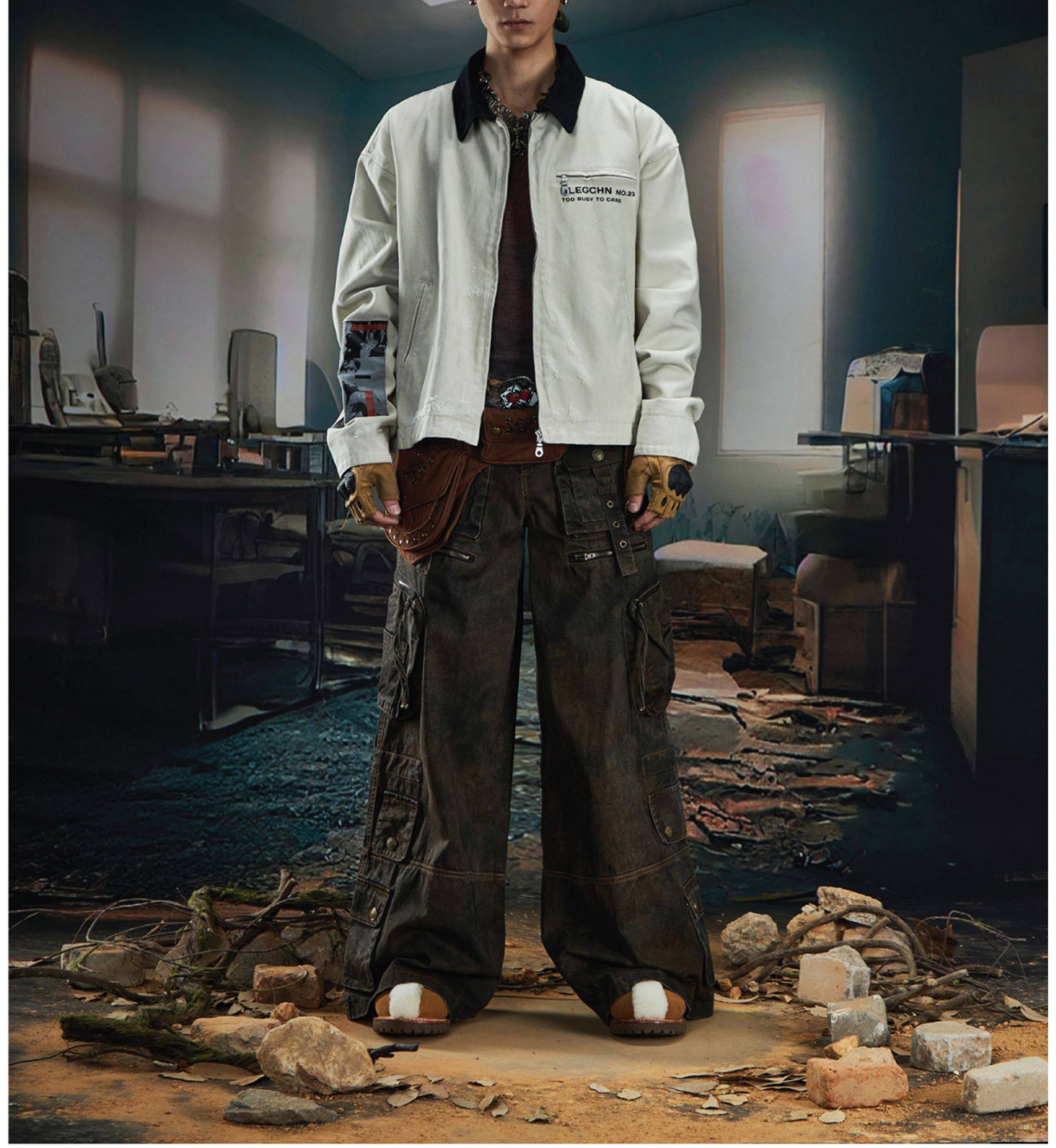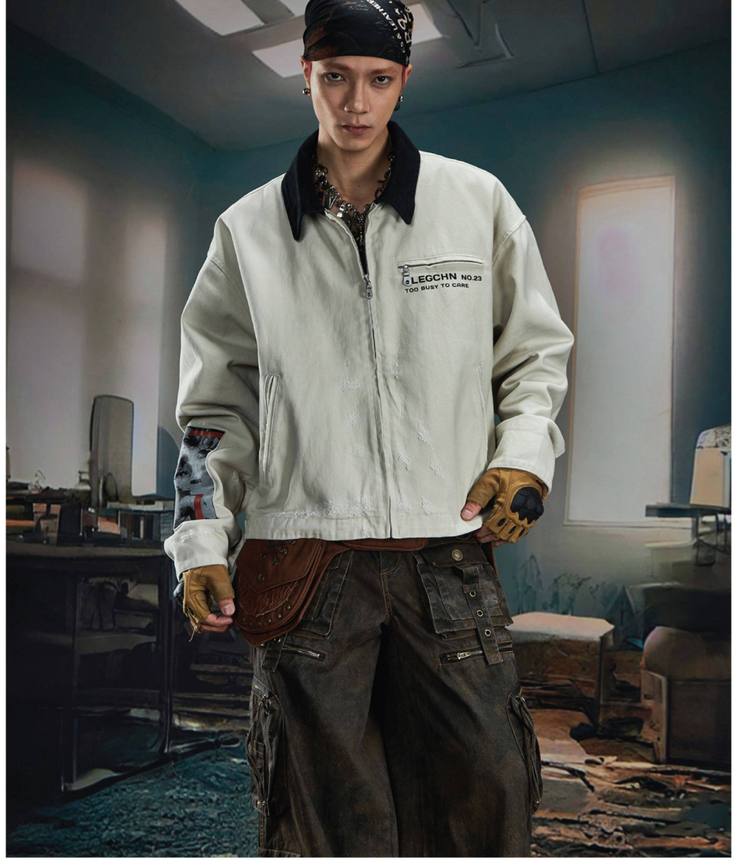 NOMANIAI Loose Zip Lapel Denim Jacket