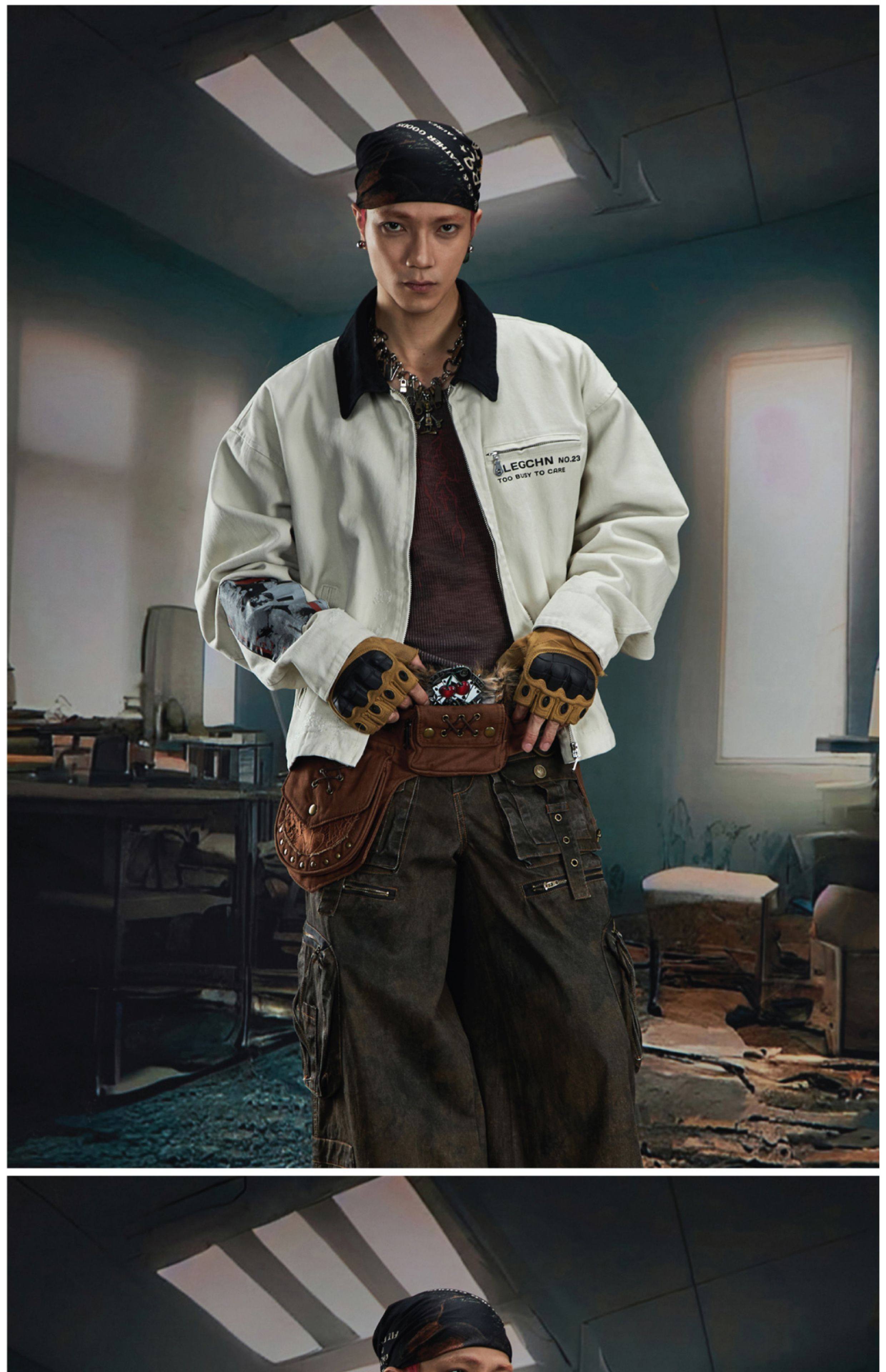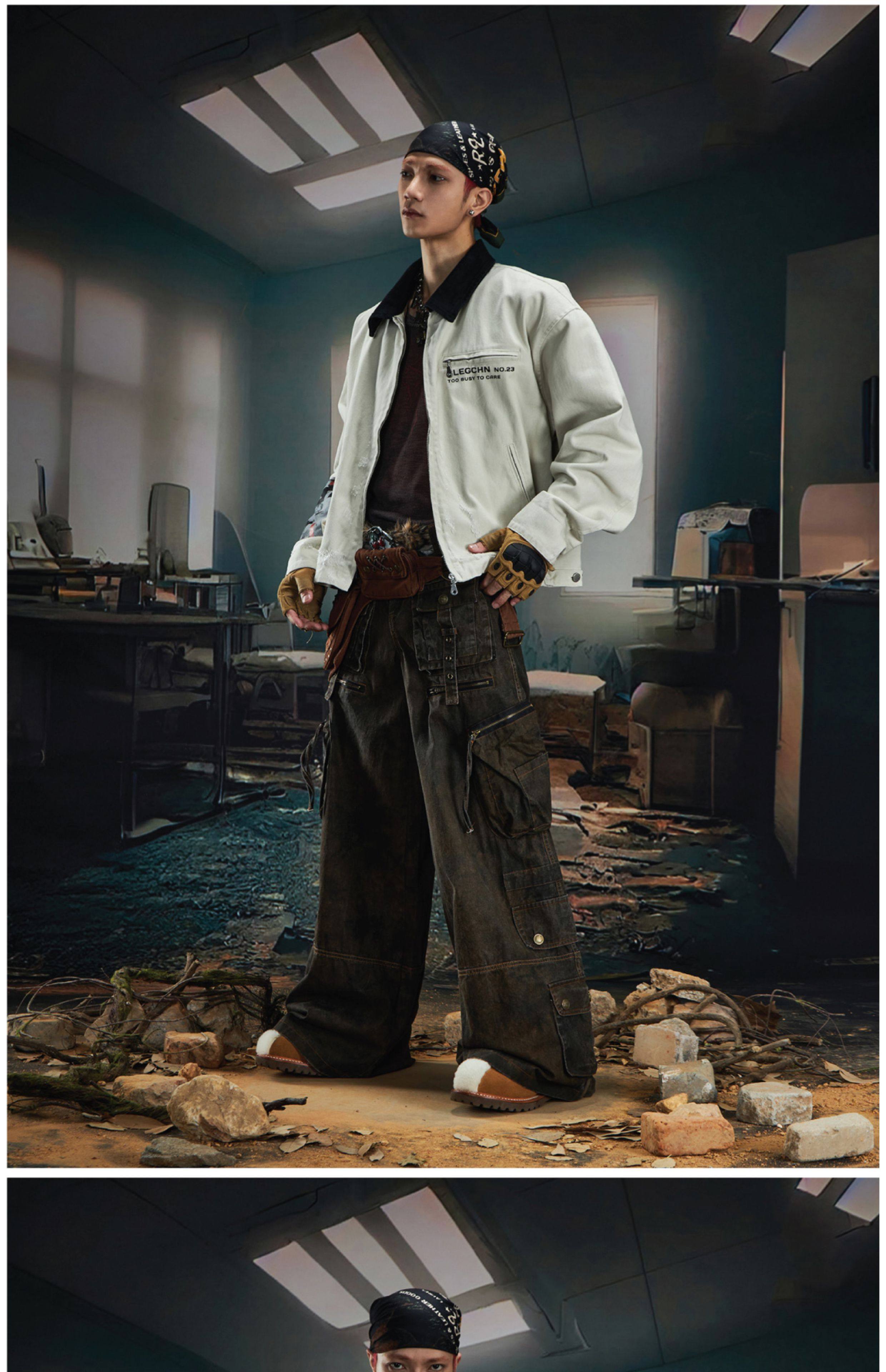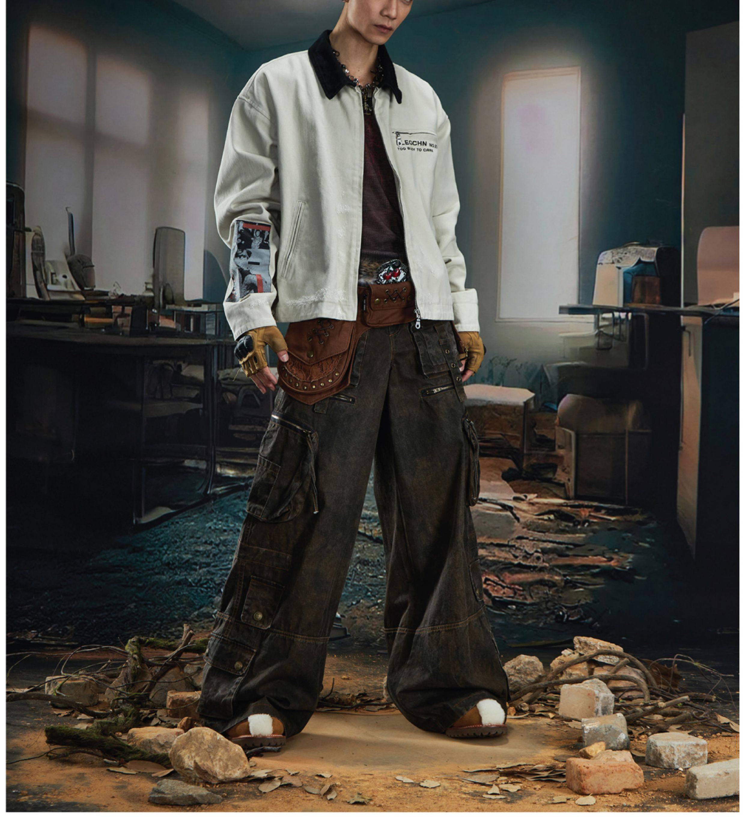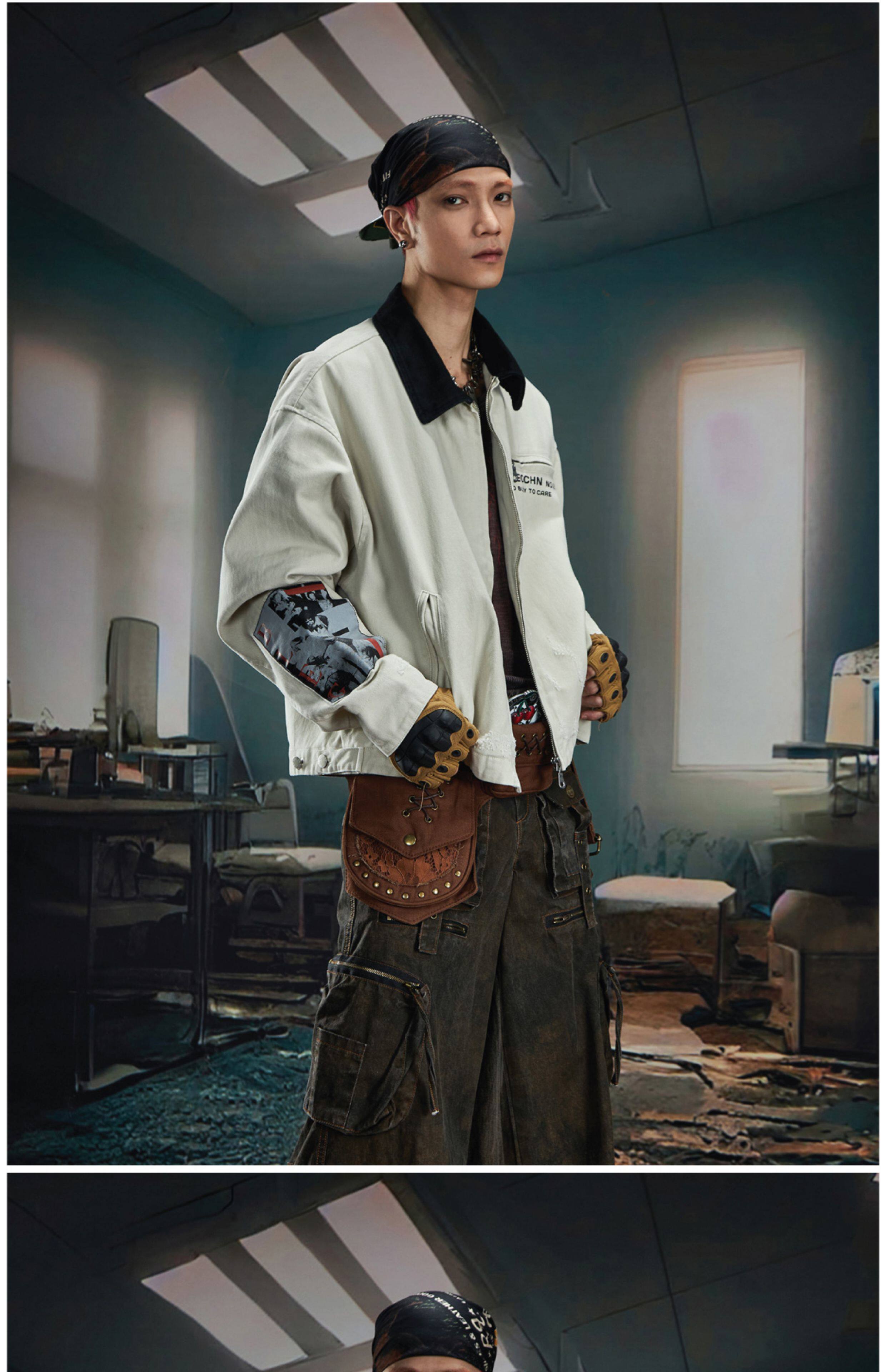 NOMANIAI Loose Zip Lapel Denim Jacket
